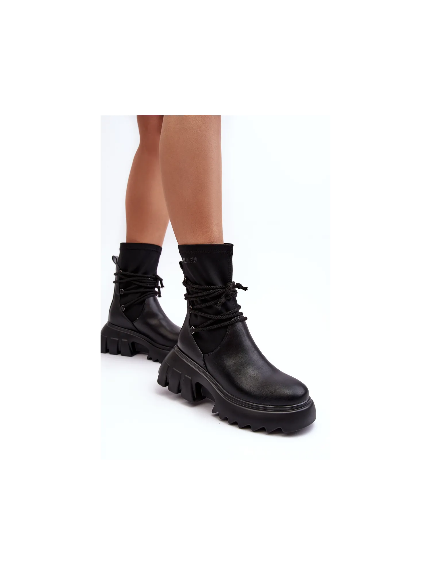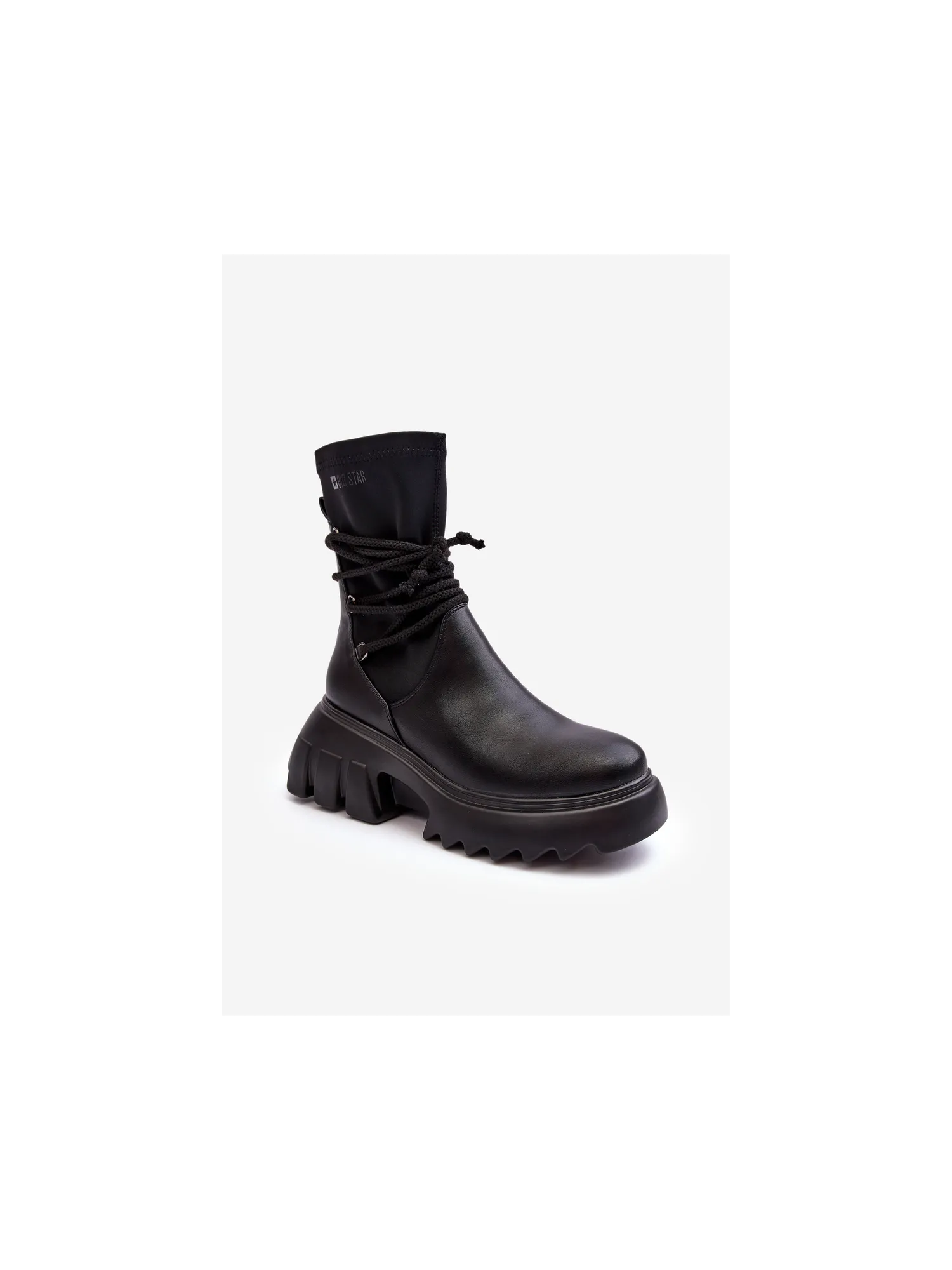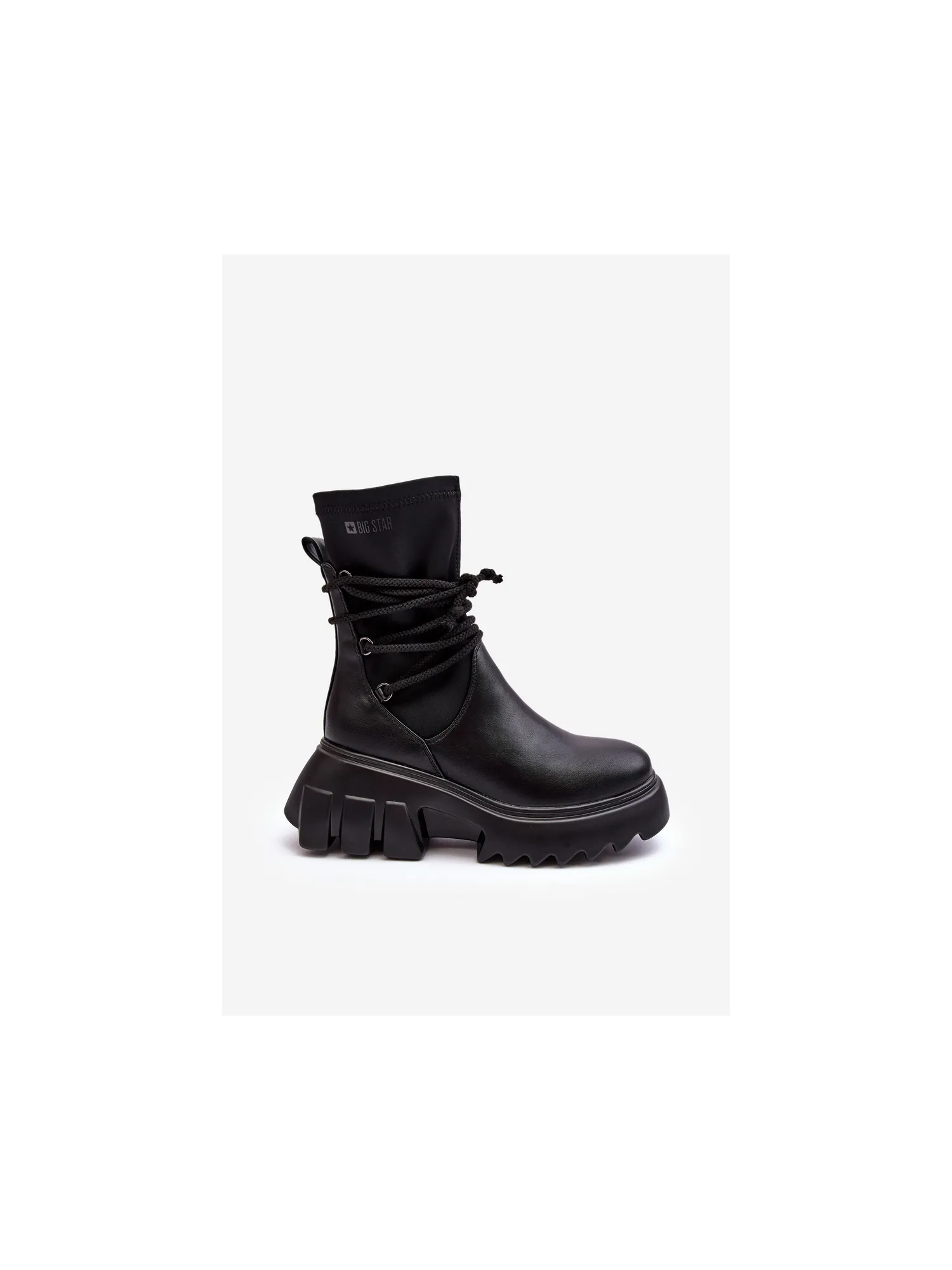 Lace-up Boots on Massive Platform Black Big Star MM274590