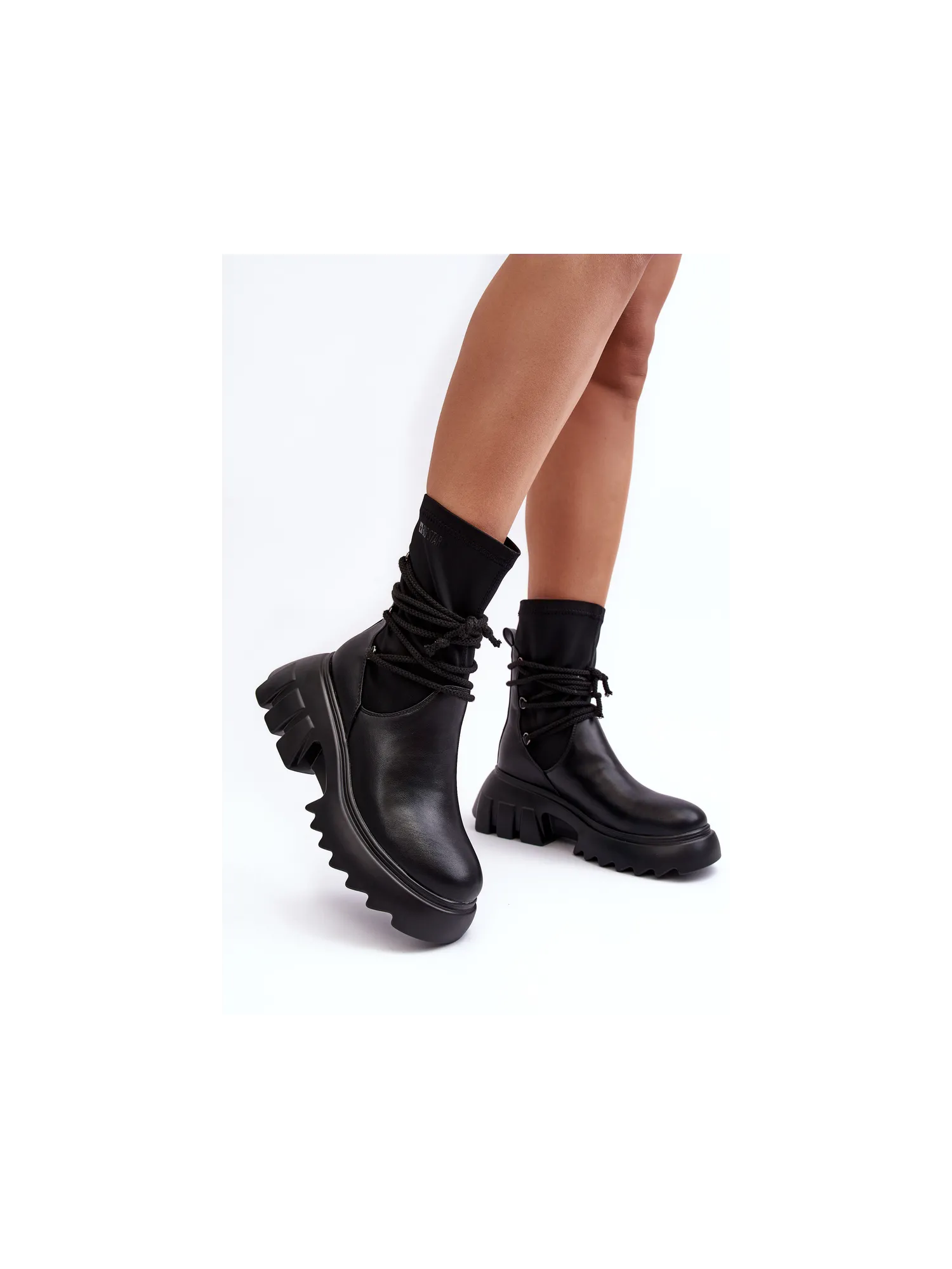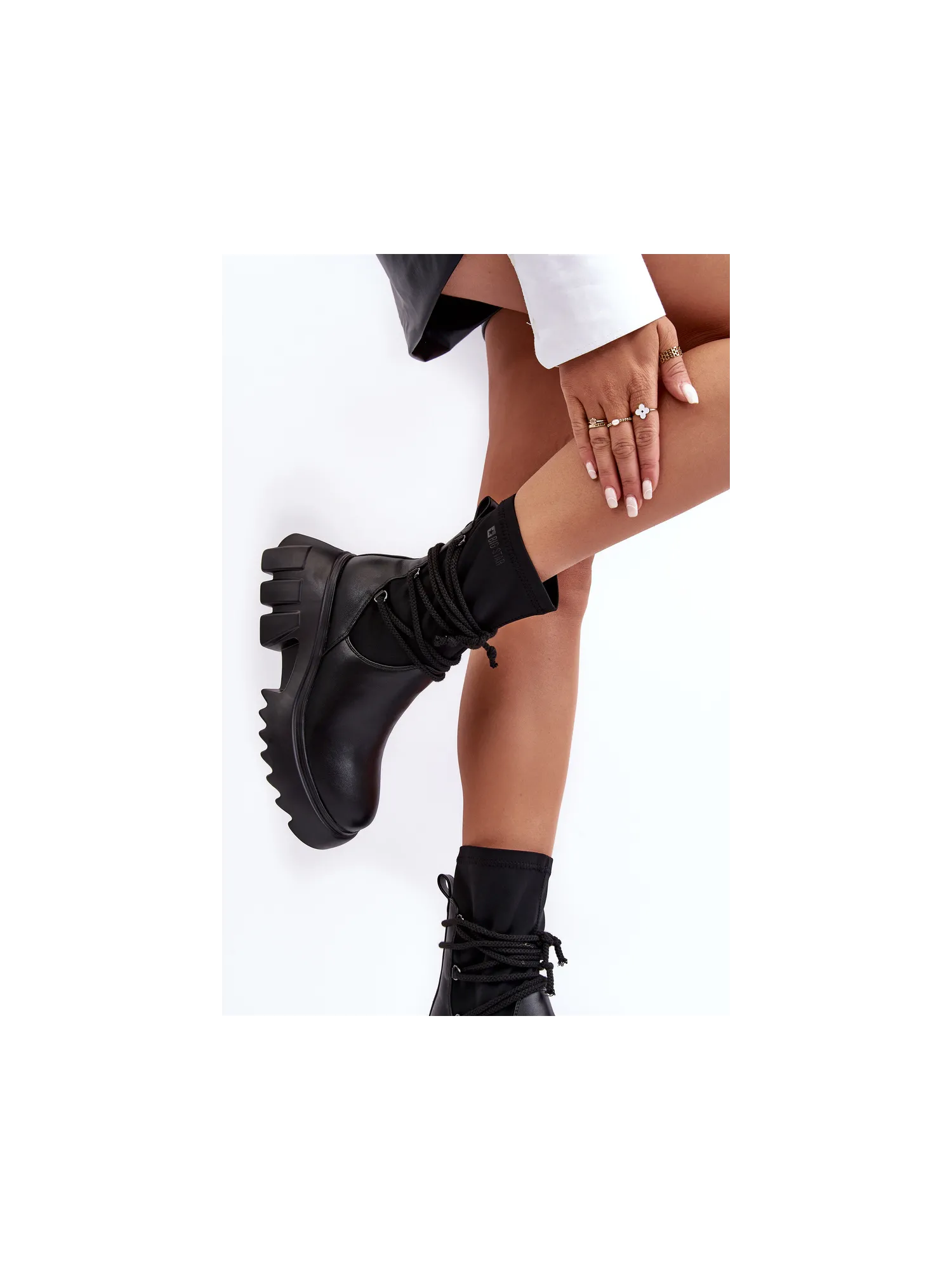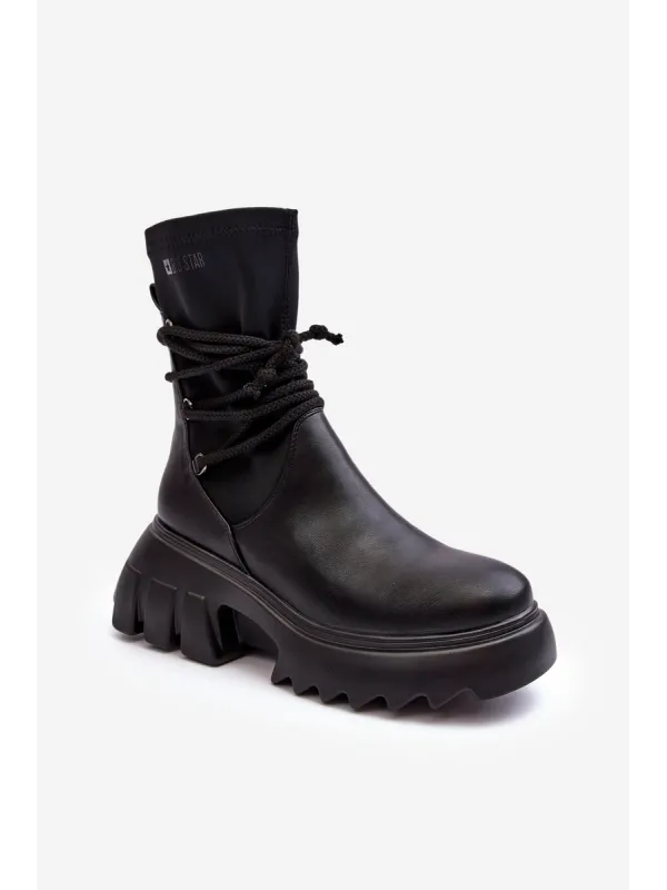 Lace-up Boots on Massive Platform Black Big Star MM274590