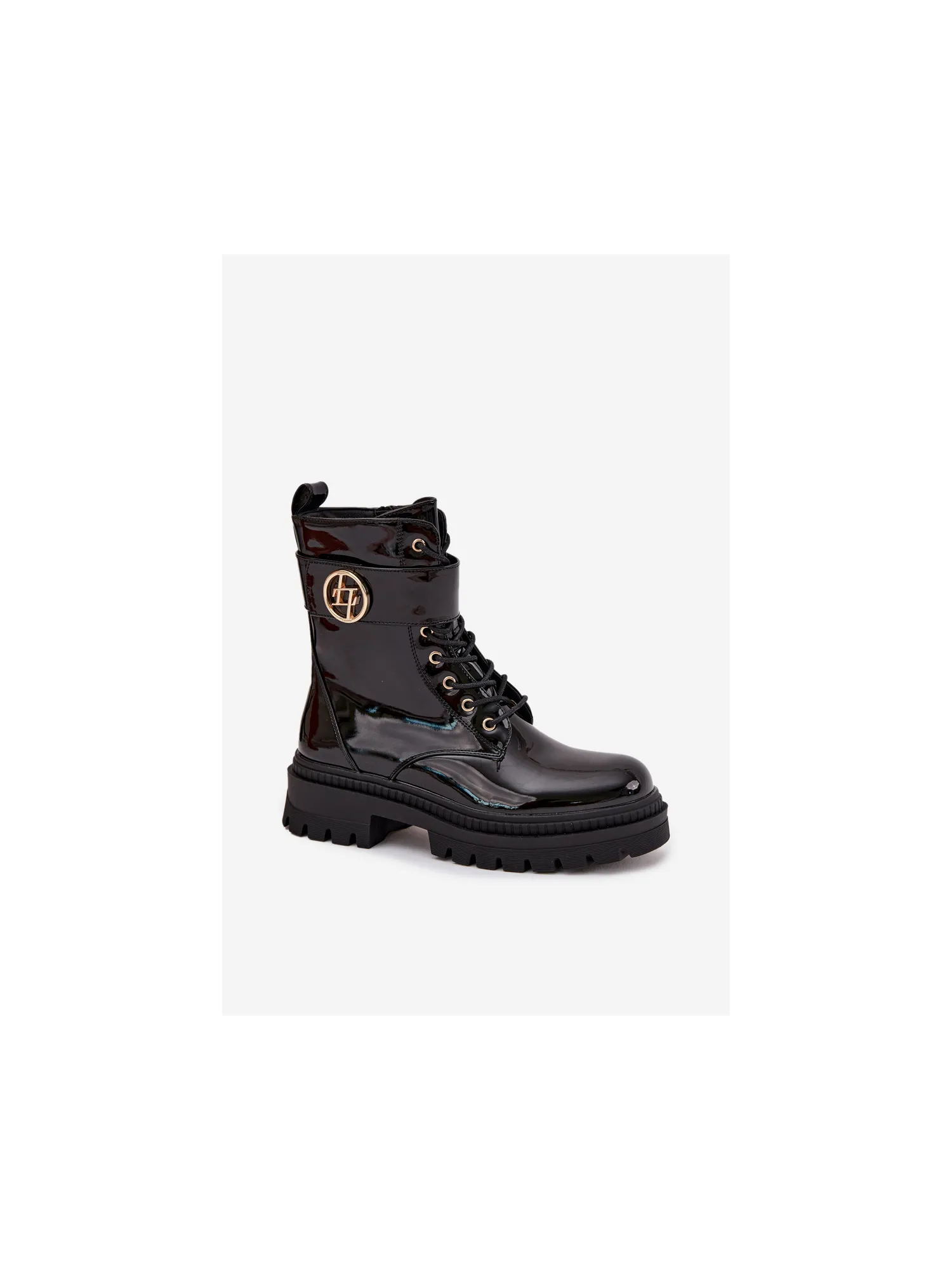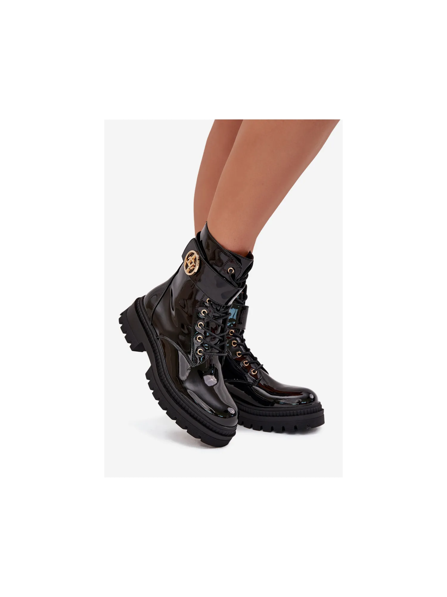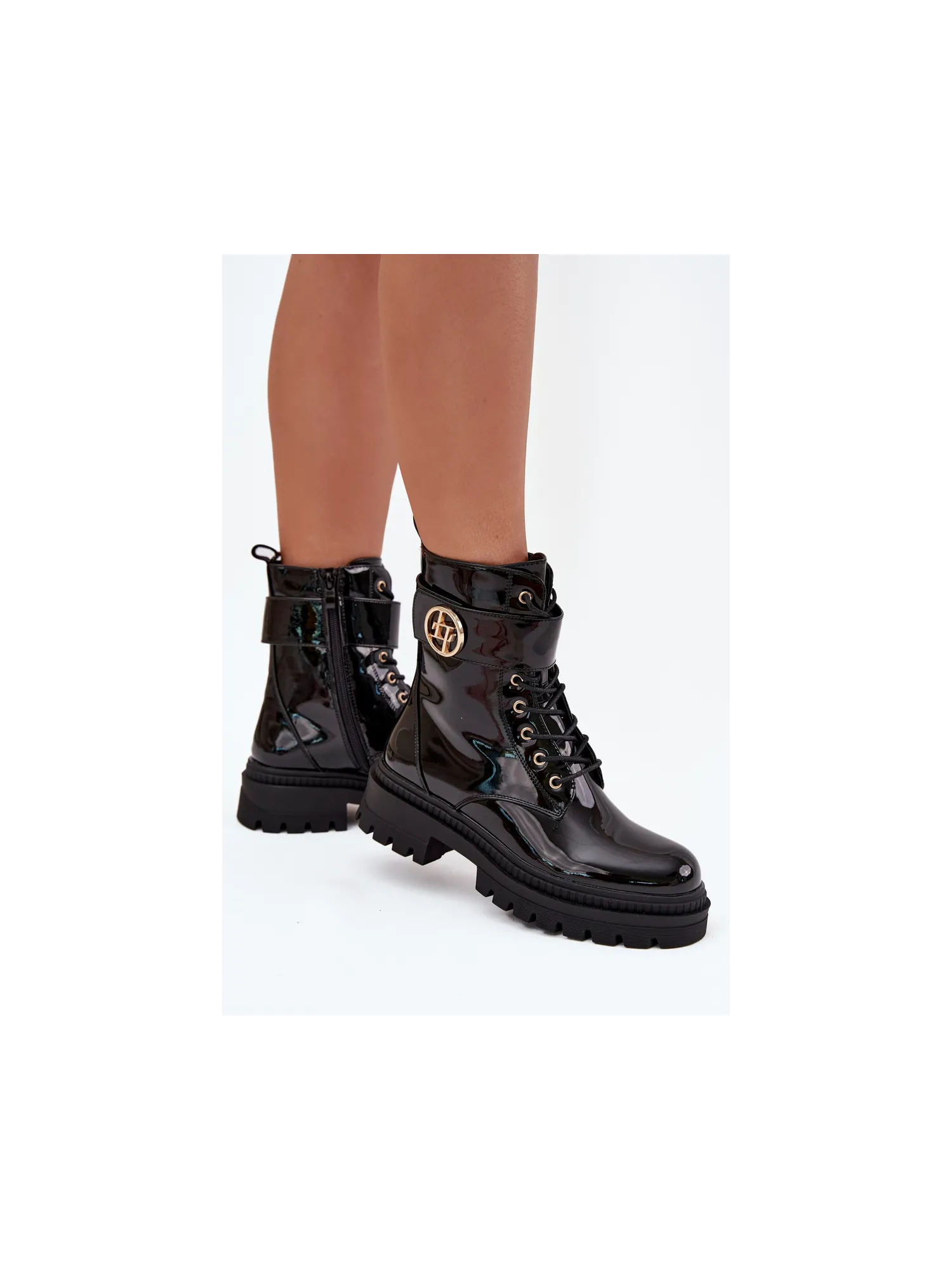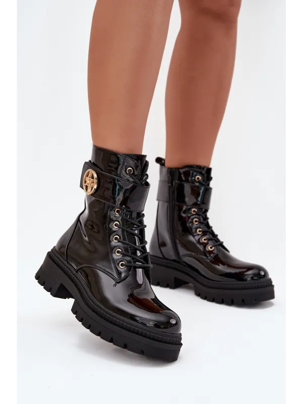 Lacquered ankle boots workers women's with golden detail insulated black Fiorena