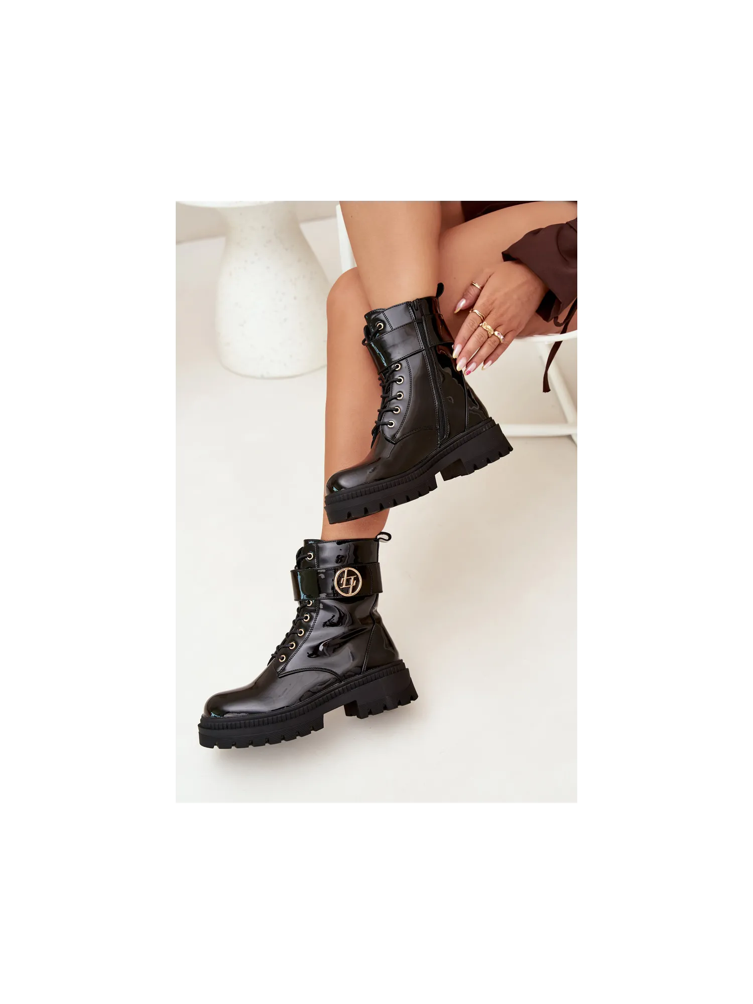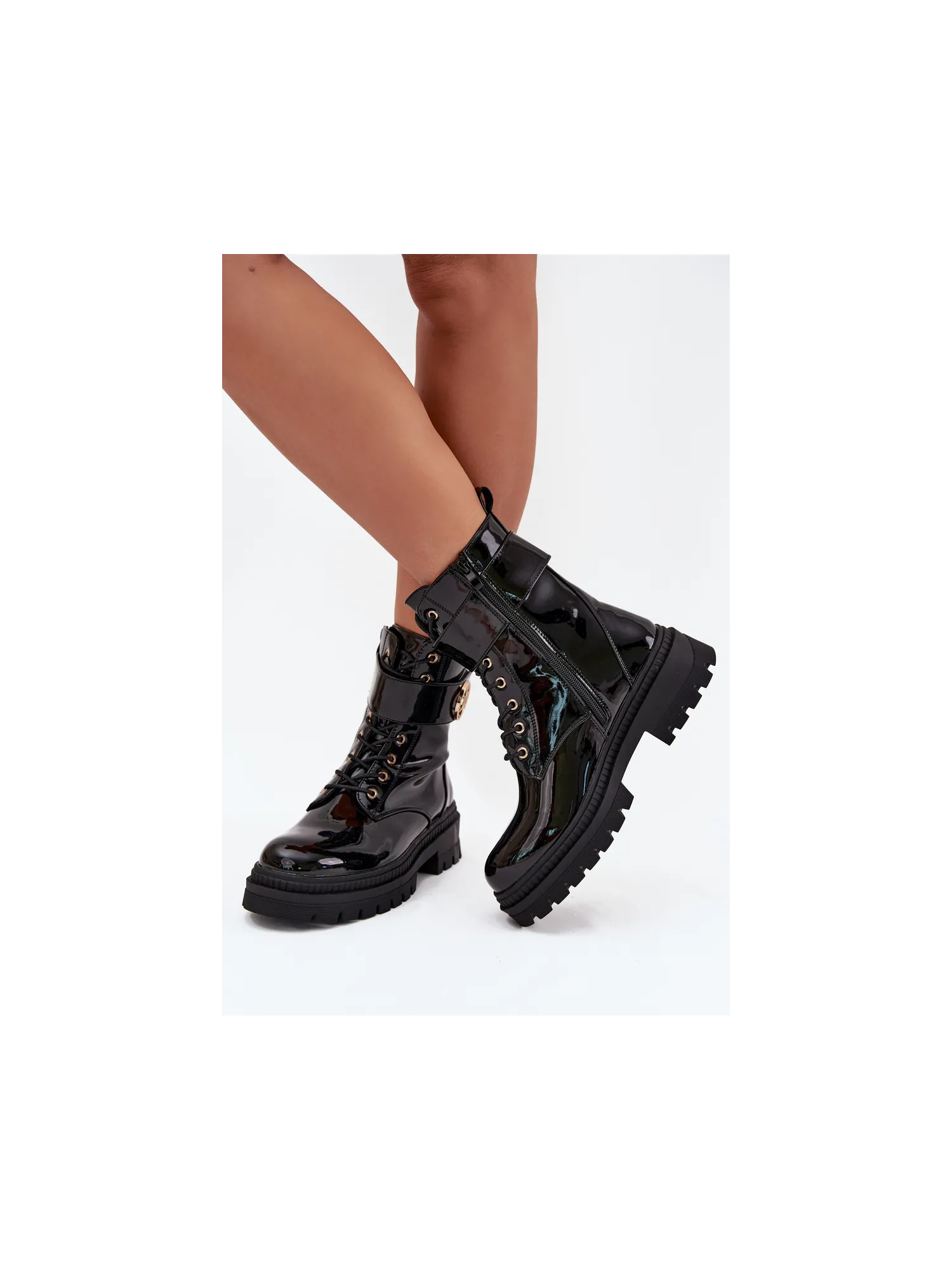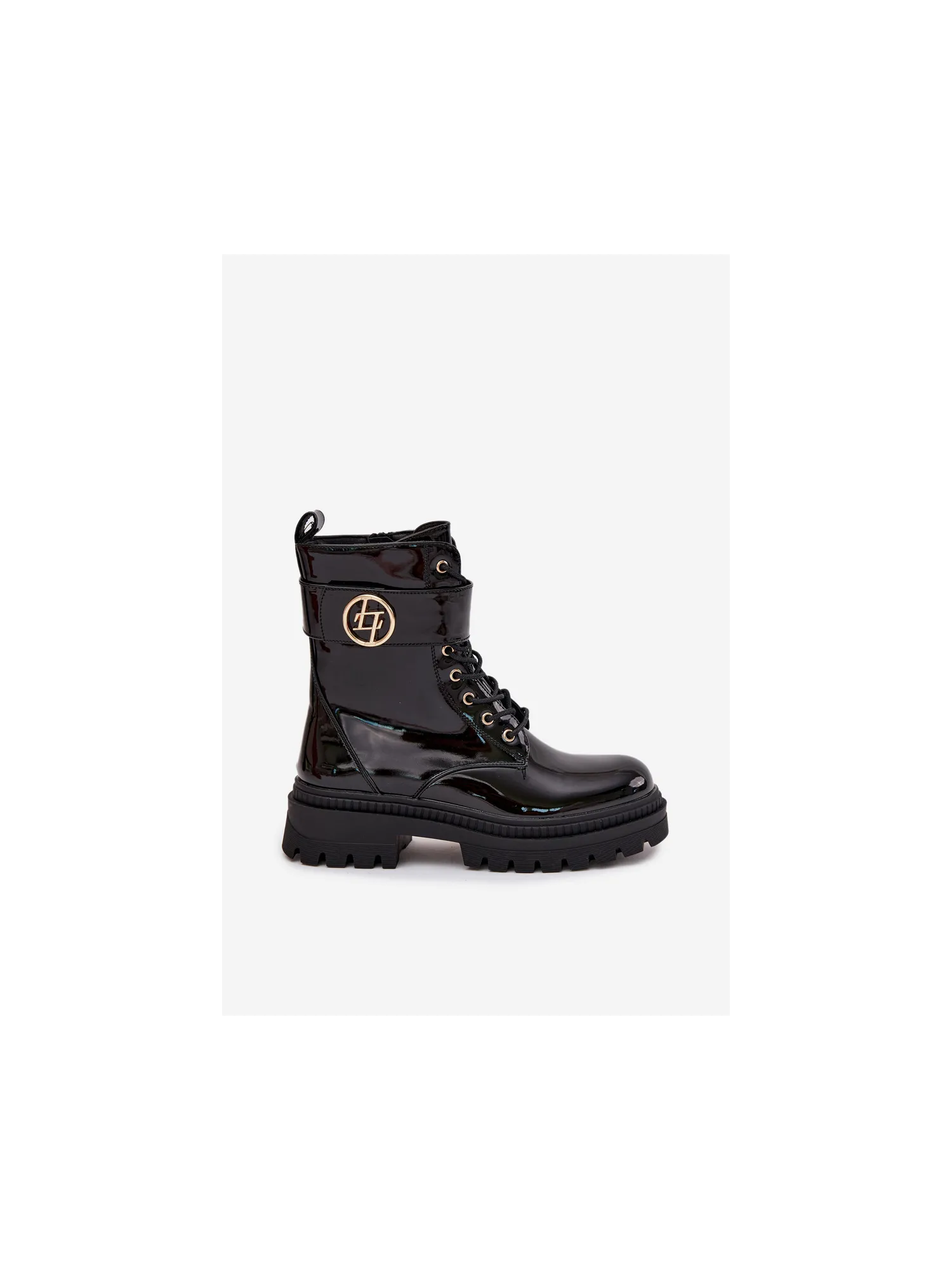 Lacquered ankle boots workers women's with golden detail insulated black Fiorena