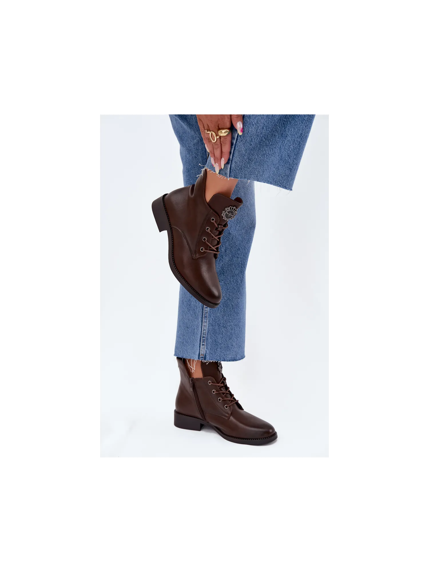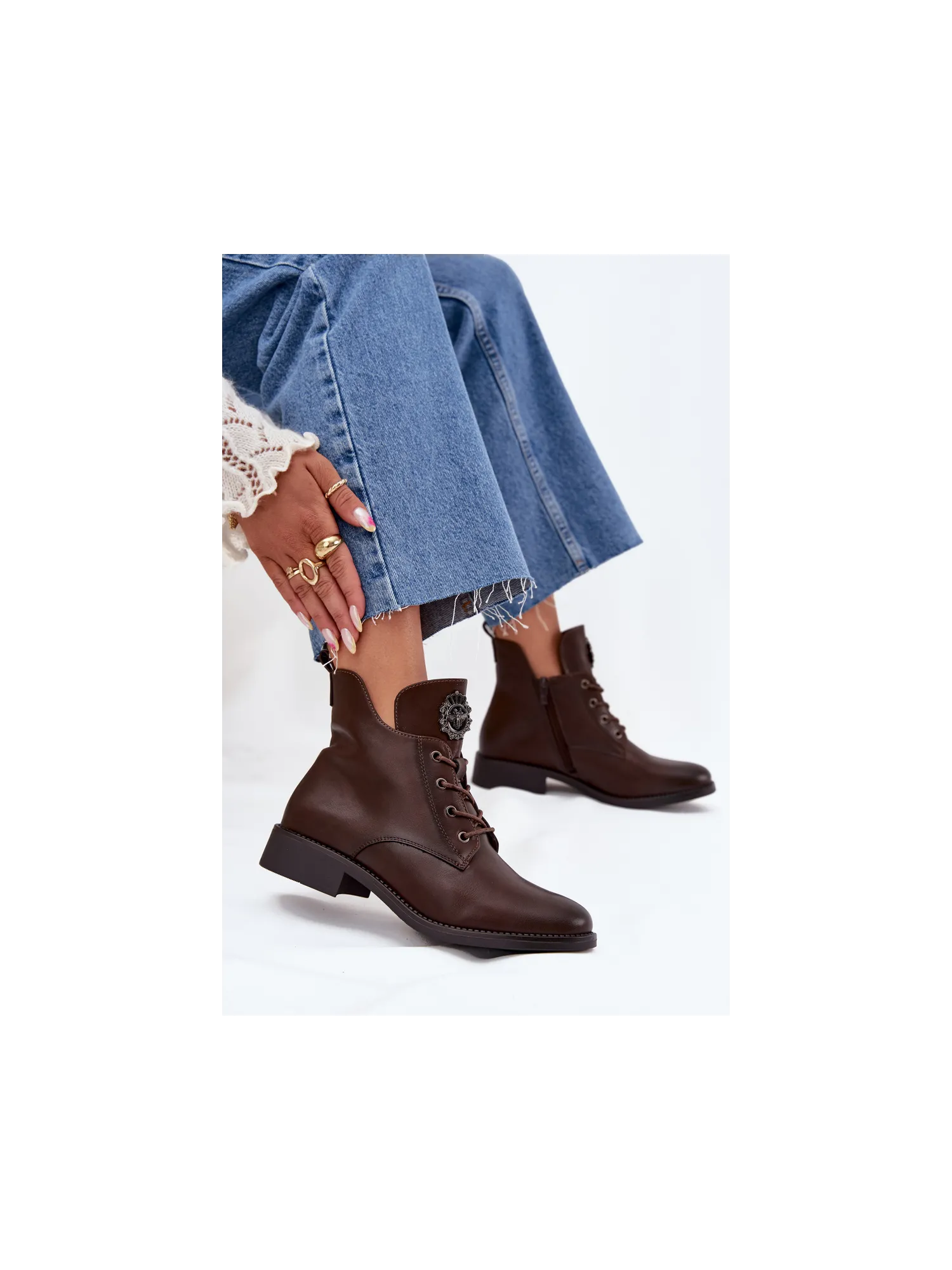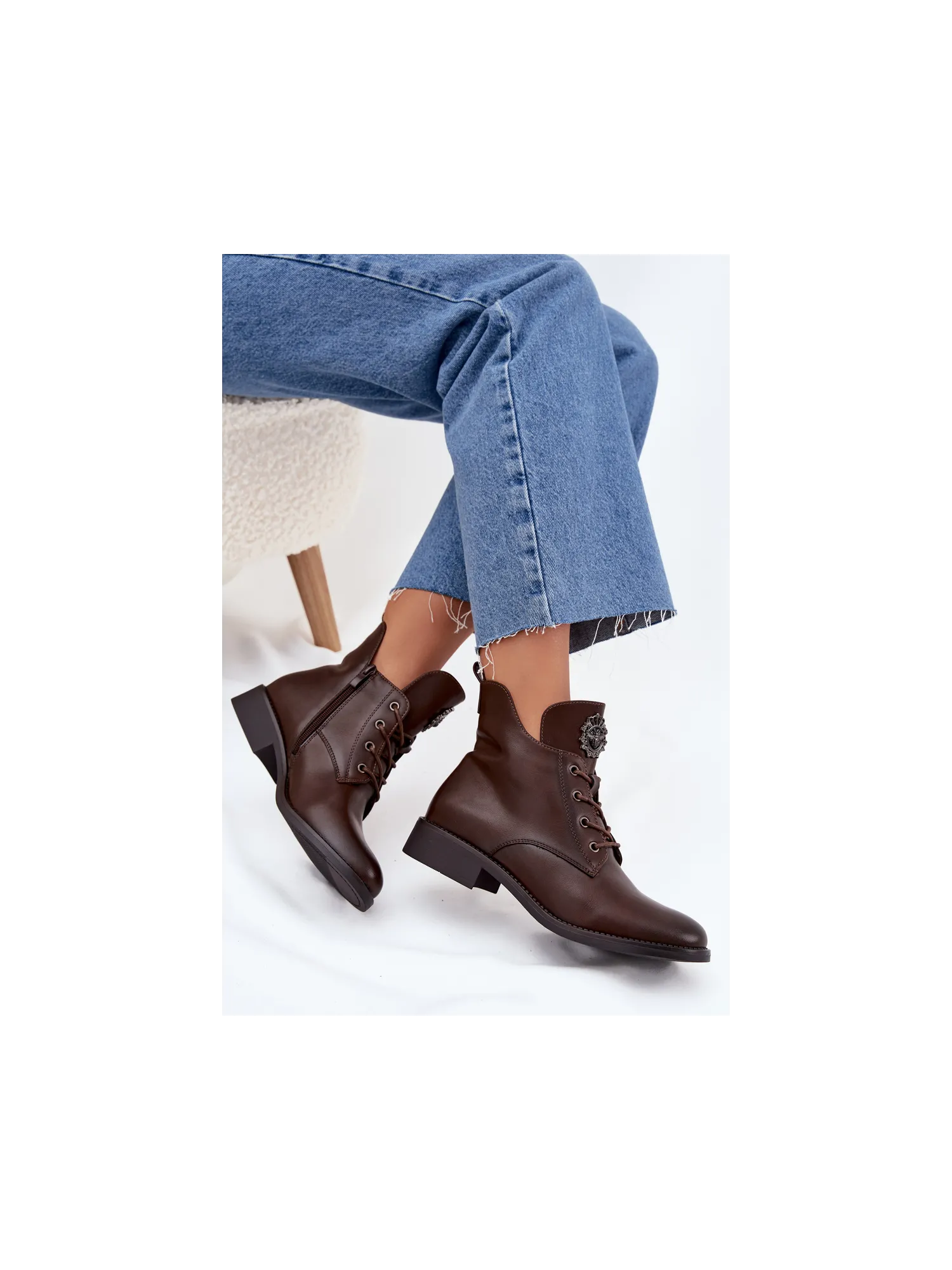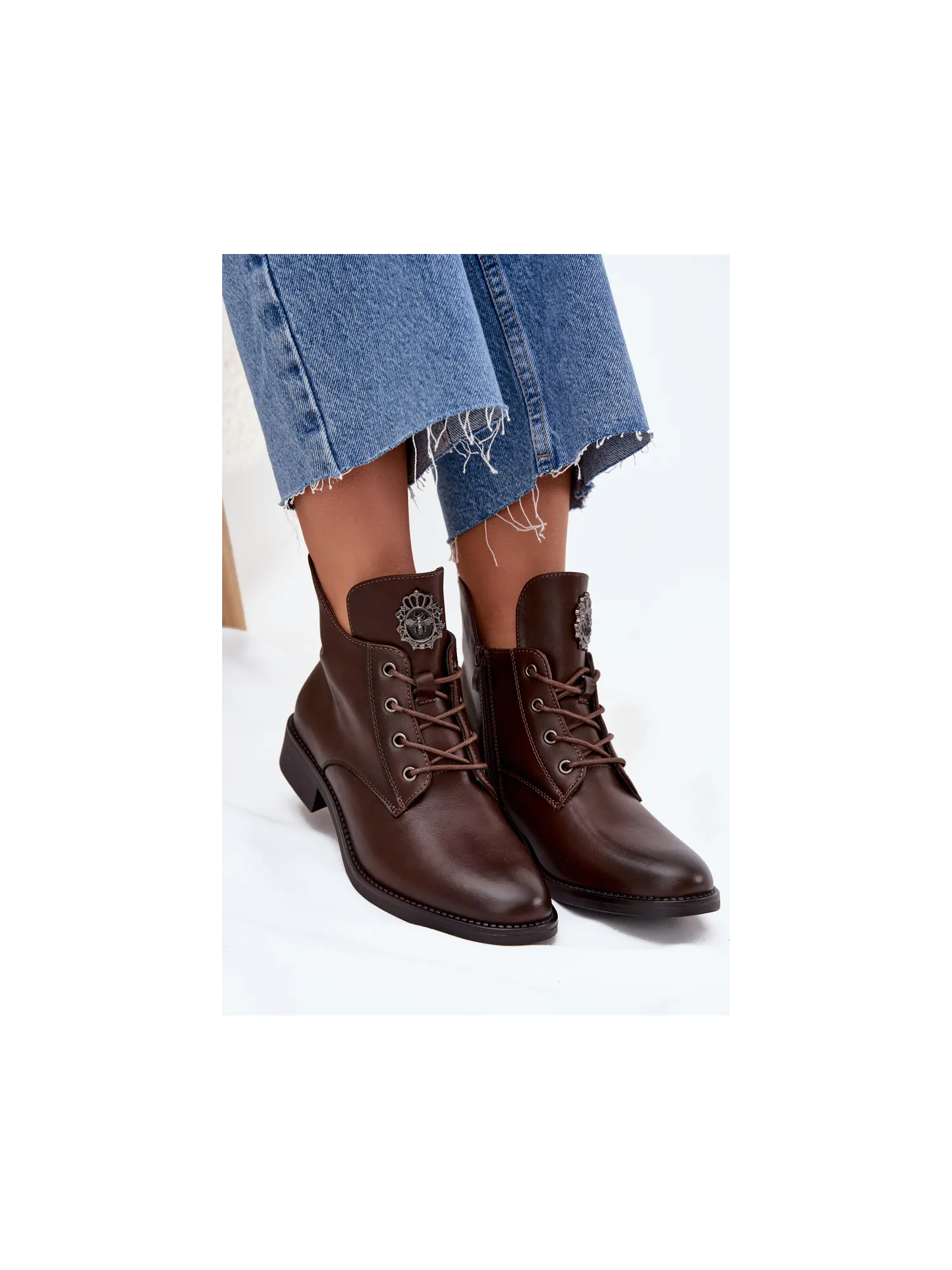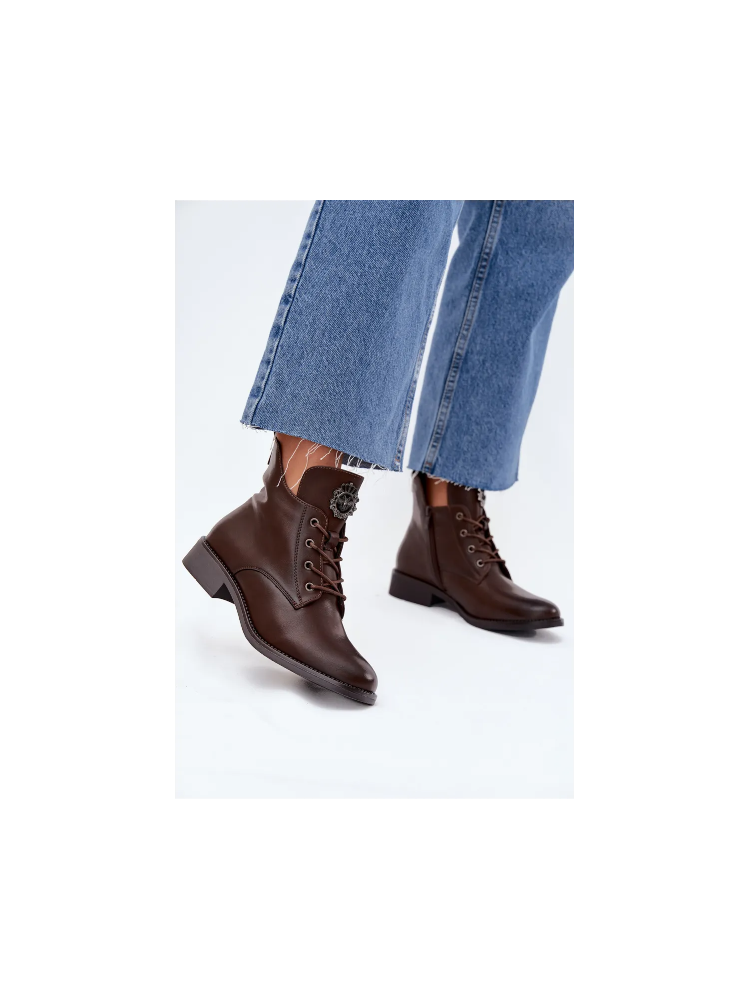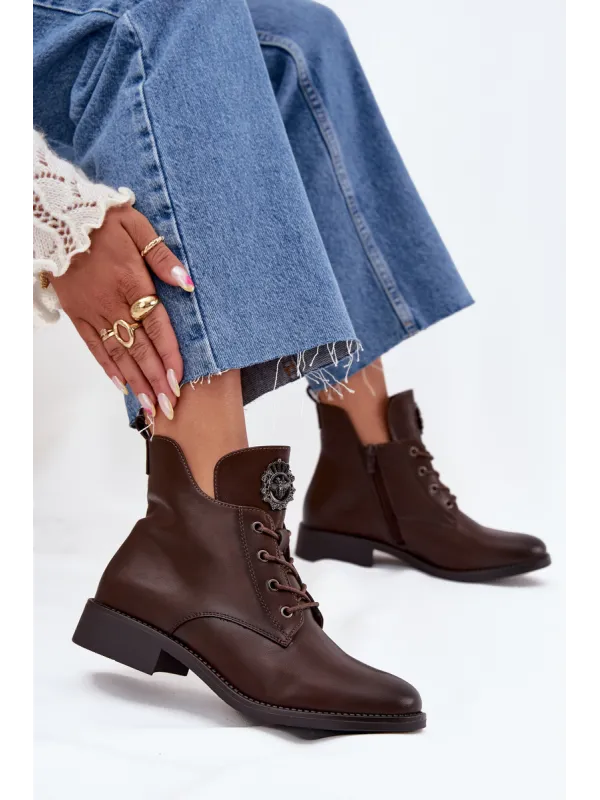 Low Women's Ankle Boots On Flat Heel With Decorative Detail Lined Brown Cylira