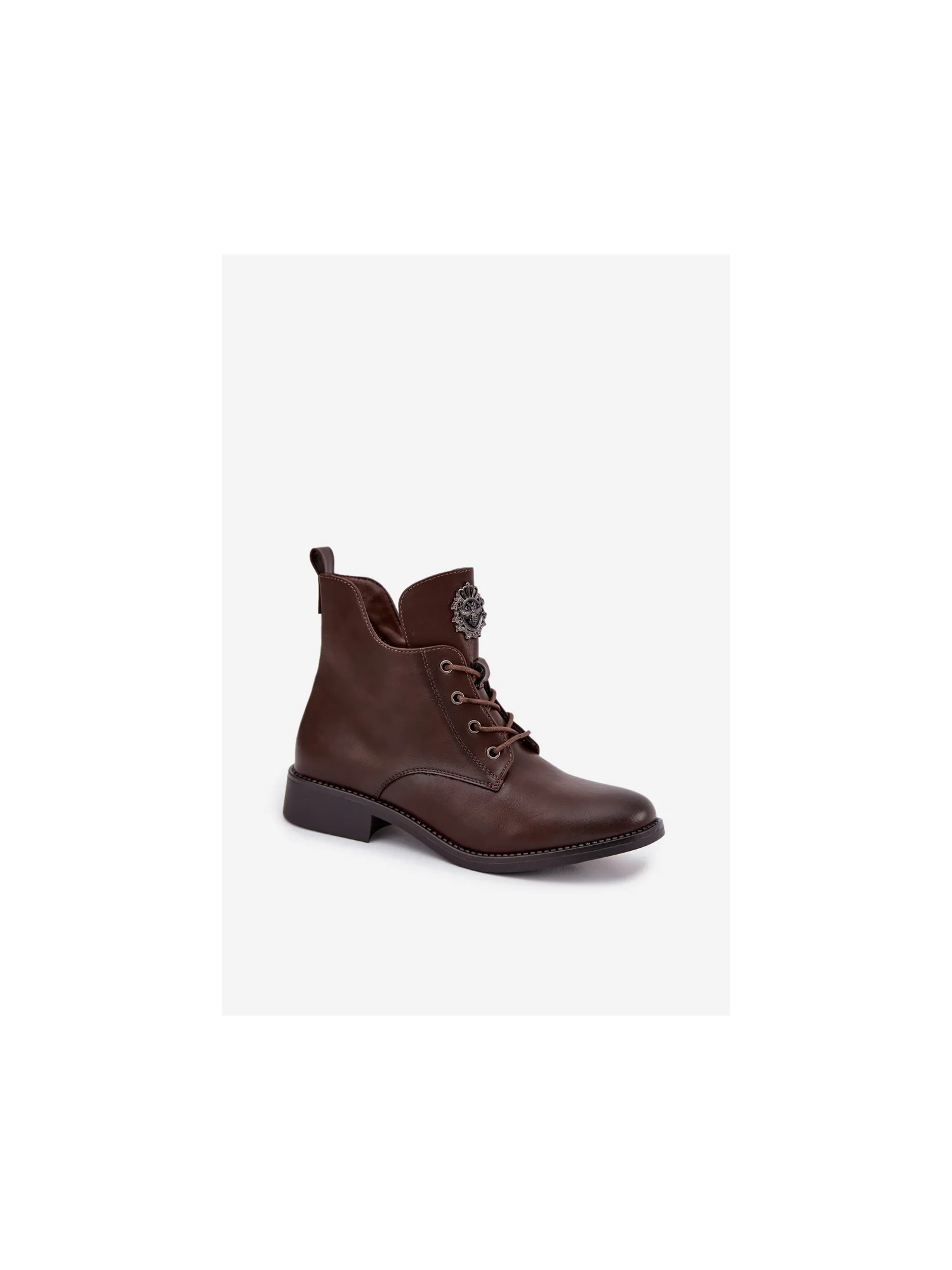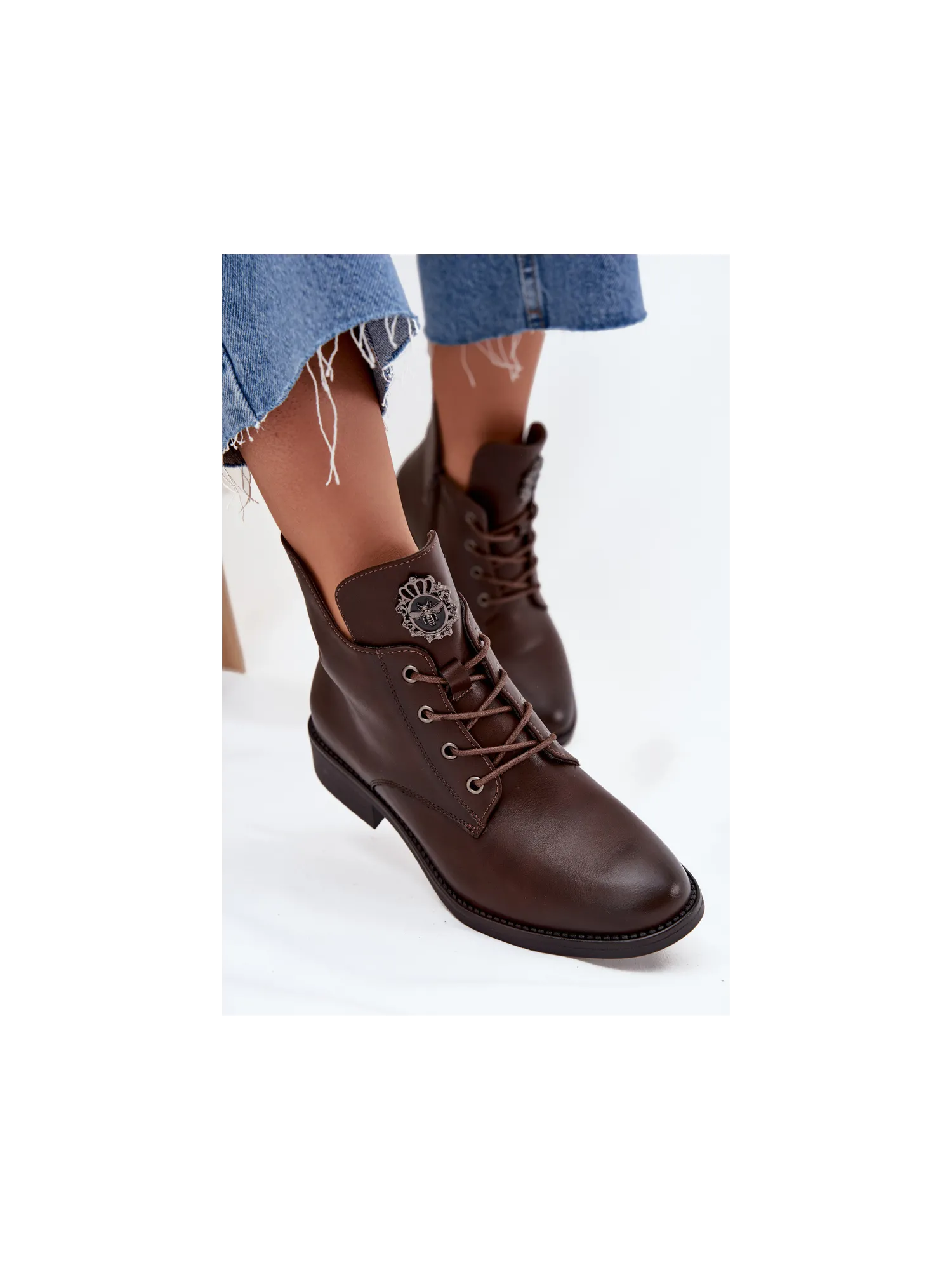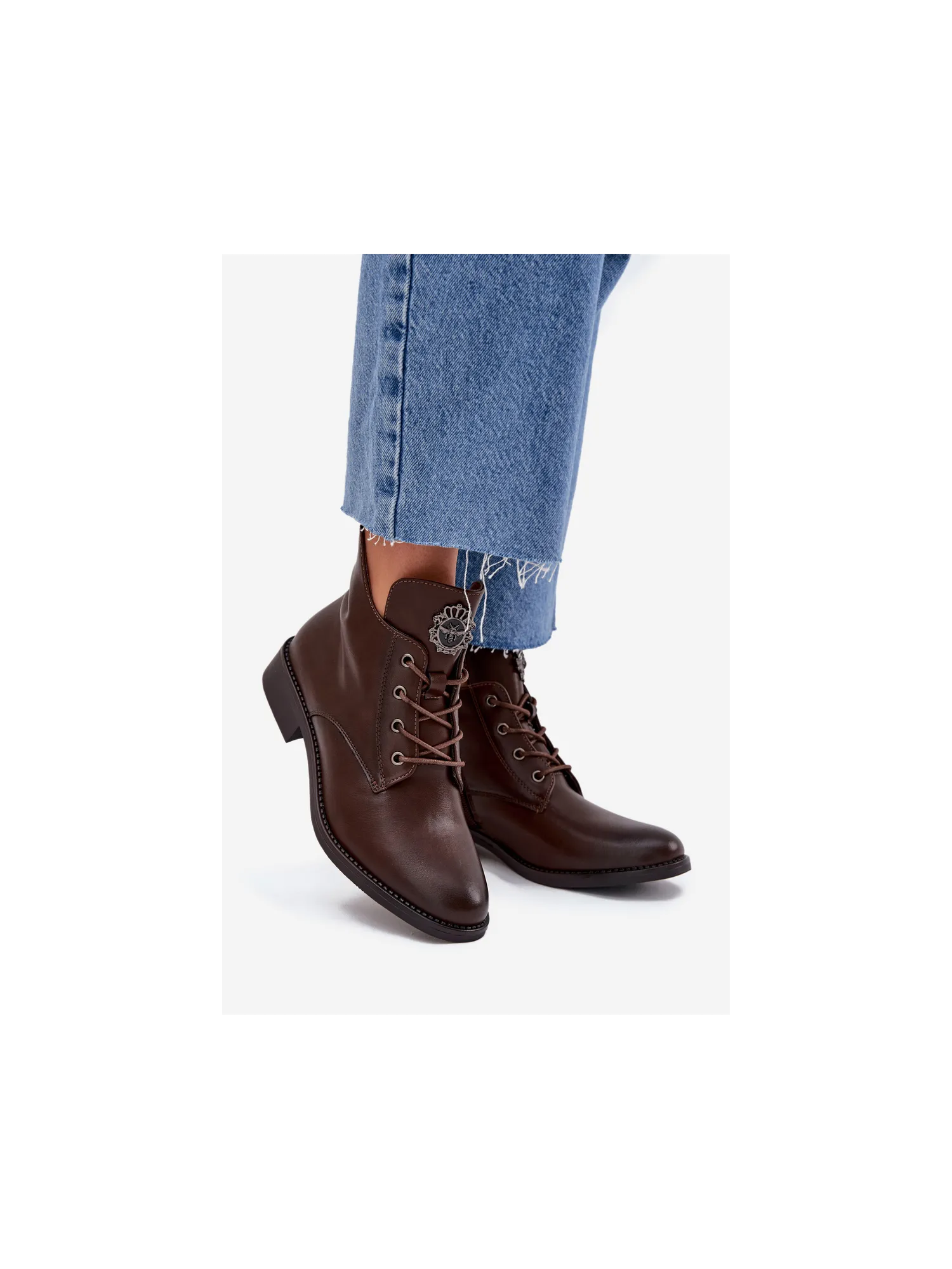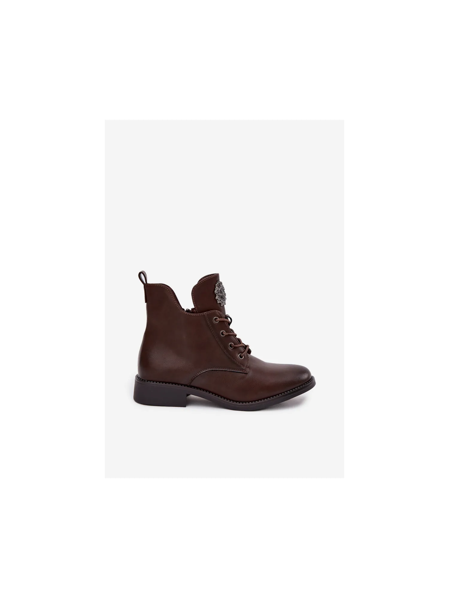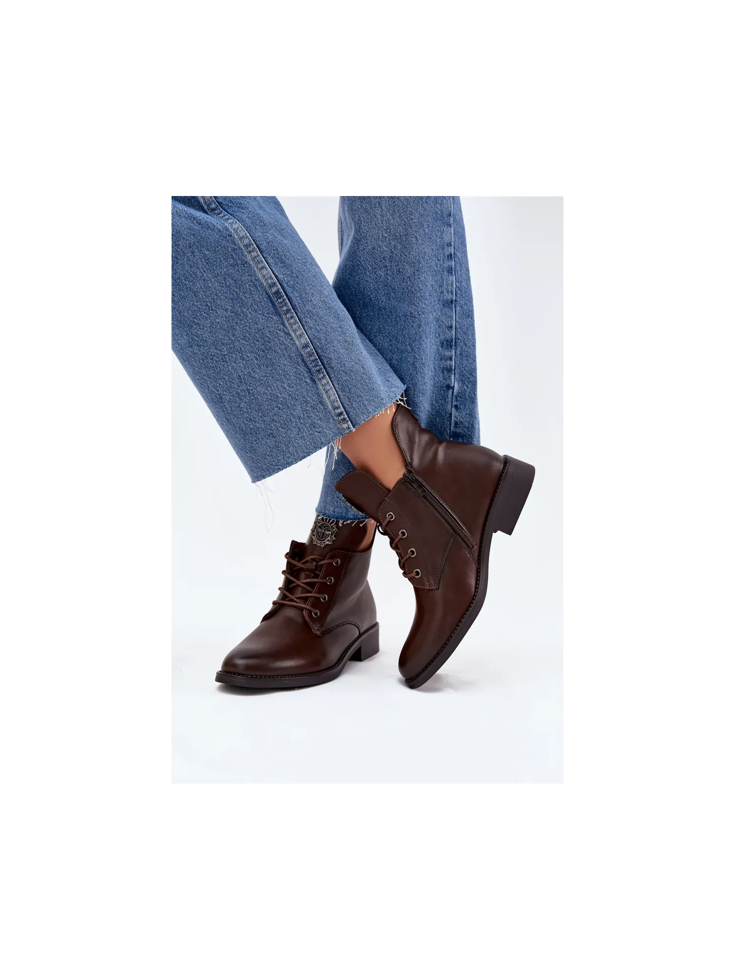 Low Women's Ankle Boots On Flat Heel With Decorative Detail Lined Brown Cylira