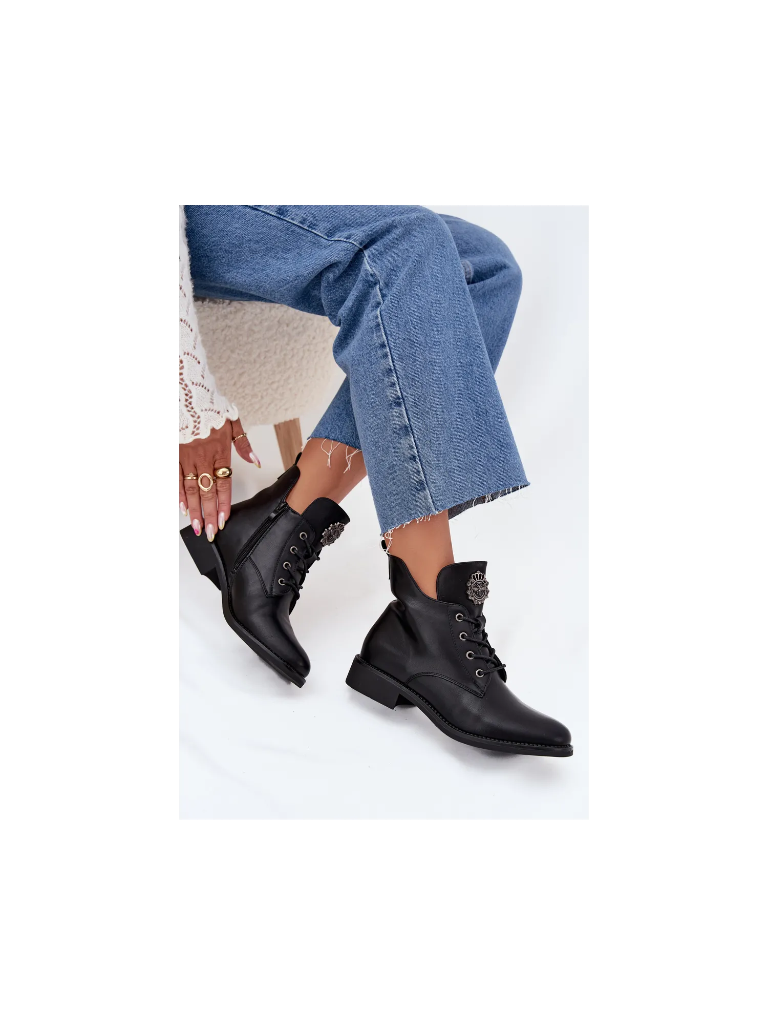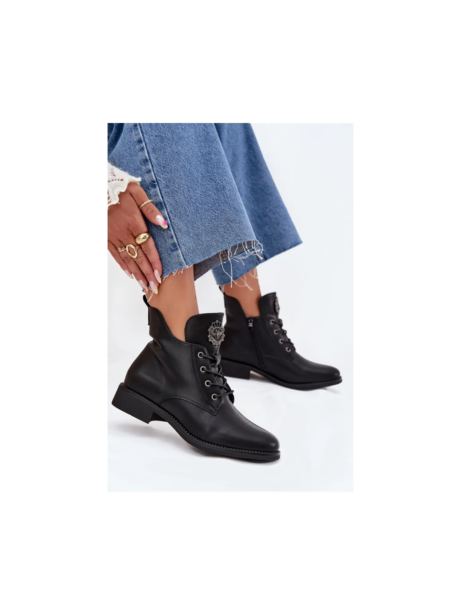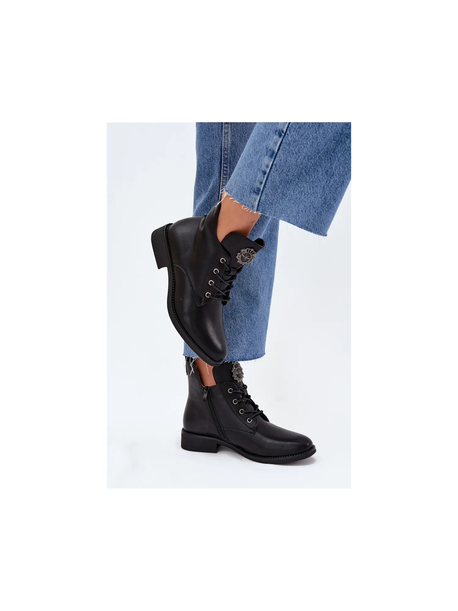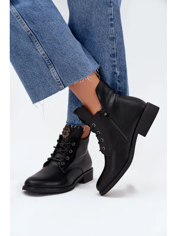 Low Women's Ankle Boots With Flat Heel With Decorative Detail Insulated Black Cylira