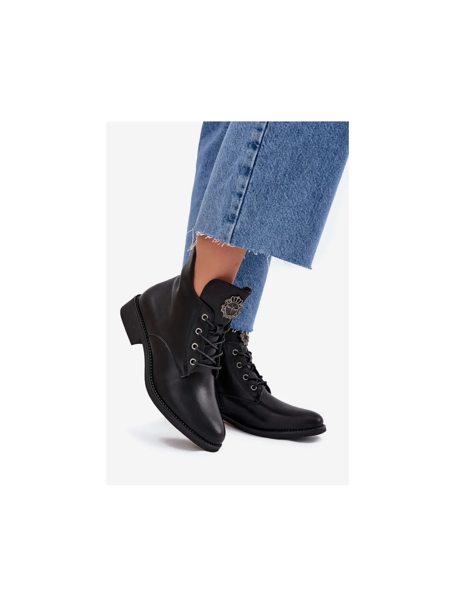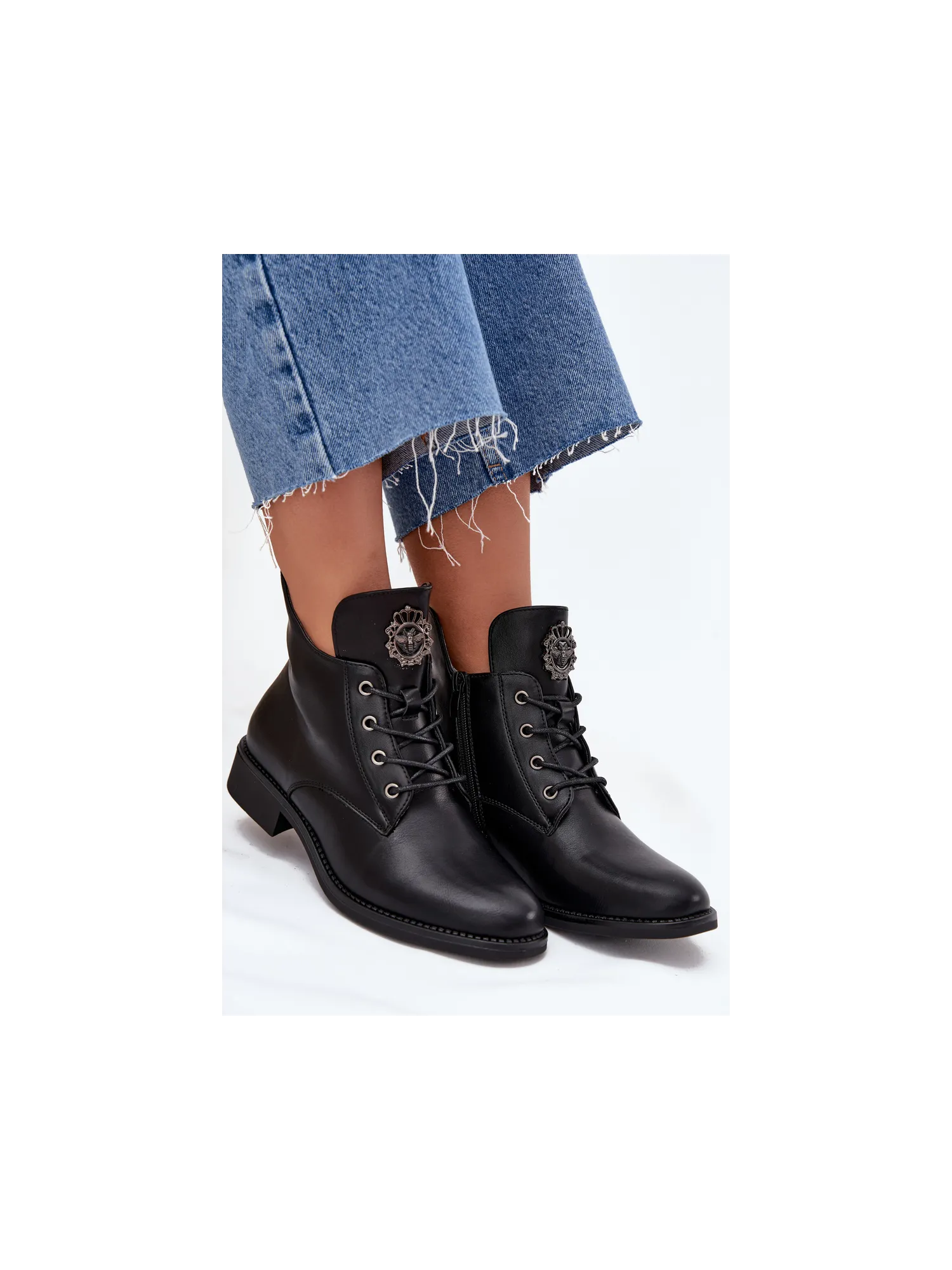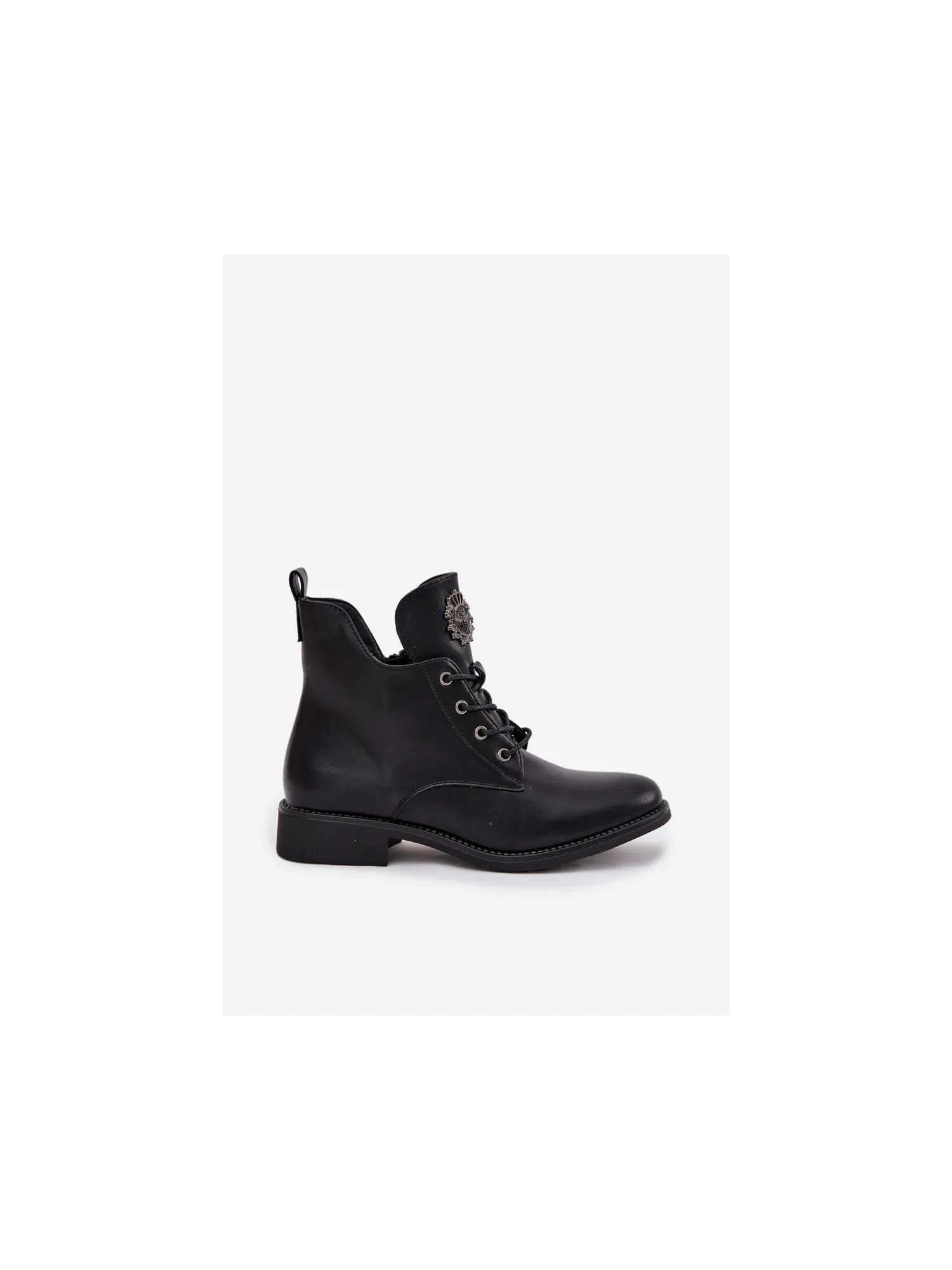 Low Women's Ankle Boots With Flat Heel With Decorative Detail Insulated Black Cylira