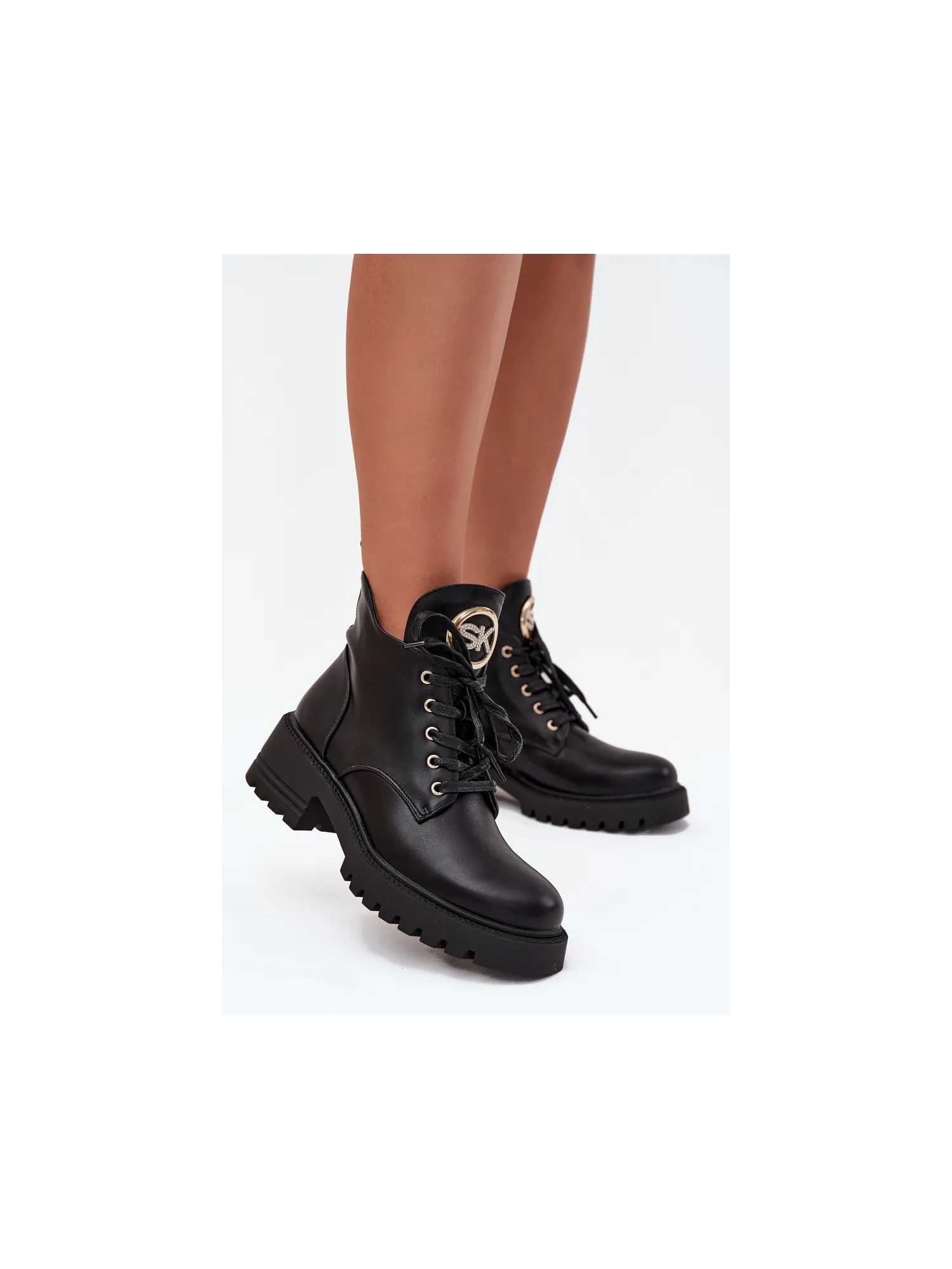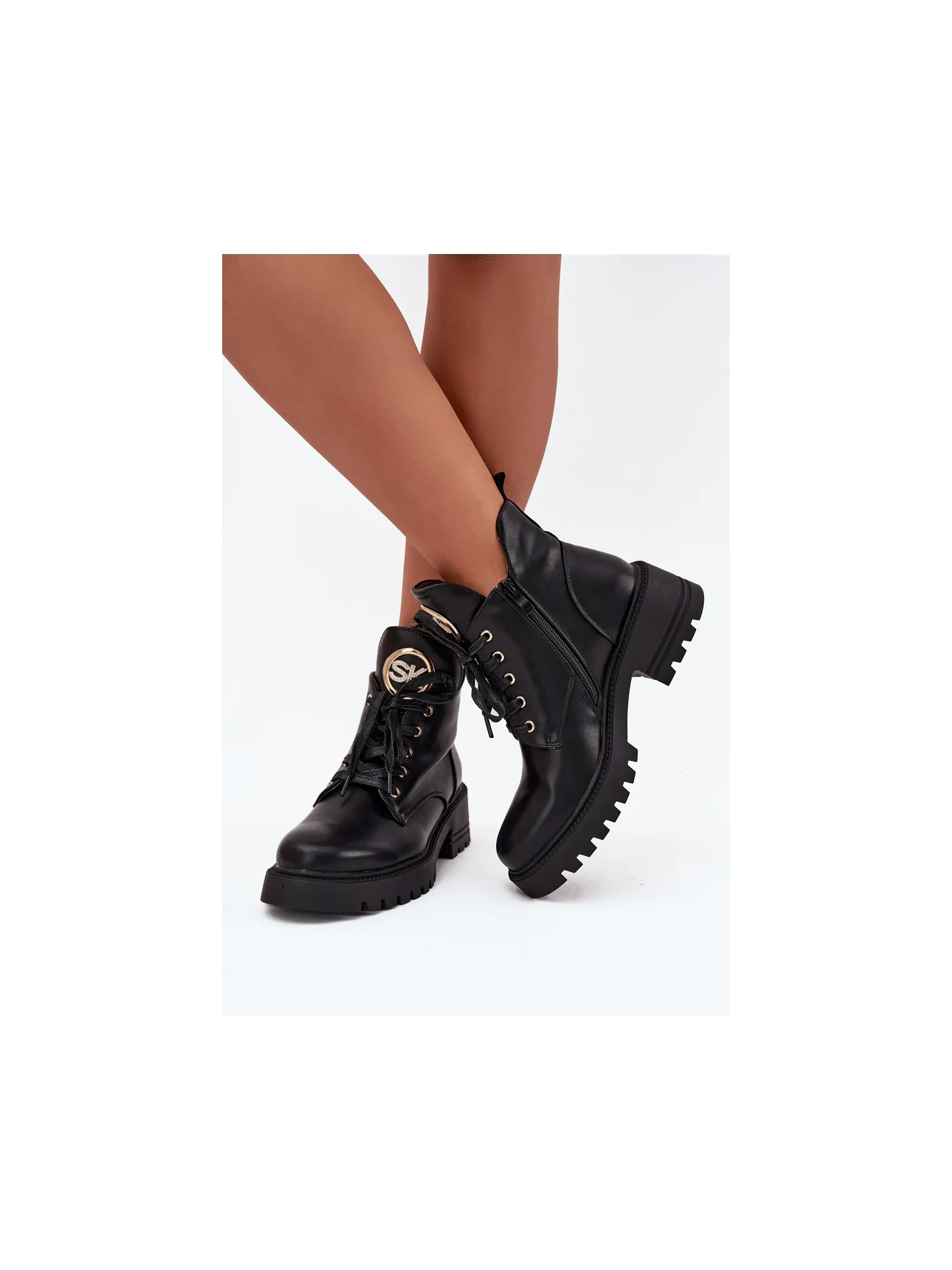 Women's ankle boots made of eco-leather combine elegance and comfort for cooler days. Set on a flat heel and platform, they provide stability and comfort. The laced model with a zipper allows for easy adjustment to the foot, and the shoe lining ensures warmth even on frosty days. The decorative detail on the tongue adds elegance to the boots, highlighting their unique character. Perfect for autumn-winter styles, they will be a great choice for any occasion. When choosing a size, please refer to the size chart. When choosing a size, please refer to the size chart.