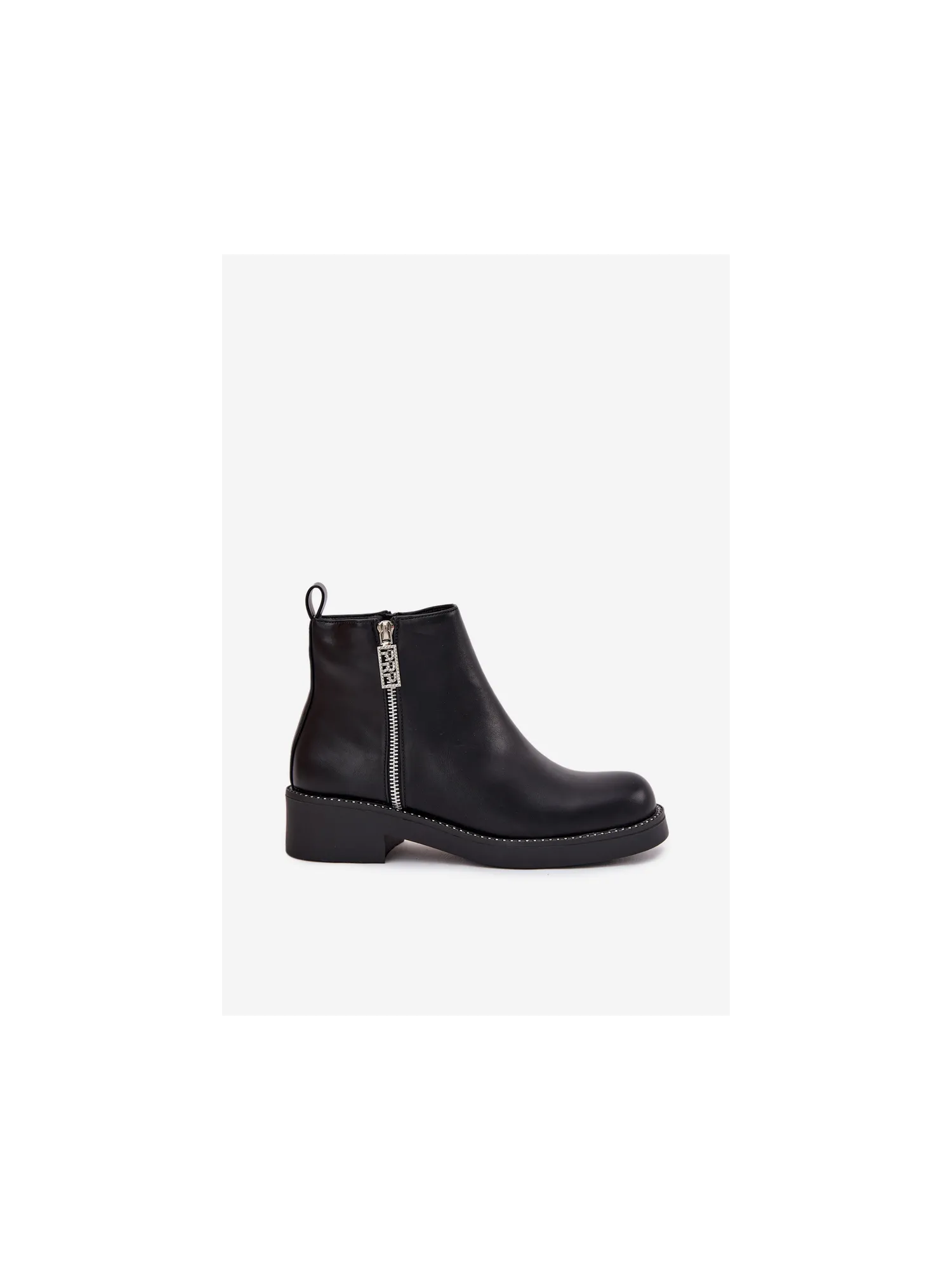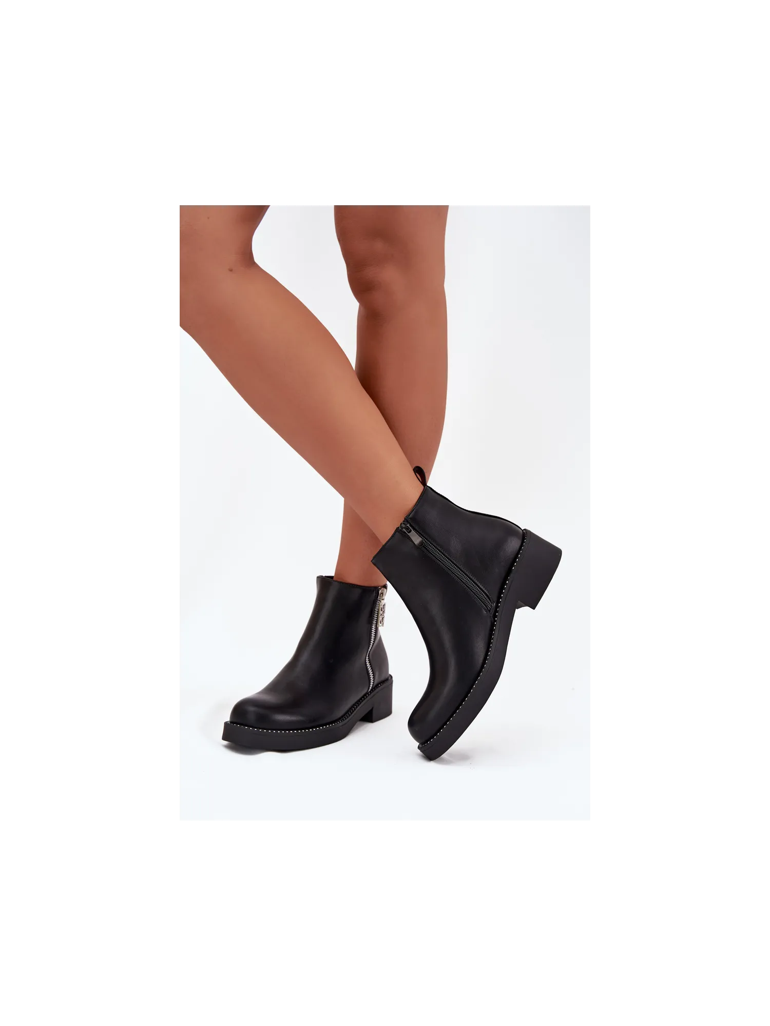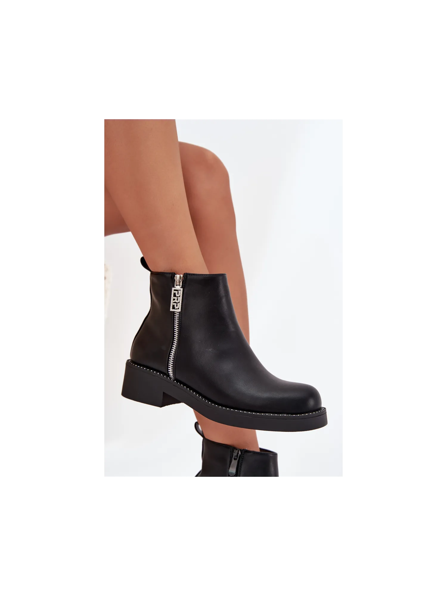 Women’s ankle boots made of eco-leather are an elegant and comfortable choice for cooler days. Fastened with a zipper. The insulated interior provides warmth, while the rounded toes and delicate heel add a feminine character, ensuring comfort and style for everyday wear. Decoration with zirconia at the sole. The silver zipper is decorative and does not unzip. Perfect for everyday styling. When choosing a size, please refer to the size chart. When choosing a size, please refer to the size chart.