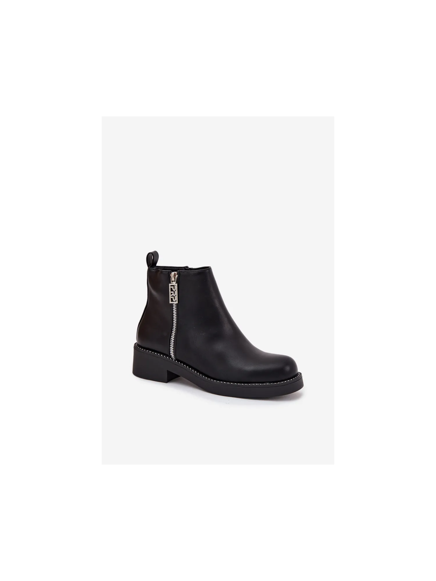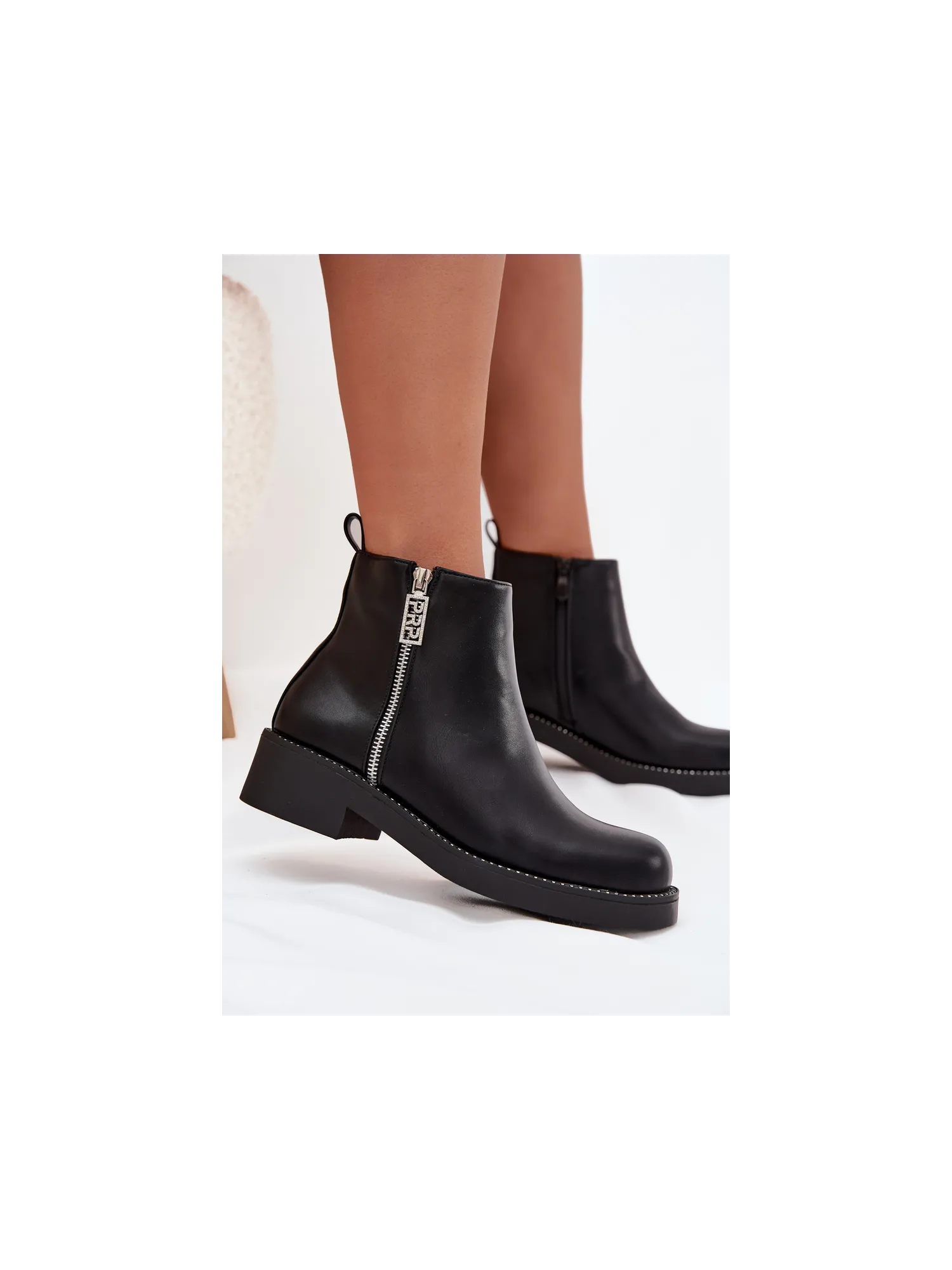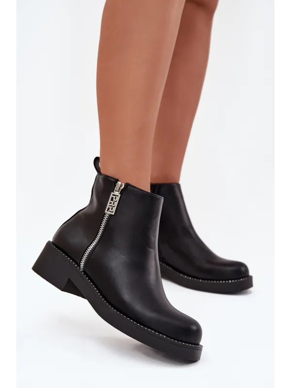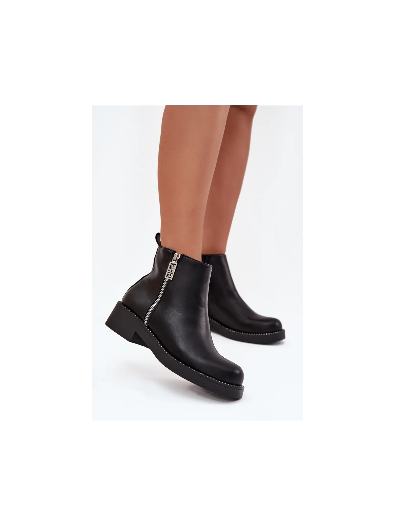 Women’s ankle boots made of eco-leather are an elegant and comfortable choice for cooler days. Fastened with a zipper. The insulated interior provides warmth, while the rounded toes and delicate heel add a feminine character, ensuring comfort and style for everyday wear. Decoration with zirconia at the sole. The silver zipper is decorative and does not unzip. Perfect for everyday styling. When choosing a size, please refer to the size chart. When choosing a size, please refer to the size chart.