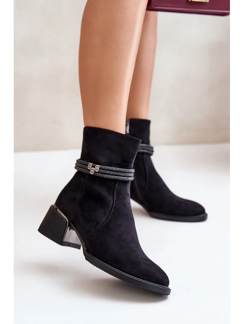 Warm Women's Ankle Boots On Low Heel With Decorative Straps D&A MR880-027 Black