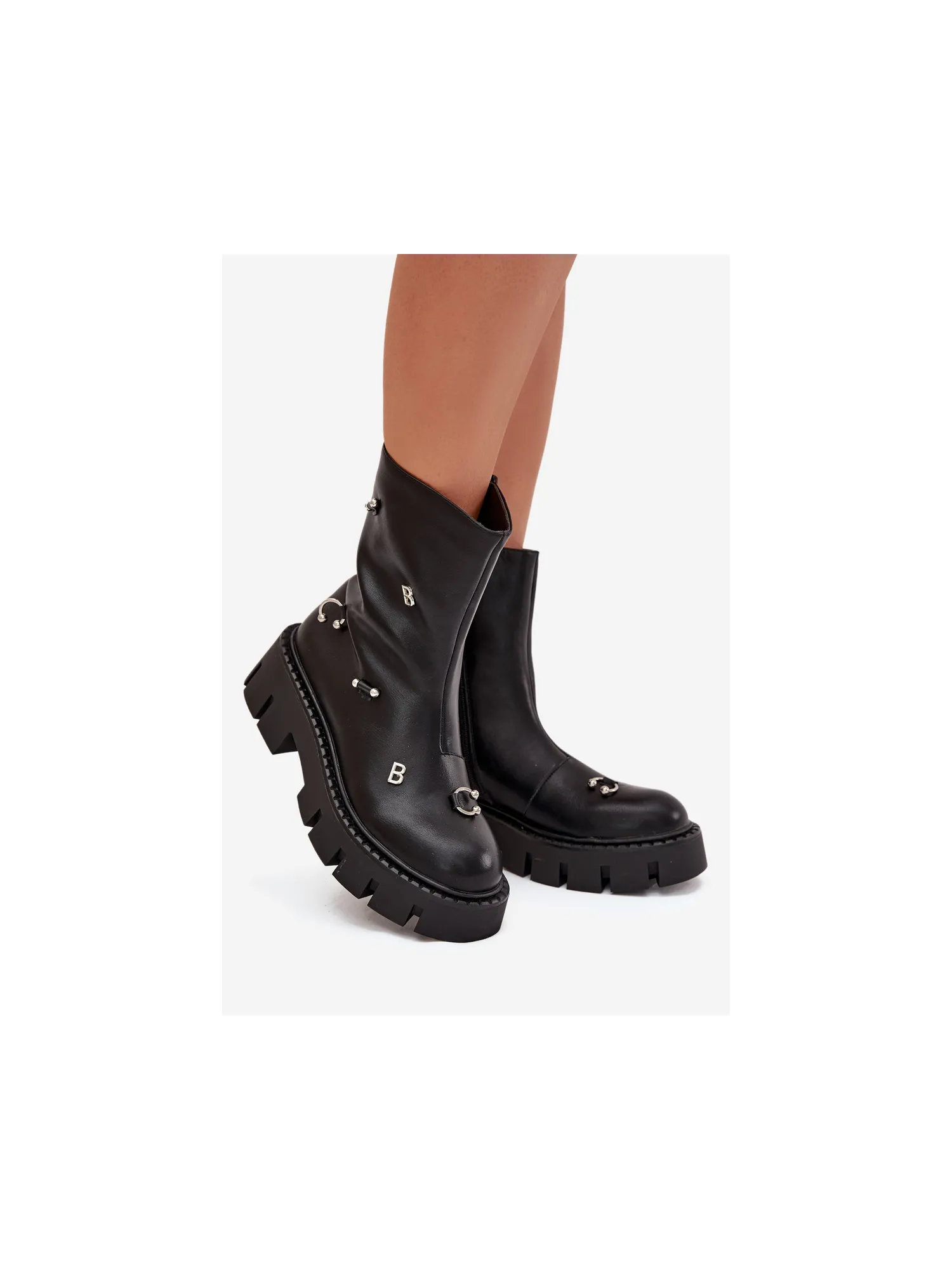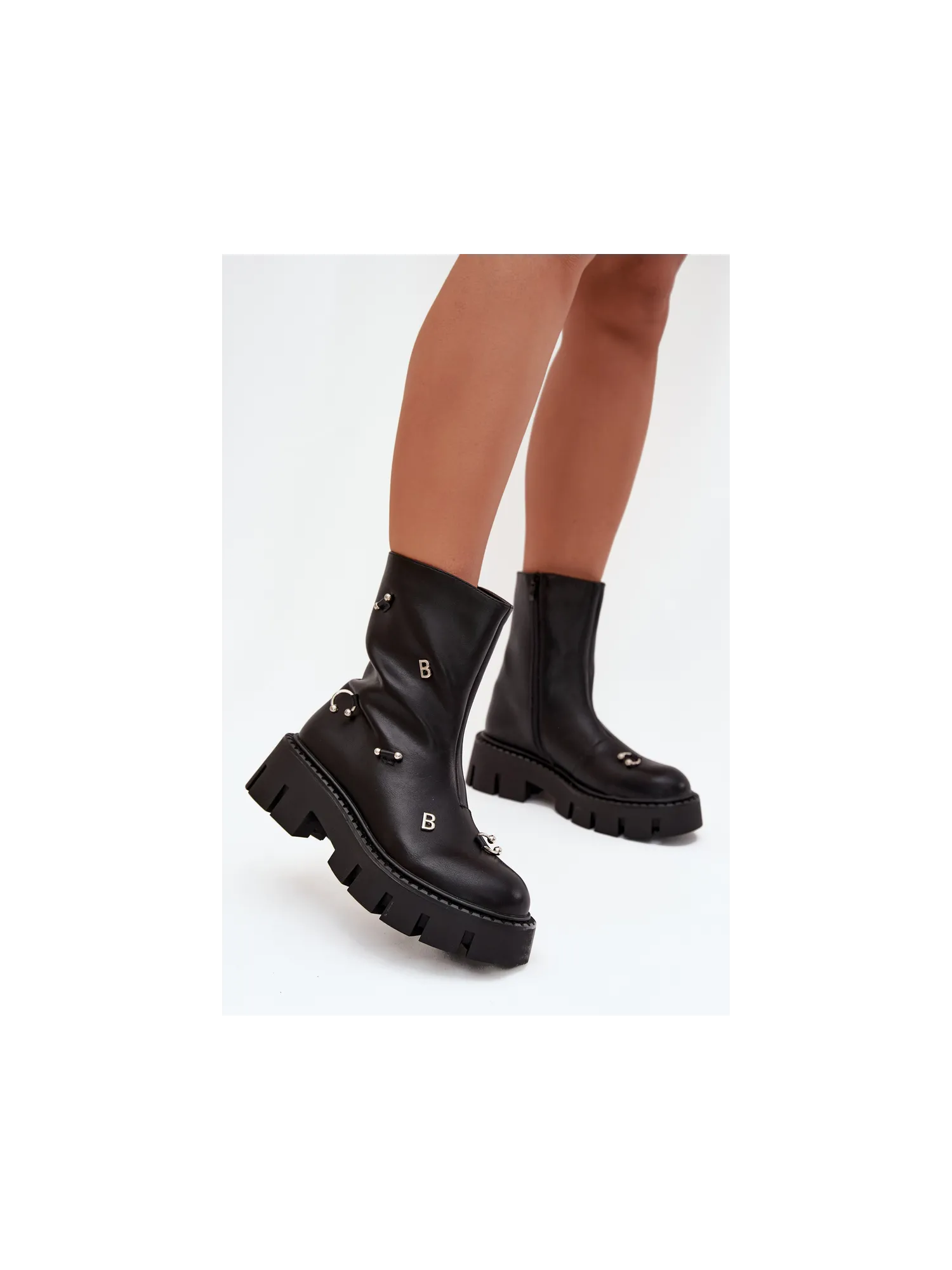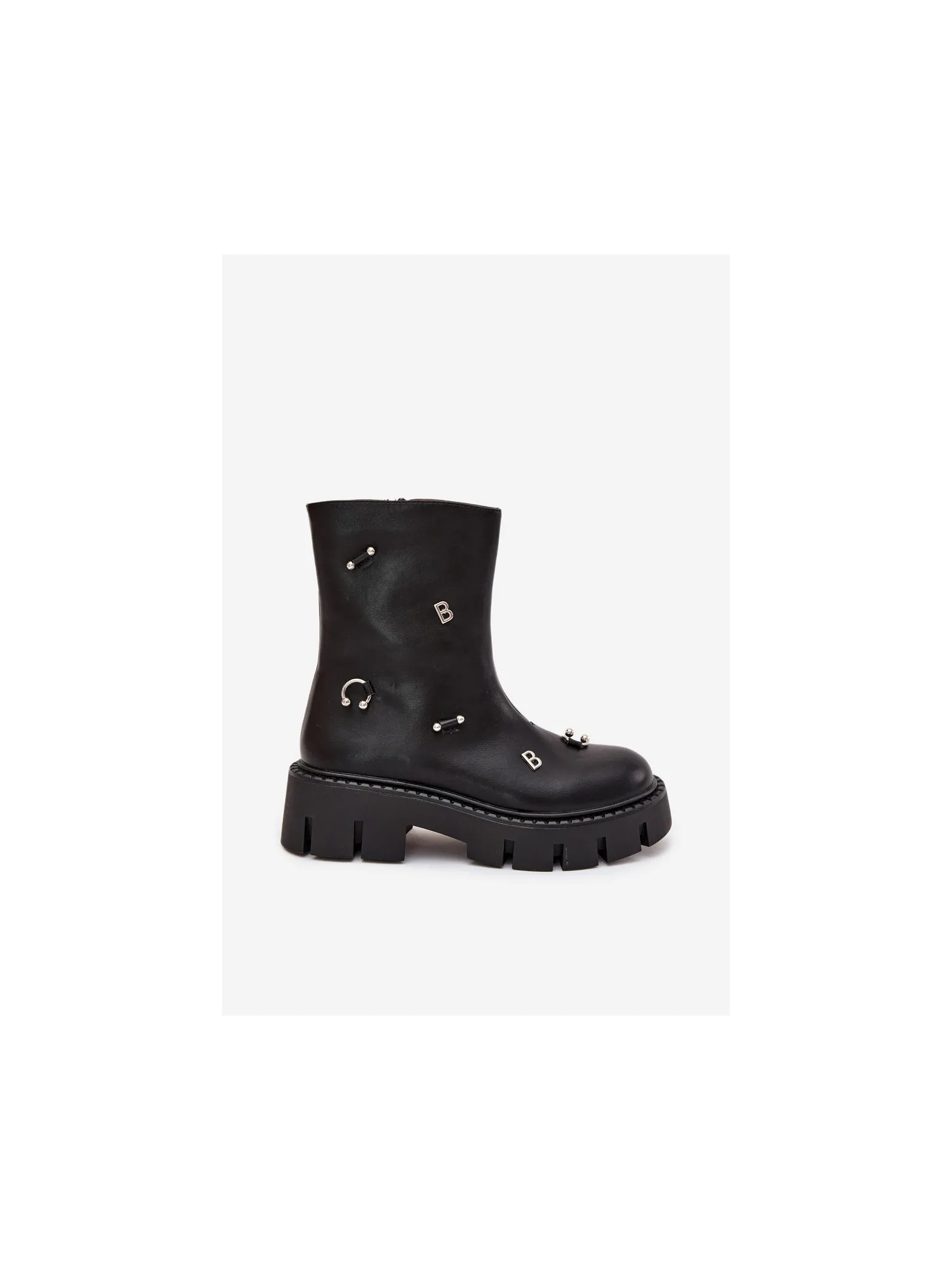 BotoWomen's ankle boots made of eco-leather are a fashionable choice for cooler days. Set on a flat heel and platform, they offer comfort and stability, perfect for everyday wear. Zipped for easy putting on, the shoe lining ensures warmth even on frosty days. The shaft adorned with pins adds a unique, stylish character. These ankle boots are an excellent option for women looking for functional footwear in a fashionable design. When selecting a size, please refer to the size chart. When choosing a size, please refer to the size chart.
