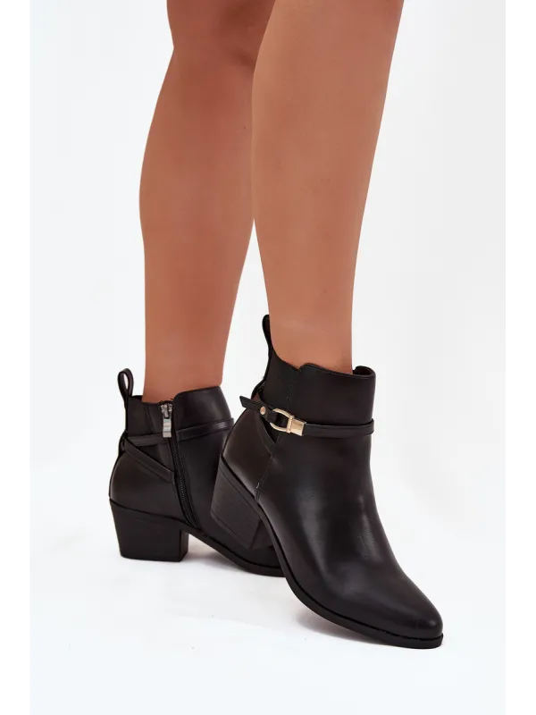Women's Ankle Boots With Zip With Strap And Gold Detail Black Zelinae