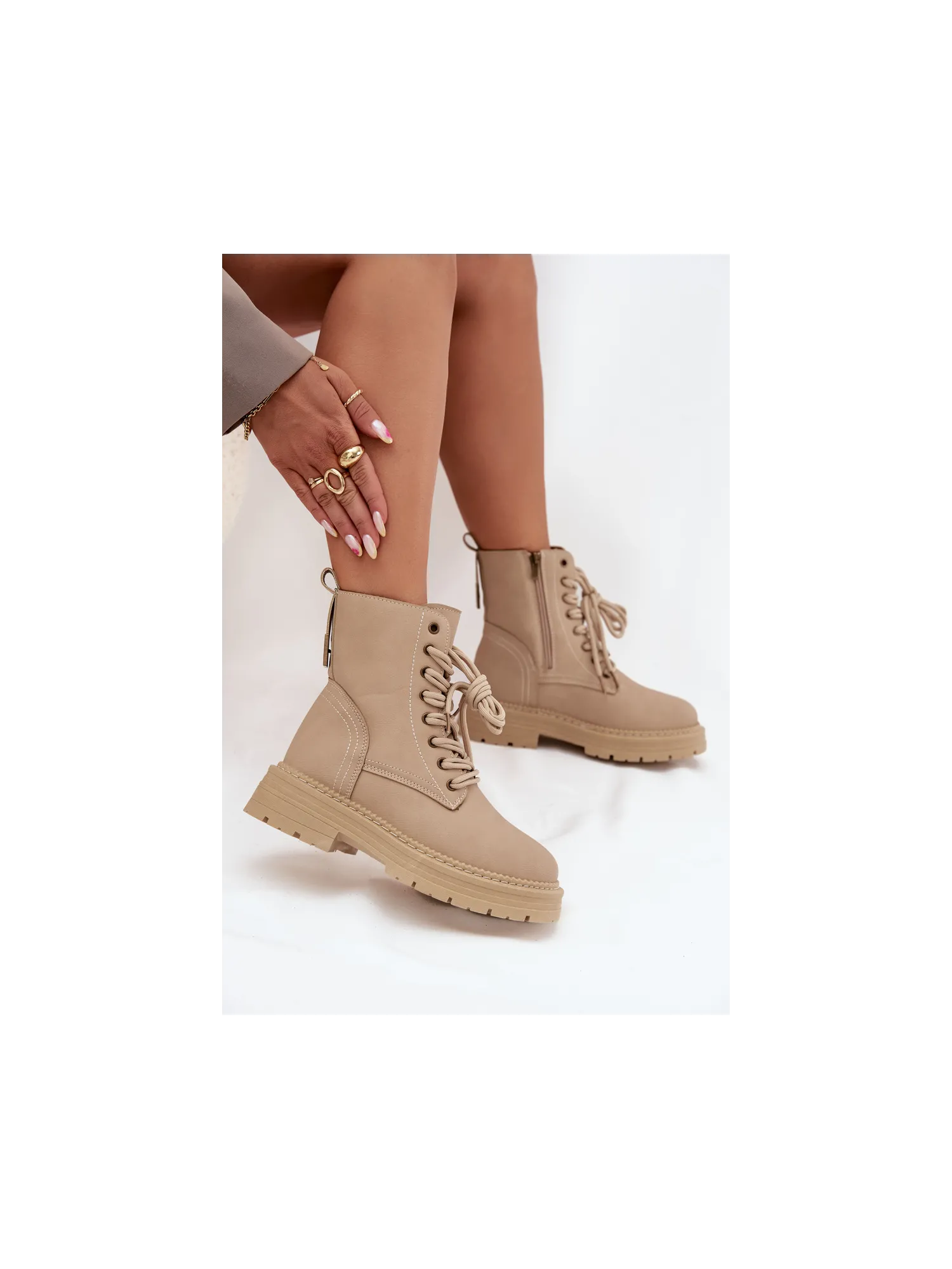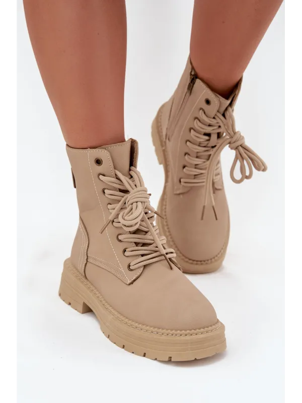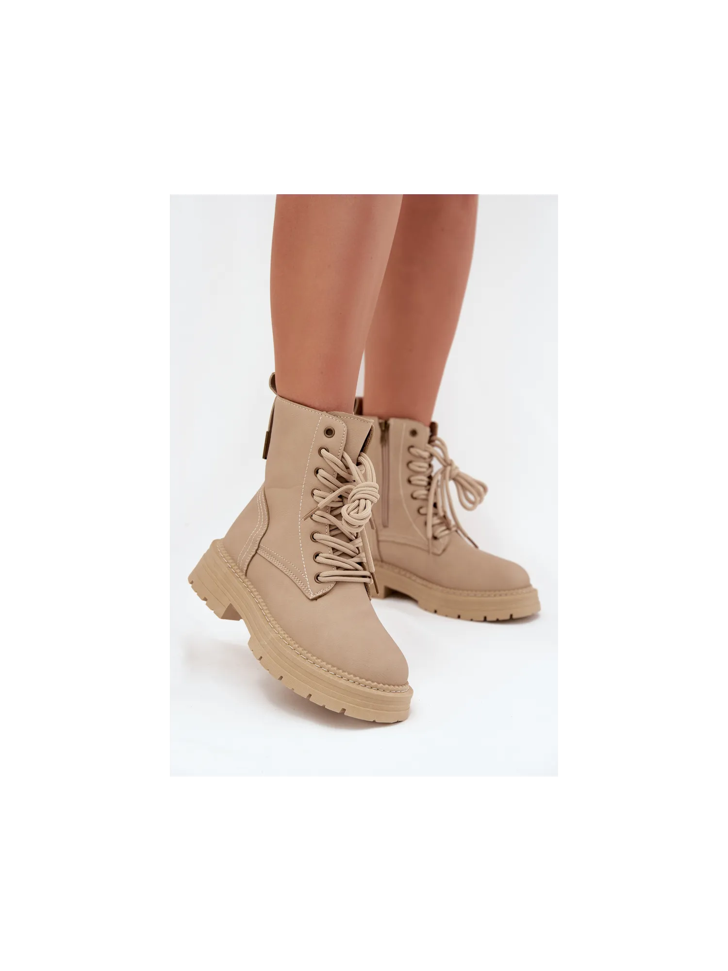 Women's ankle boots made of eco leather are a great choice for cooler days. They zip up and are laced, allowing for a perfect fit to the foot. The rounded toes provide comfort, and the removable foam insole covered with material ensures comfort throughout the day. These boots will be an excellent addition to everyday outfits. When choosing the size, please refer to the size chart. When choosing a size, please refer to the size chart.