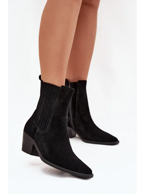Women's boots made of natural suede are an elegant option for cooler days. The rounded toes add subtlety, while the zip fastening ensures comfort. The shoe lining guarantees warmth, and the block heel provides stability and comfort. These boots pair perfectly with various styles, combining functionality with a fashionable look. When choosing a size, please refer to the size chart.
