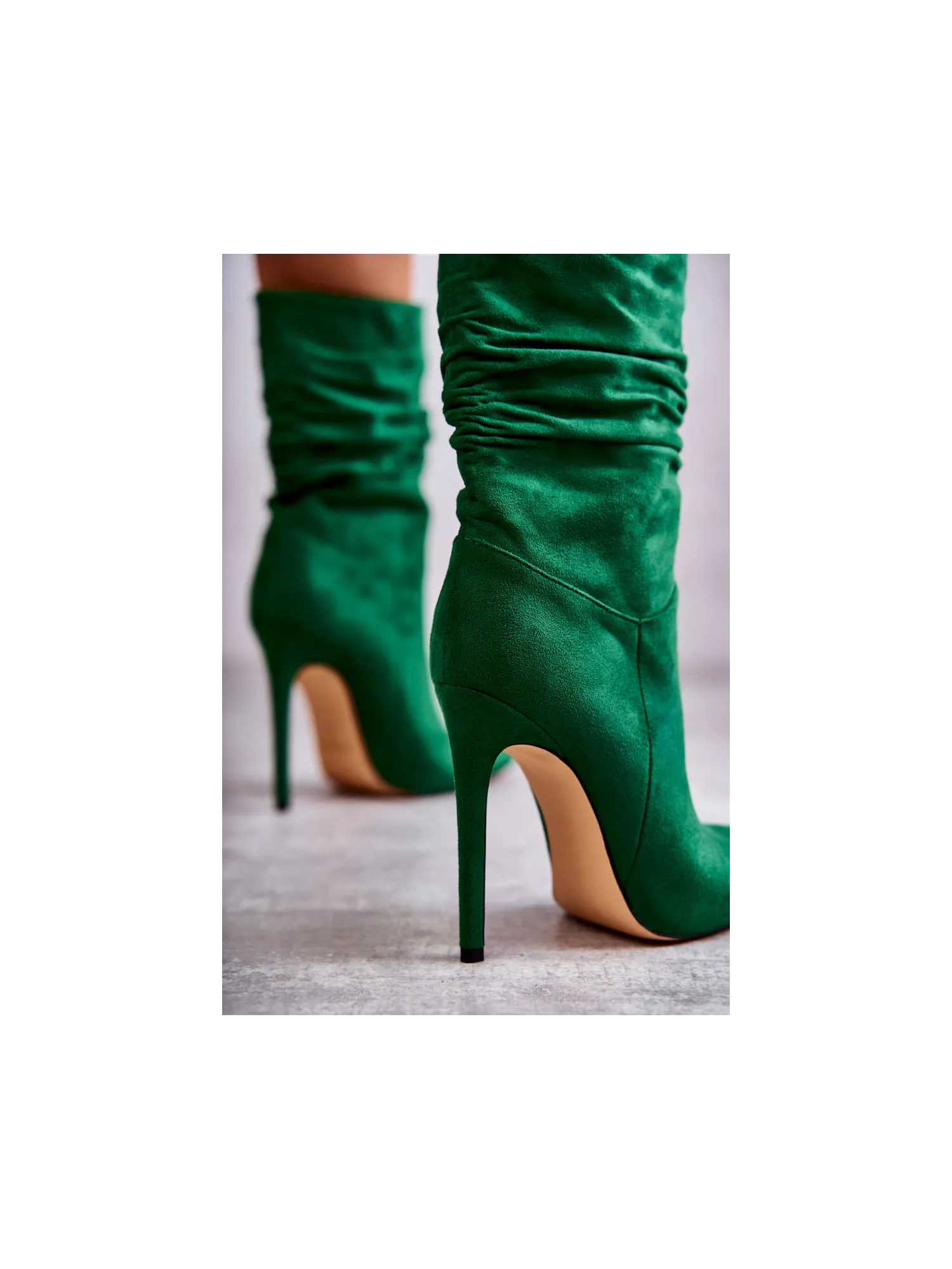 Beautiful women's boots are made of eco suede pleasant to the touch. They have delicate ruffles on the upper and a stiffened heel. A high-heeled model in the form of a pin and a pointed toe optically slenderize the legs. Boots - the boots have insulation in the form of a shoe blanket. Delight everyone with your styling! When choosing a size, please use the size chart.