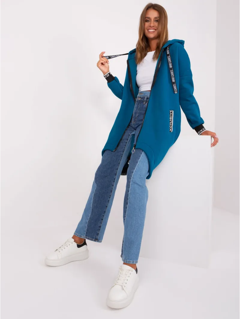 Džemperio S/M dydžio išmatavimai: krūtinė - 70 cm, bendras ilgis - 103 cm, rankovių ilgis - 63 cm.