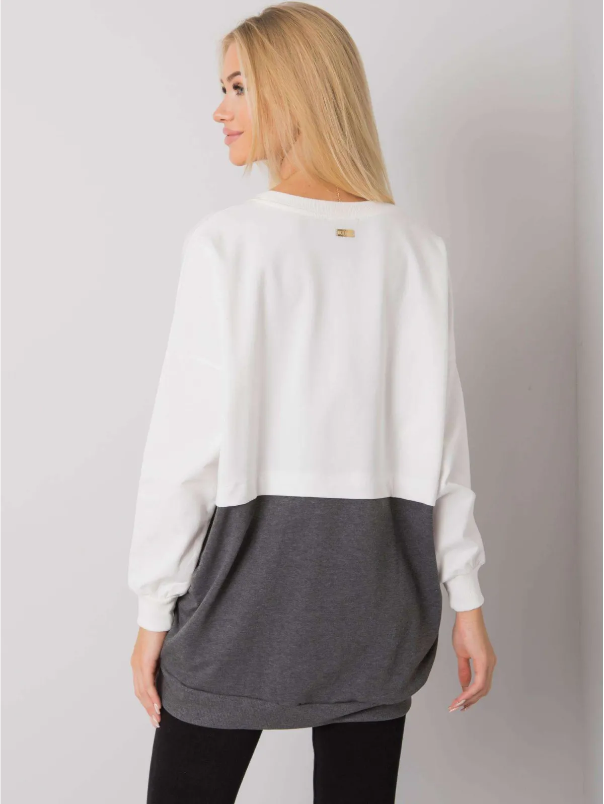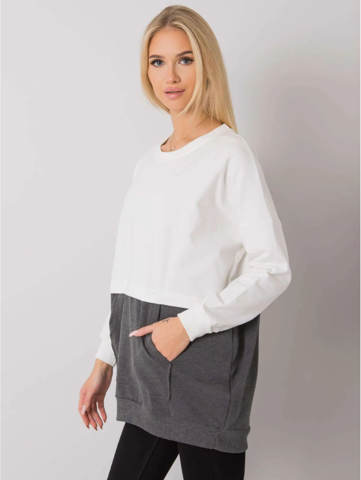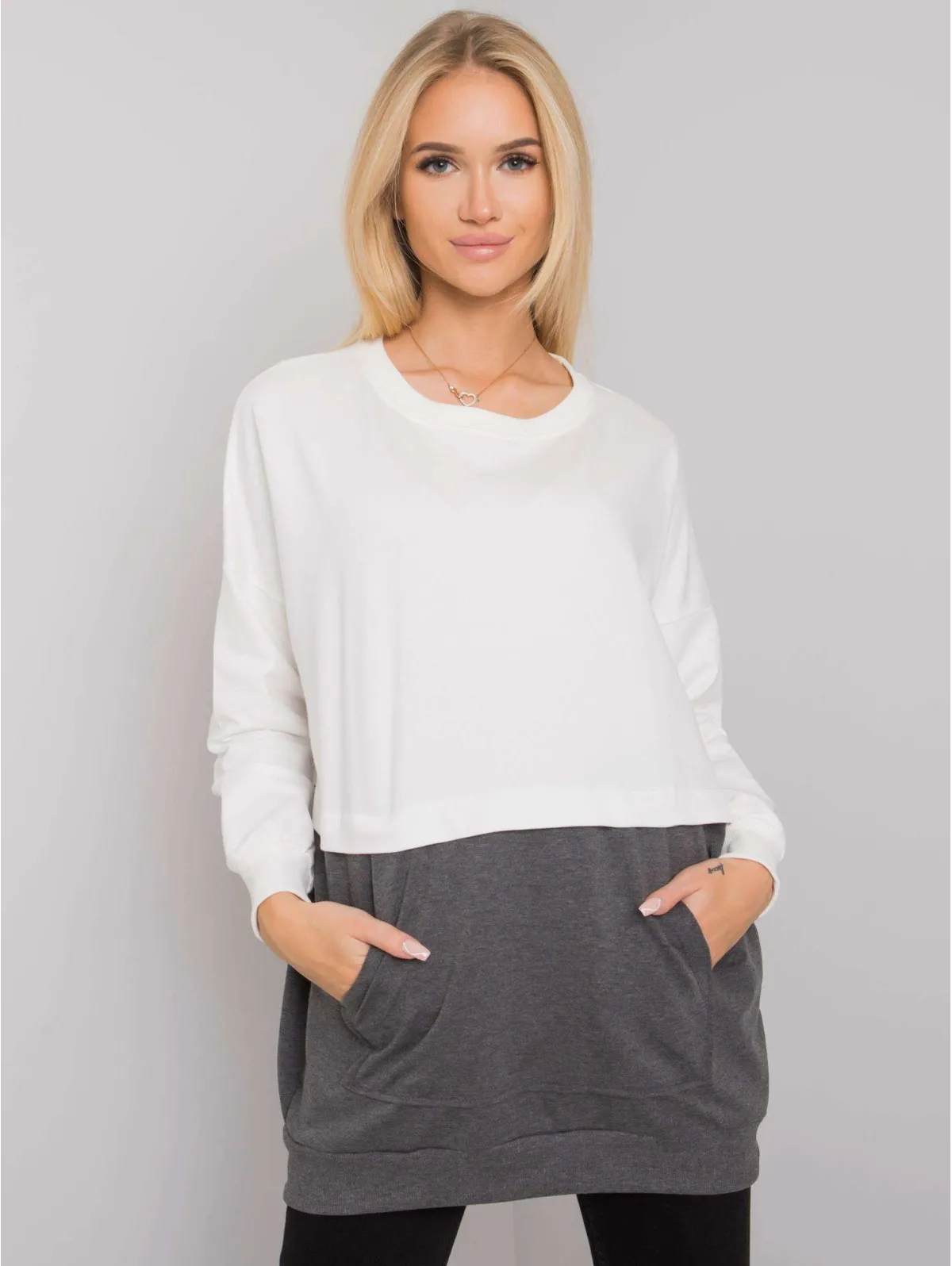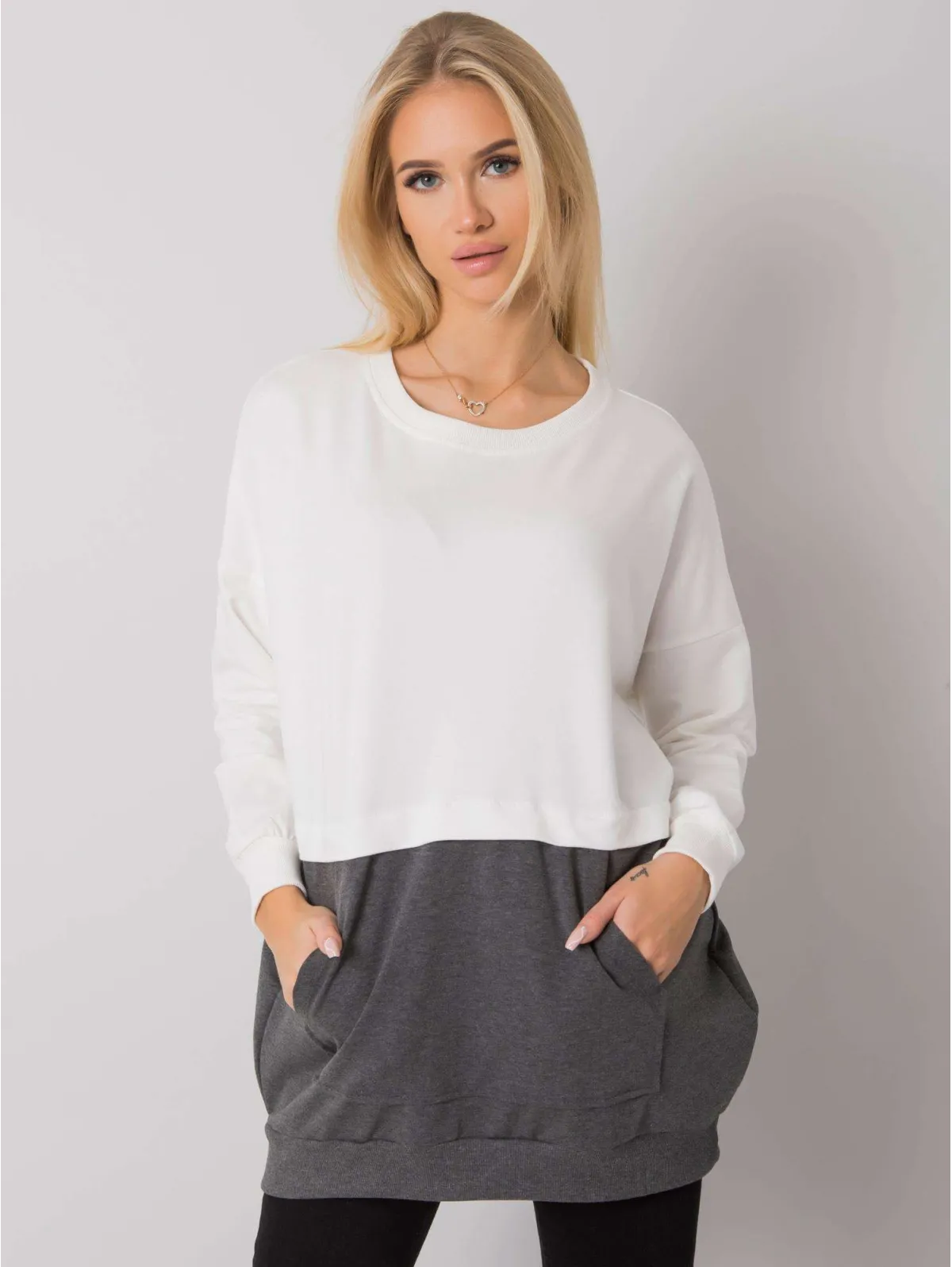 RUE PARIS Ecru-ciemnoszara bluza damska kangurka.