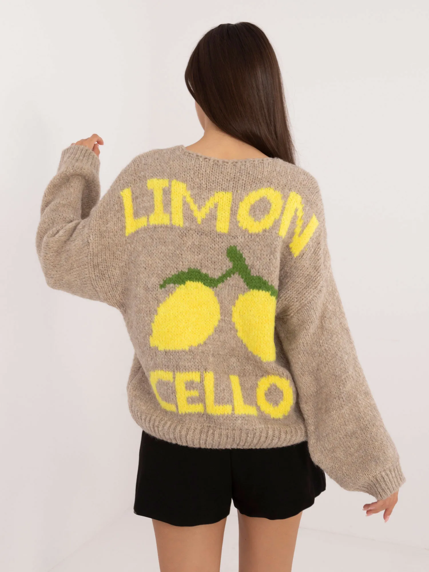 Wymiary swetra w rozmiarze one size mierzone na płasko: szerokość pod pachami - 62 cm, długość rękawa - 56 cm, długość całkowita - 57 cm.