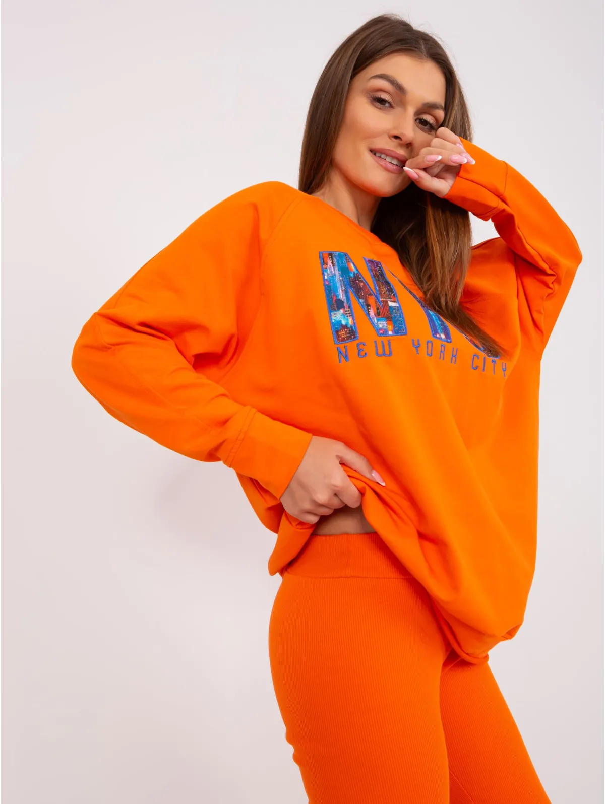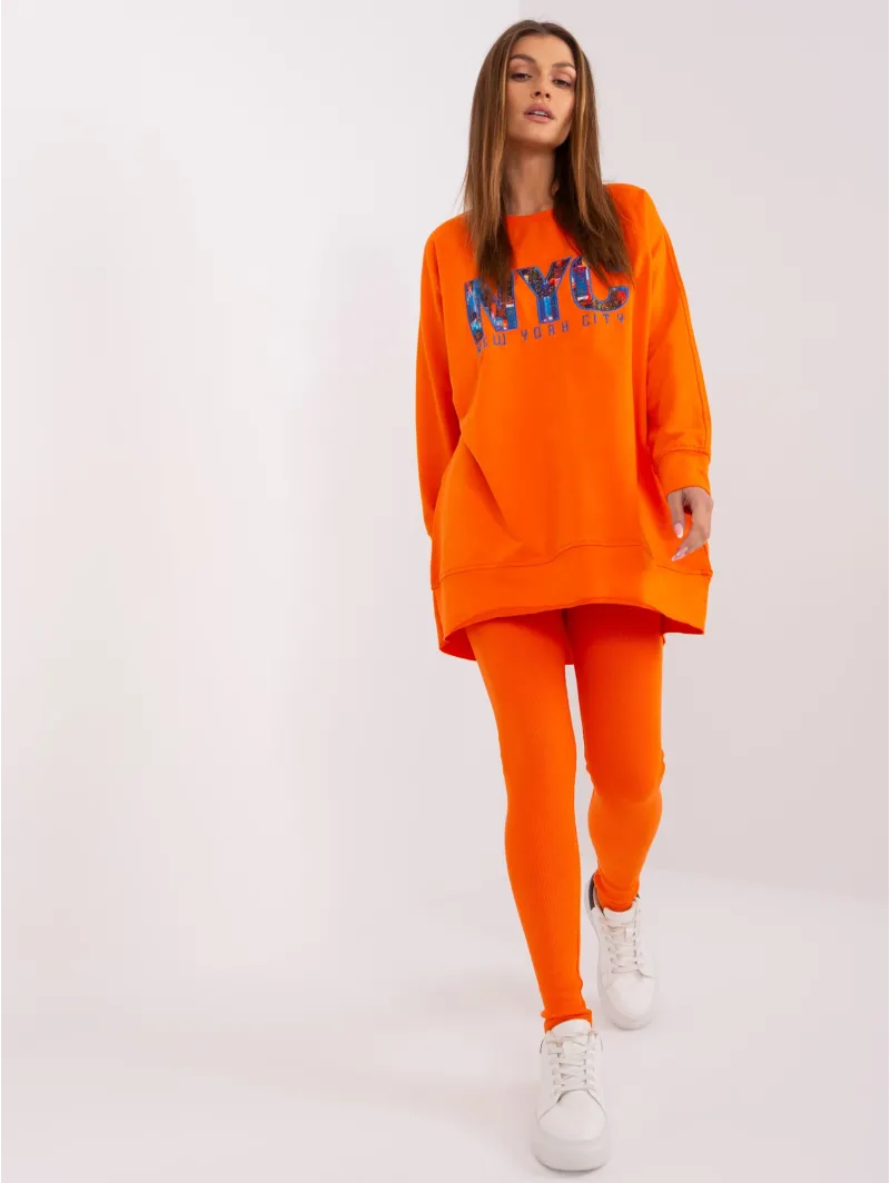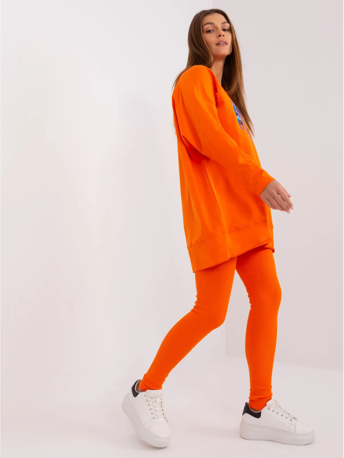 Oranžinis dviejų dalių komplektas su antblauzdžiais .
