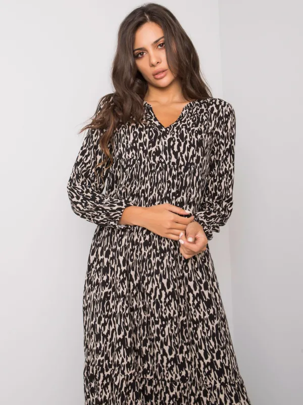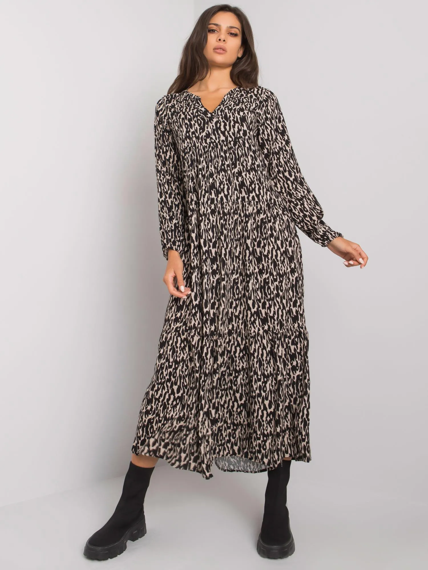 Wymiary sukienki w rozmiarze S mierzone na płasko: szerokość pod pachami - 47 cm, długość całkowita - 128 cm, długość rękawa - 60 cm