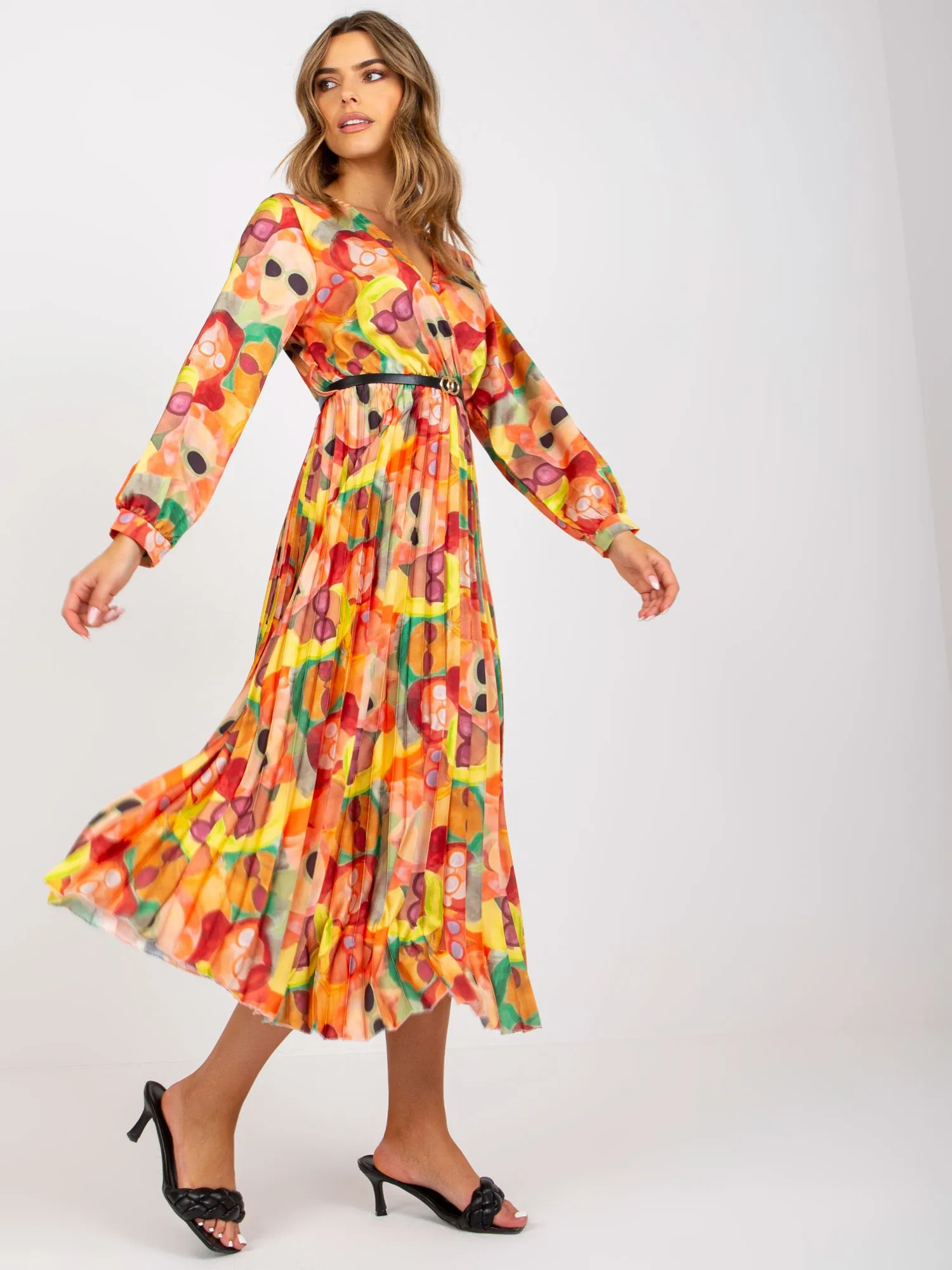 Wymiary sukienki w rozmiarze one size mierzone na płasko: szerokość pod pachami - 48 cm, długość całkowita - 122 cm, długość rękawa - 55 cm.