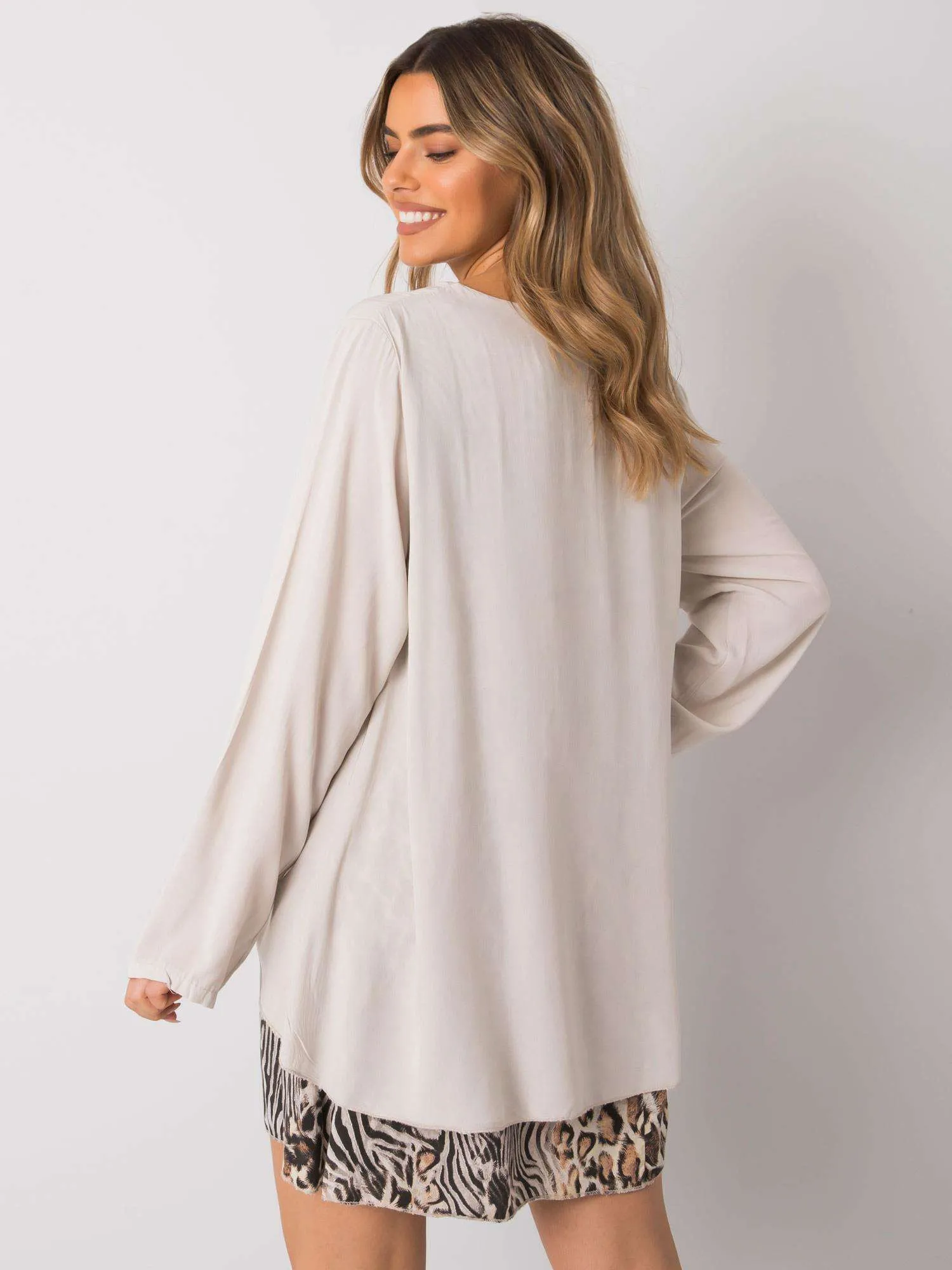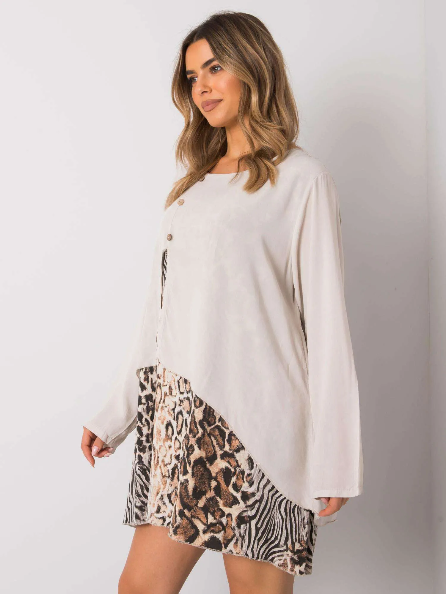 Beżowa sukienka damska oversize.