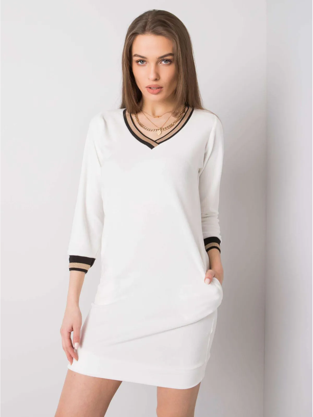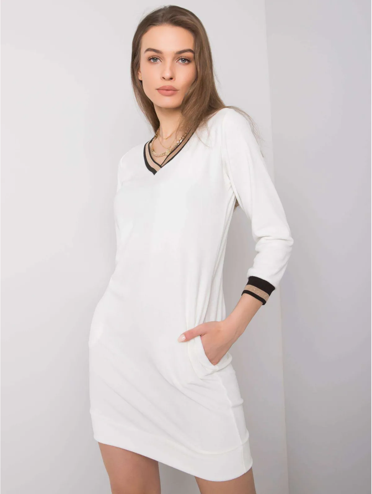 Wymiary sukienki w rozmiarze S mierzone na płasko: szerokość pod pachami - 48 cm, długość całkowita - 79 cm, długość rękawa - 47 cm