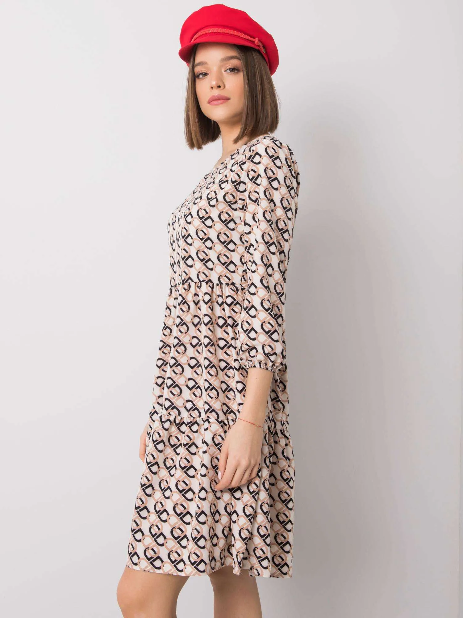 Wymiary sukienki w rozmiarze S mierzone na płasko: szerokość pod pachami - 45 cm, długość całkowita - 89 cm, długość rękawa - 44 cm
