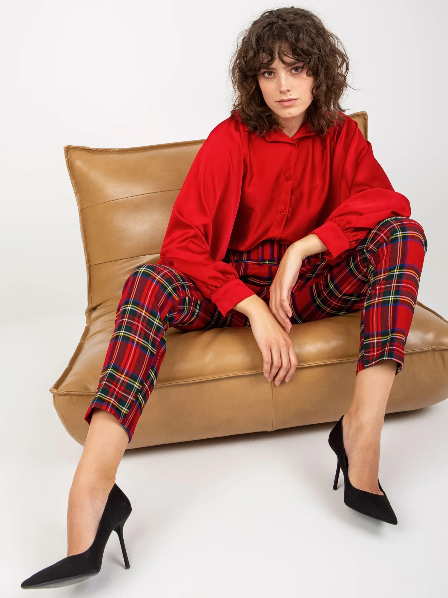 Ciemnoczerwona damska koszula z szerokimi rękawami .