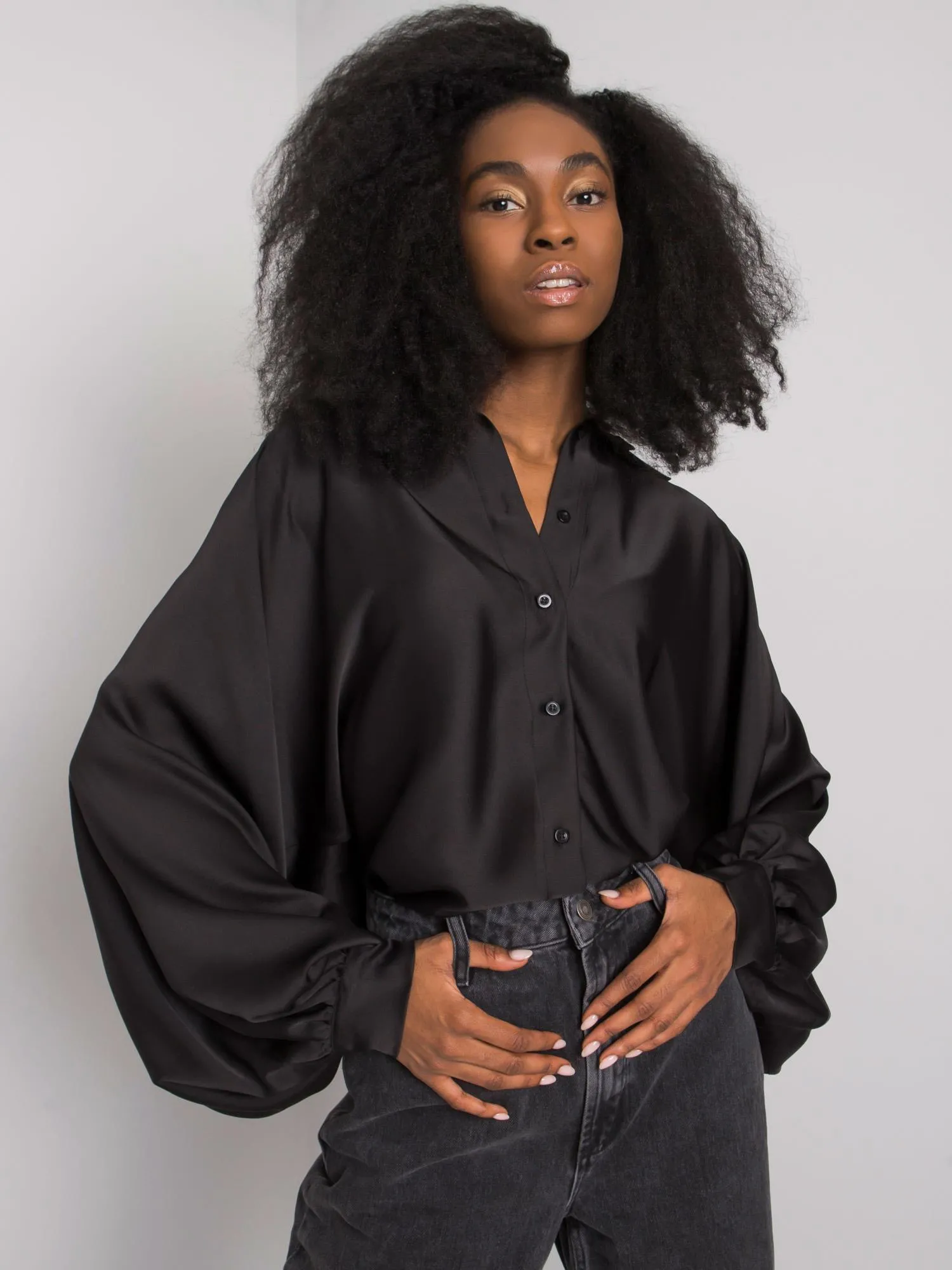 Wymiary koszuli w rozmiarze one size mierzone na płasko: szerokość pod pachami - 70 cm, długość całkowita - 65 cm, długość rękawa - 61 cm.