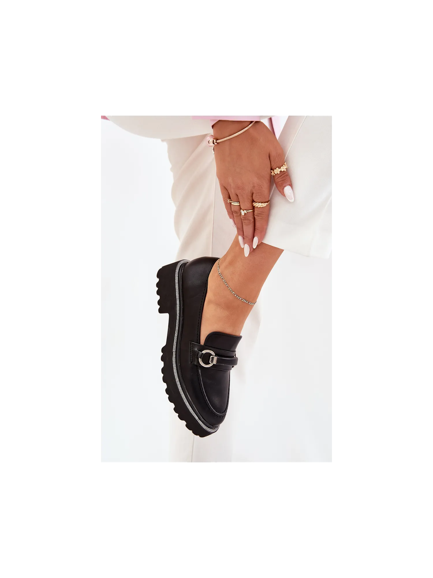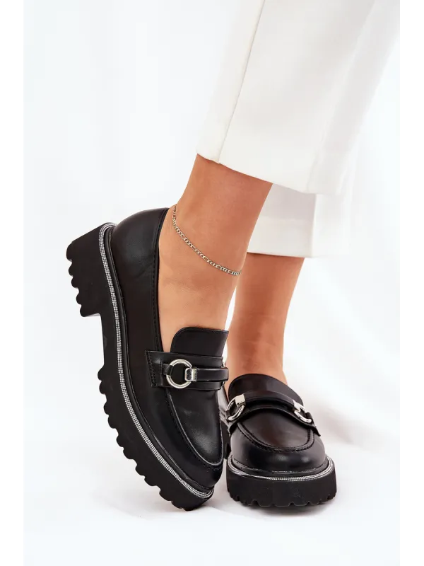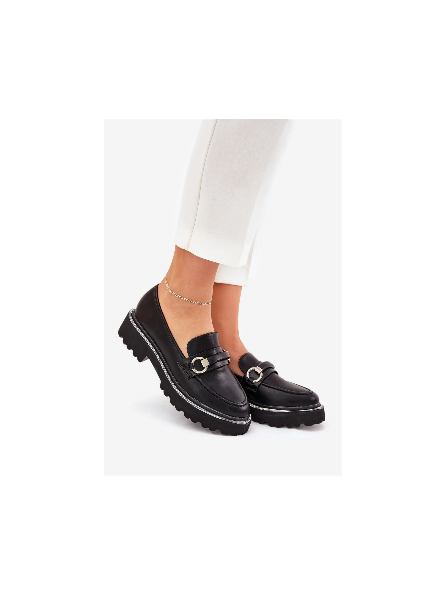 Stylish moccasins made of eco-leather. A front strap with a decoration adds a unique character, while the rounded toes ensure comfort throughout the day. There are zirconia decorations at the sole that add sparkle. Perfect for everyday wear, these moccasins pair well with various styles. When choosing a size, please refer to the size chart.