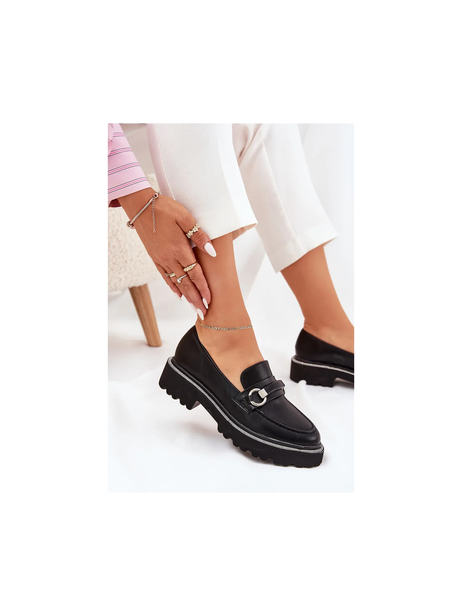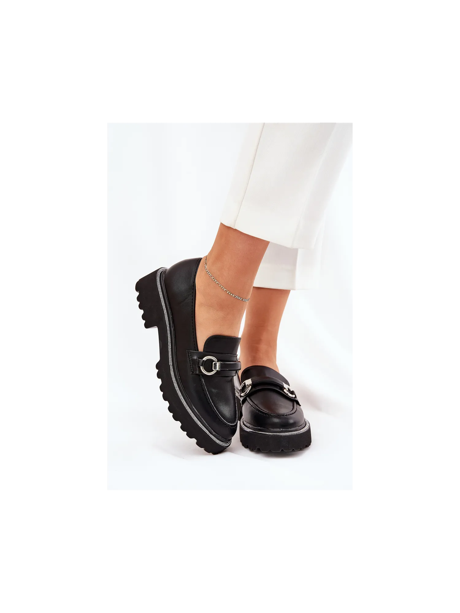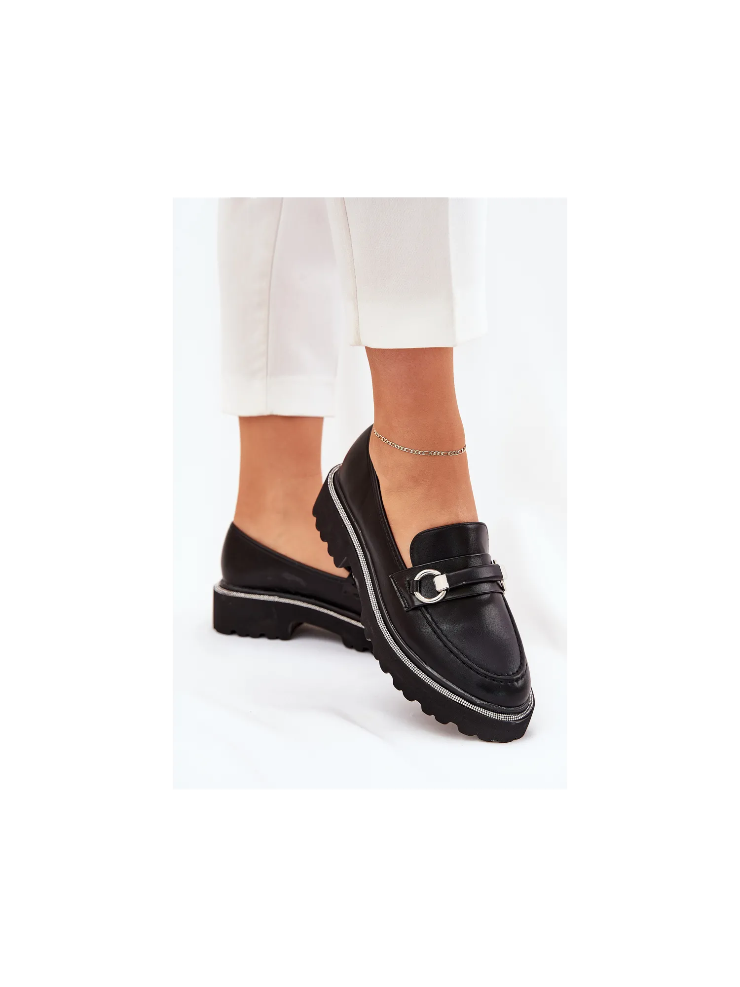 Stylish moccasins made of eco-leather. A front strap with a decoration adds a unique character, while the rounded toes ensure comfort throughout the day. There are zirconia decorations at the sole that add sparkle. Perfect for everyday wear, these moccasins pair well with various styles. When choosing a size, please refer to the size chart.