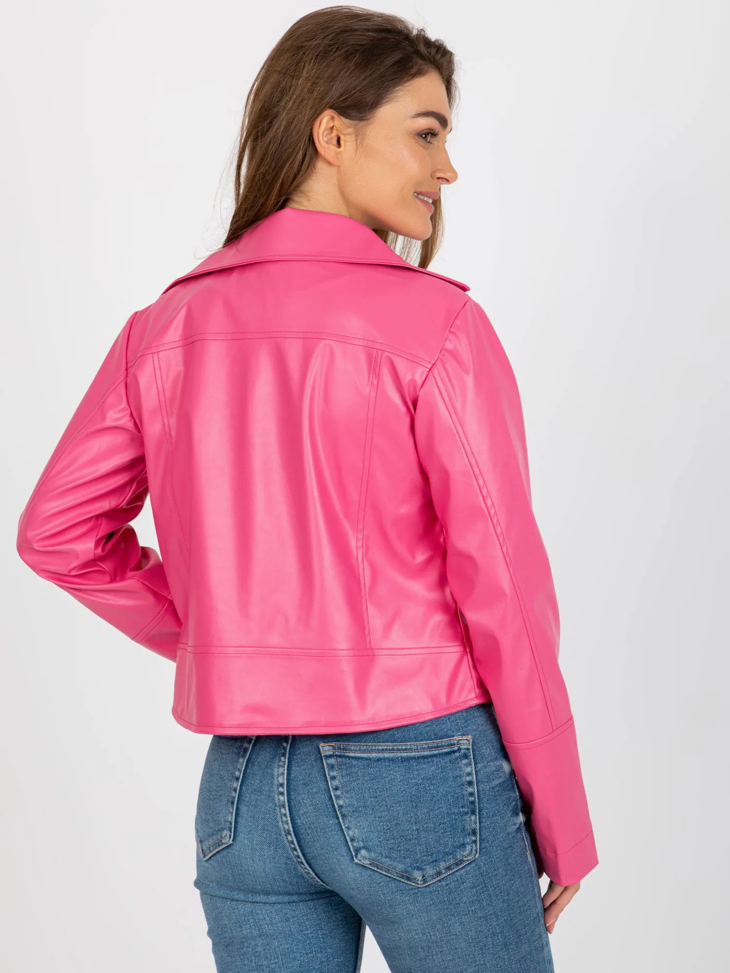 Różowa krótka kurtka ramoneska z ekoskóry .
