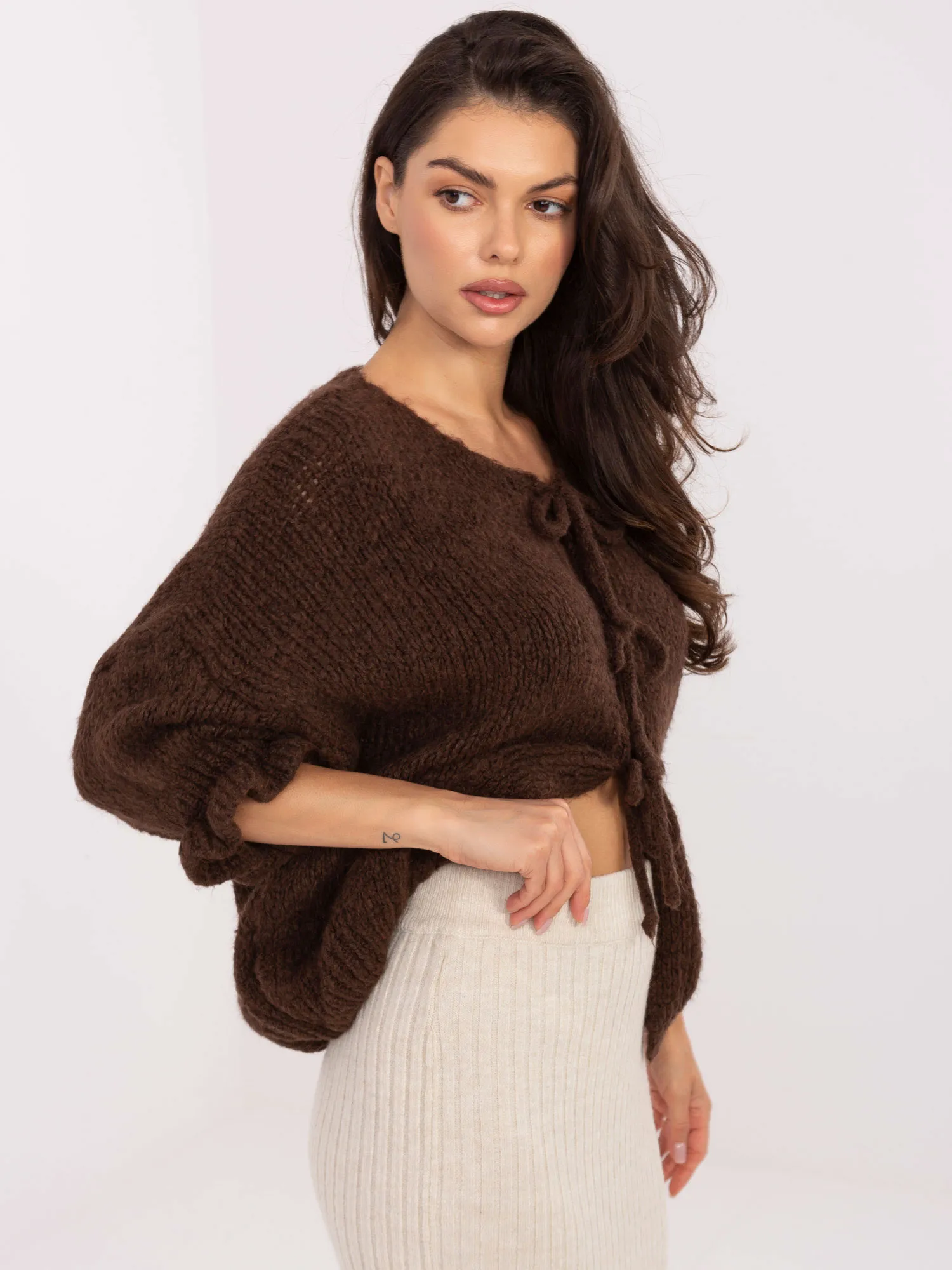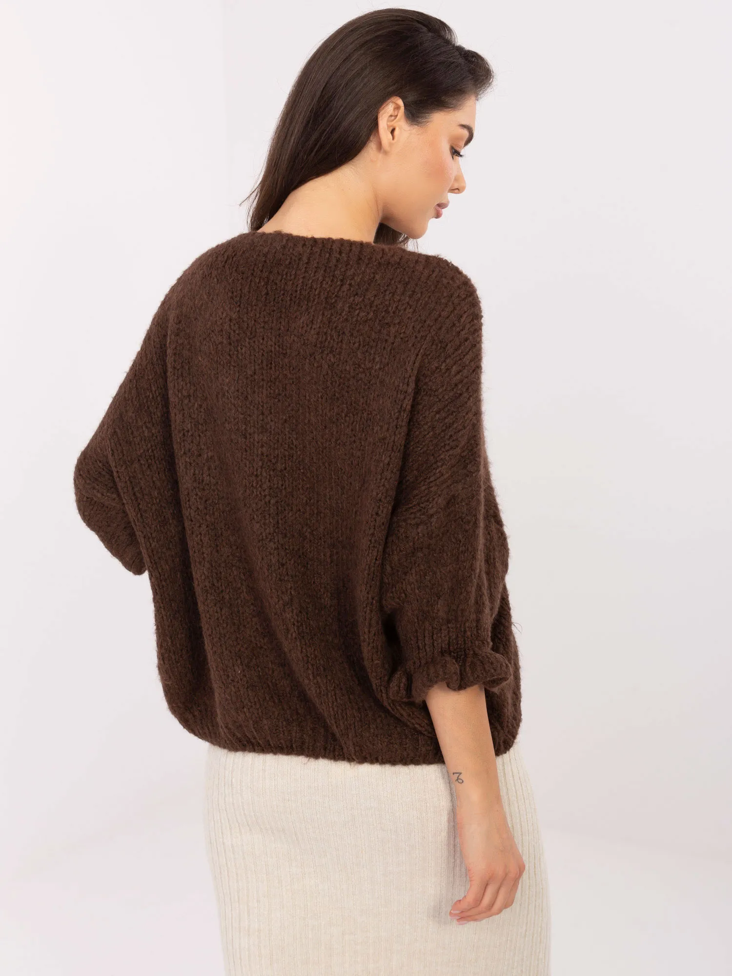 Wymiary swetra w rozmiarze one size mierzone na płasko: szerokość pod pachami - 63 cm, długość rękawa - 46 cm, szerokość w biodrach - 54 cm, długość całkowita - 64 cm.< /p> 65% akryl, 9% lana, 9% wiskoza, 17% poliami
