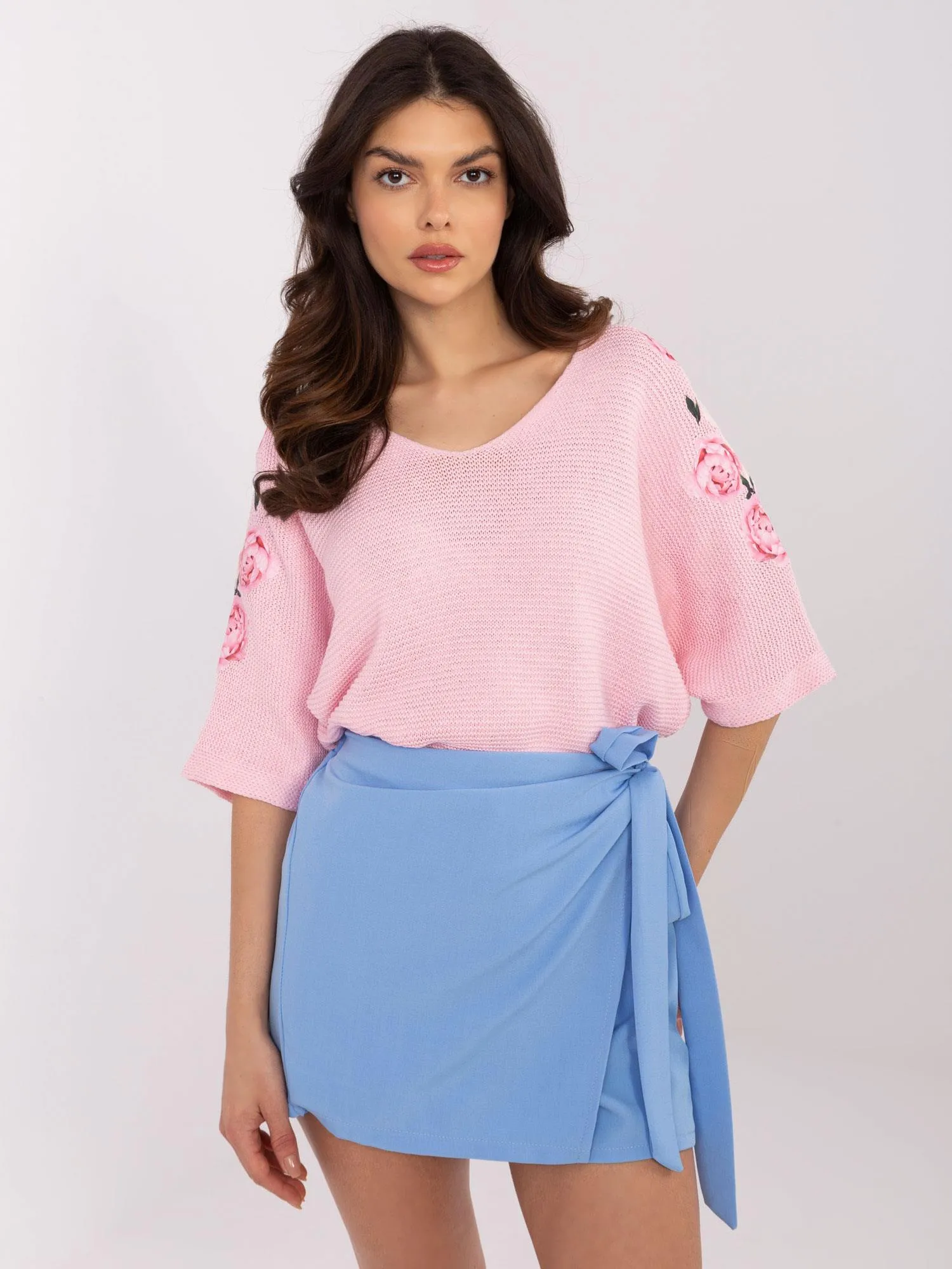 Wymiary swetra w rozmiarze one size mierzone na płasko: szerokość pod pachami - 58 cm, długość rękawa - 25 cm (od pachy), szerokość w biodrach - 52 cm, długość całkowita - 59 cm.