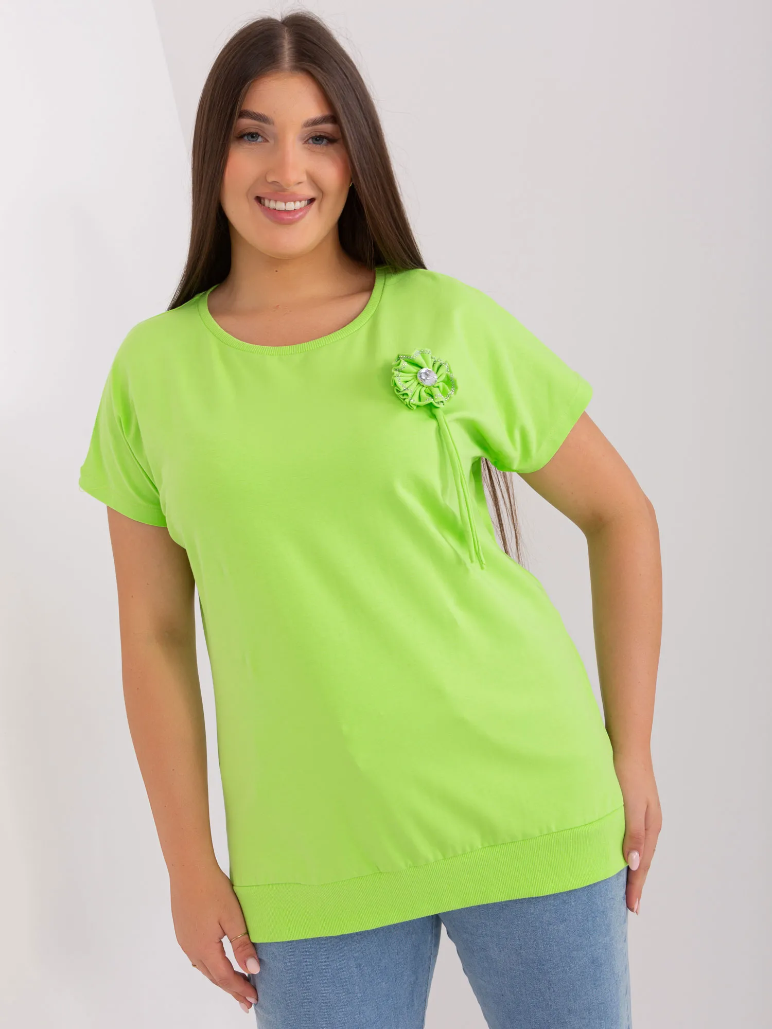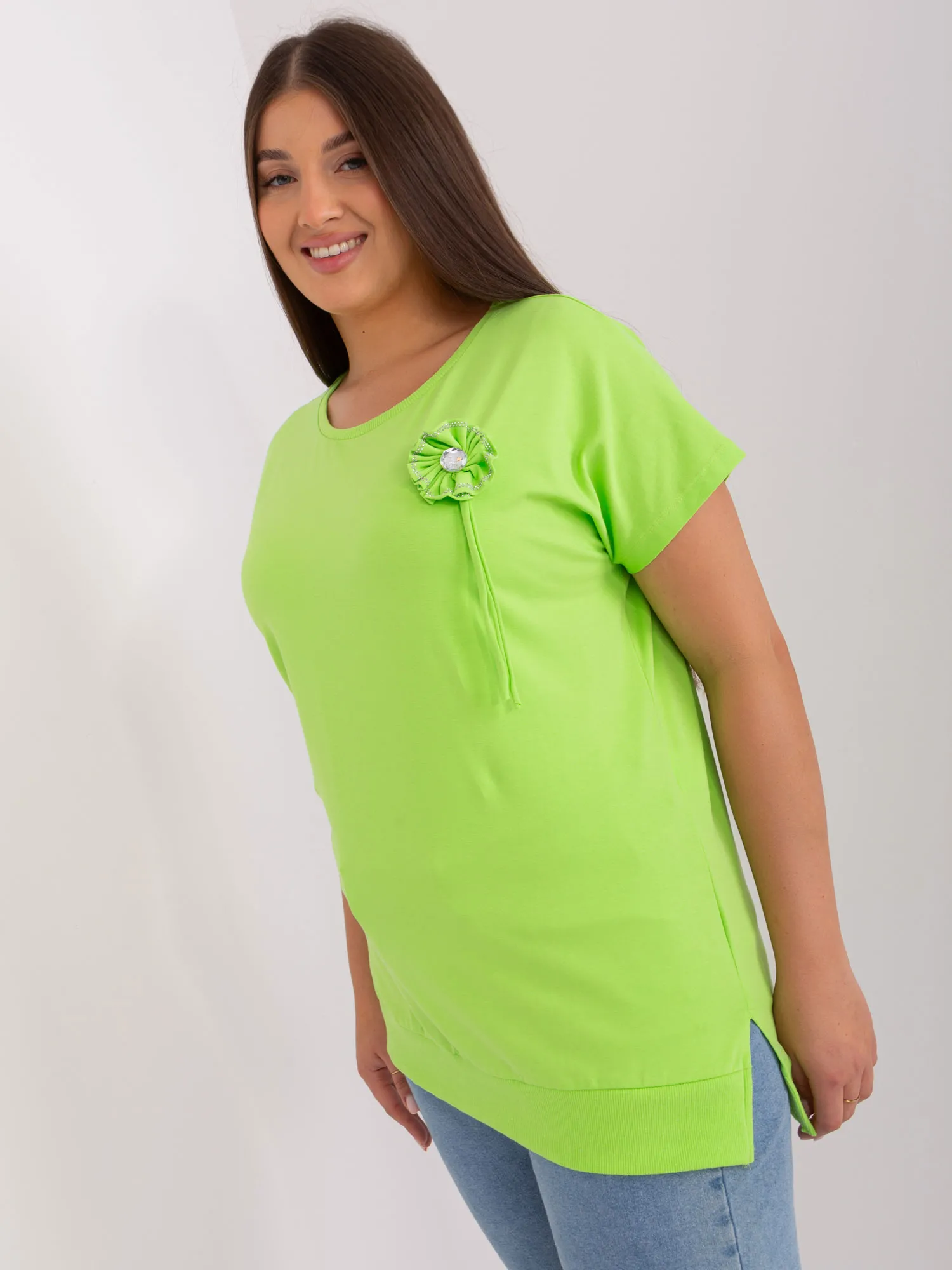 Jasnozielona bluzka damska plus size ze ściągaczem.