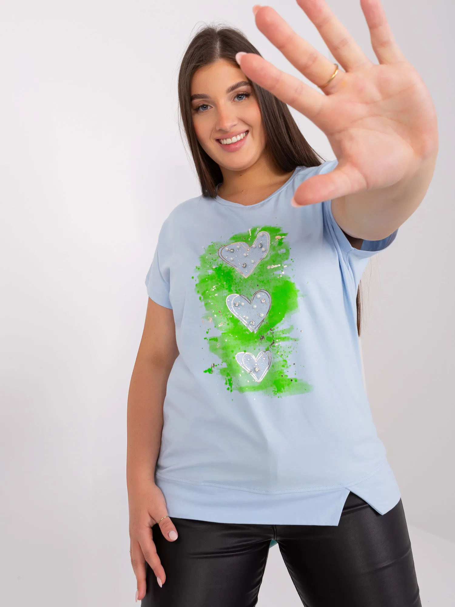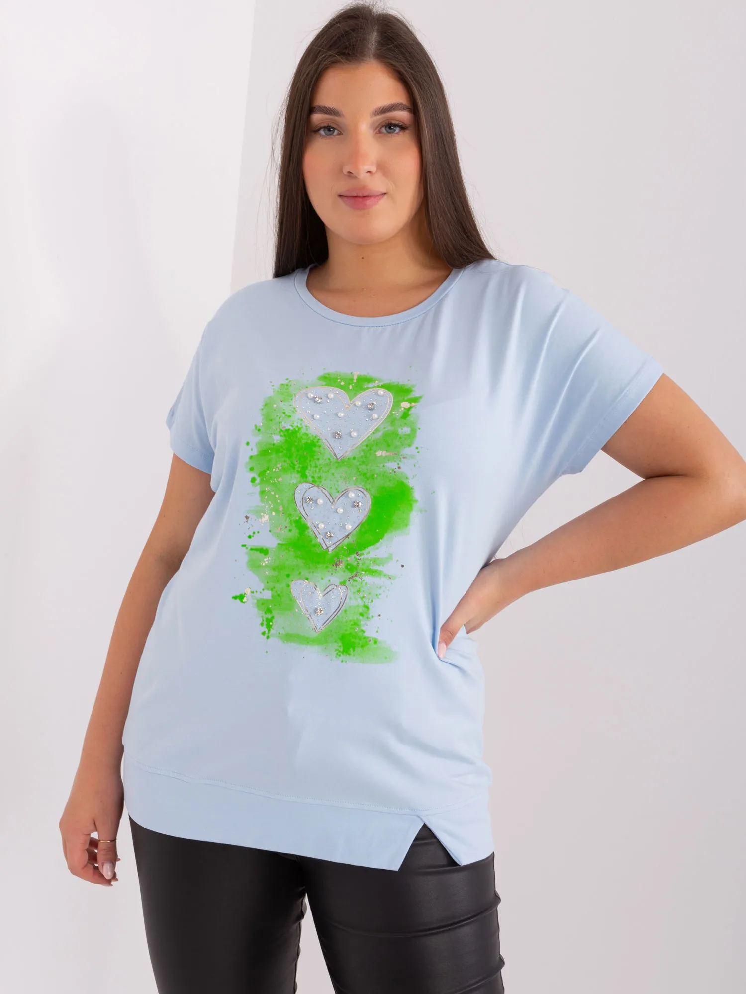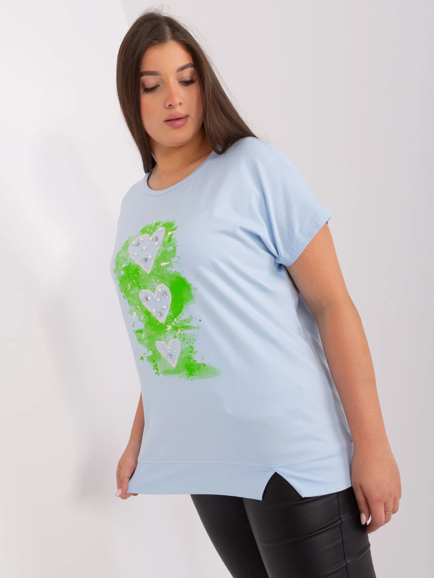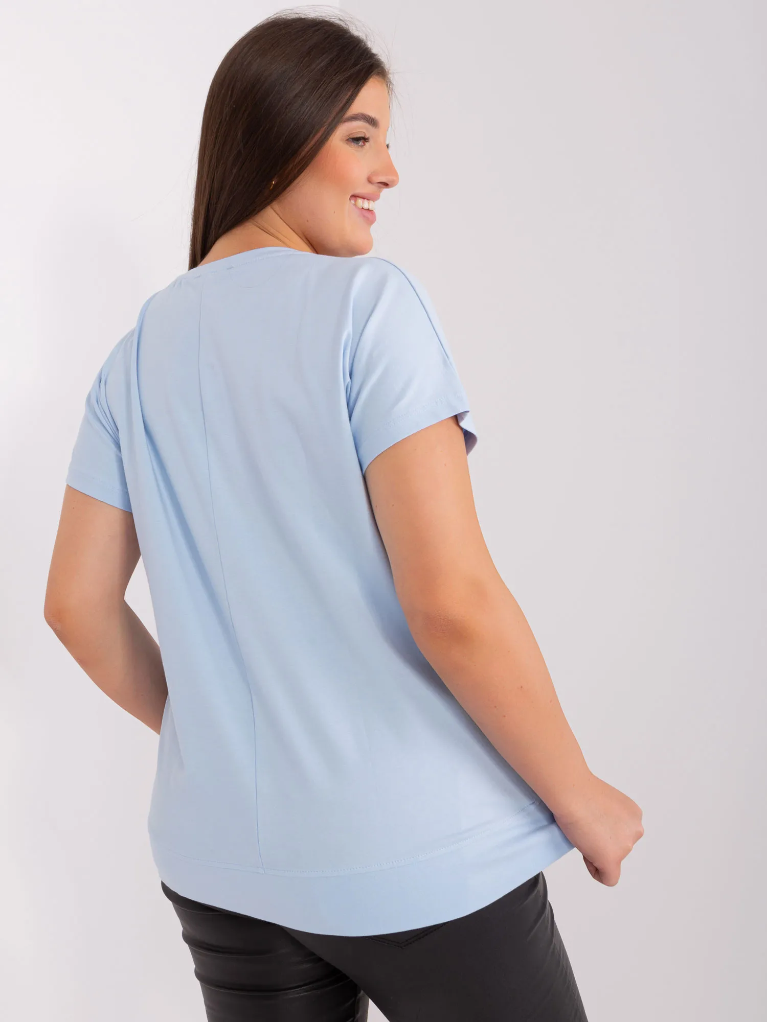 Jasnoniebieska bluzka plus size z aplikacjami .
