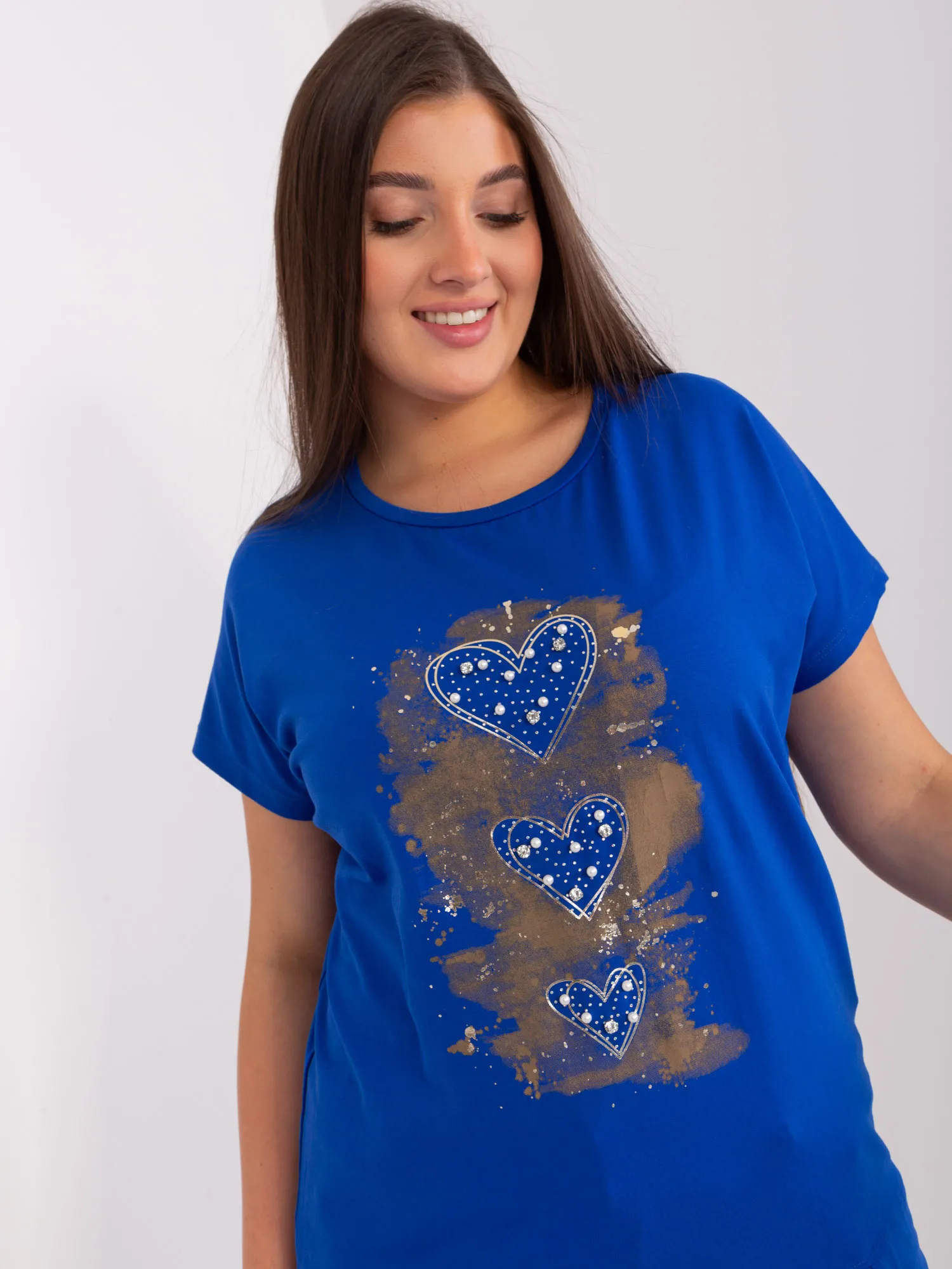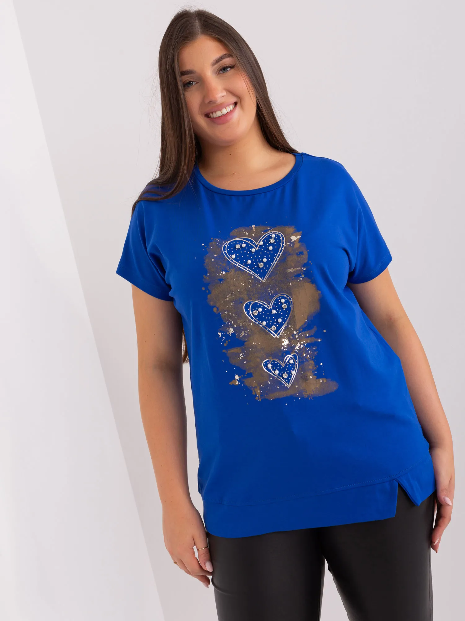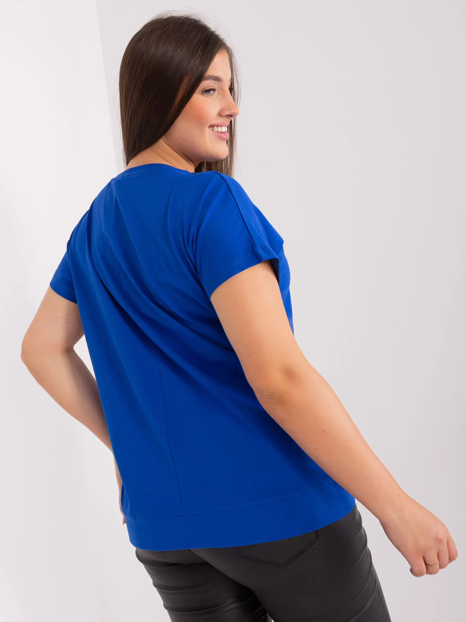 Kobaltowa bluzka plus size z krótkim rękawem .