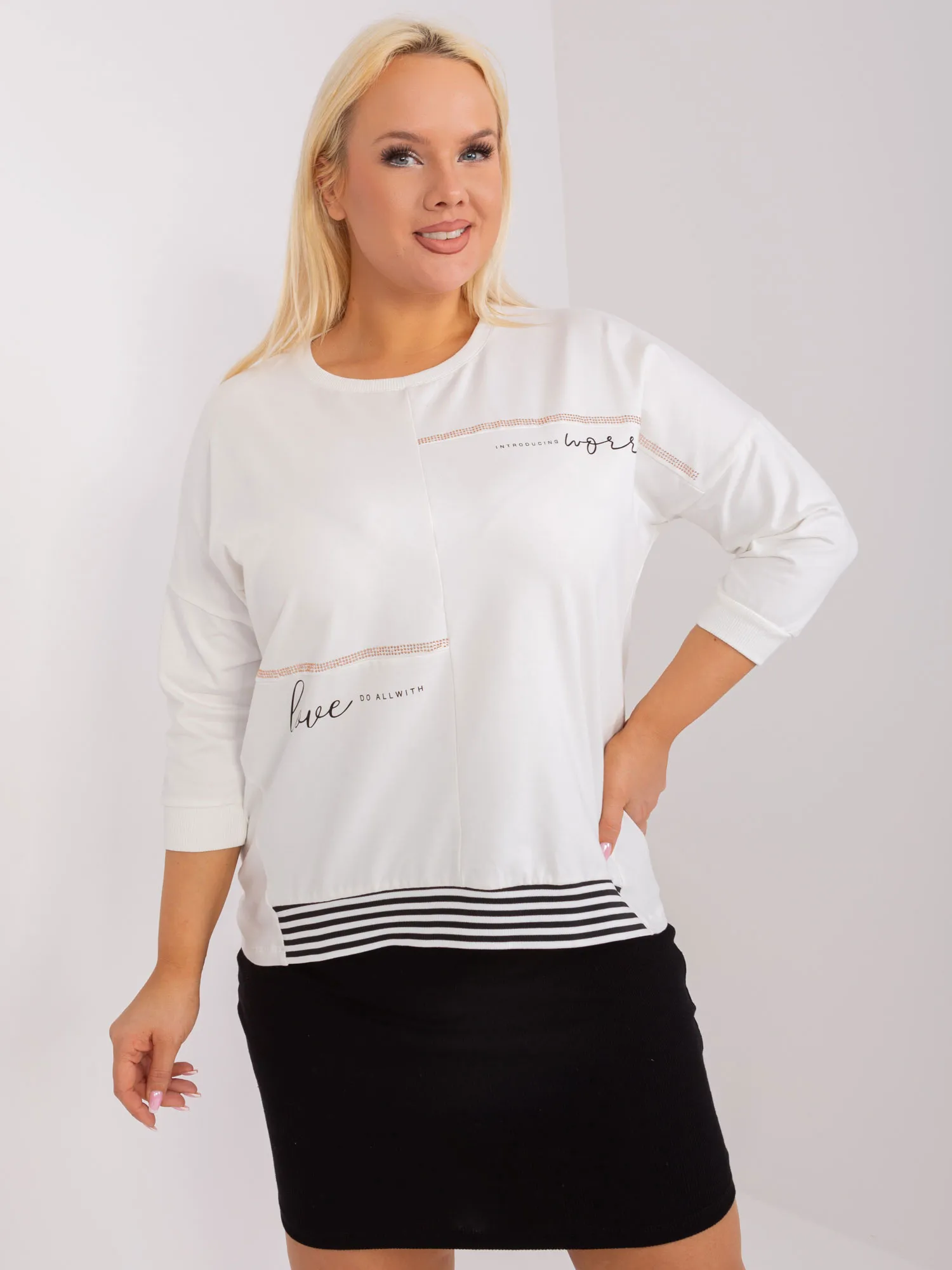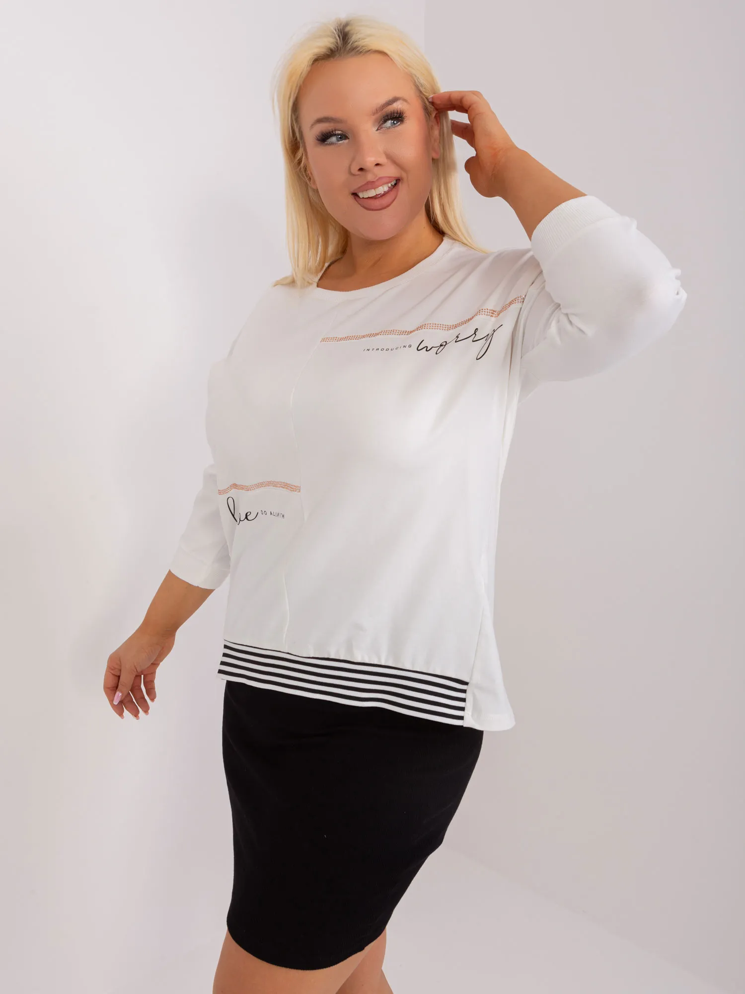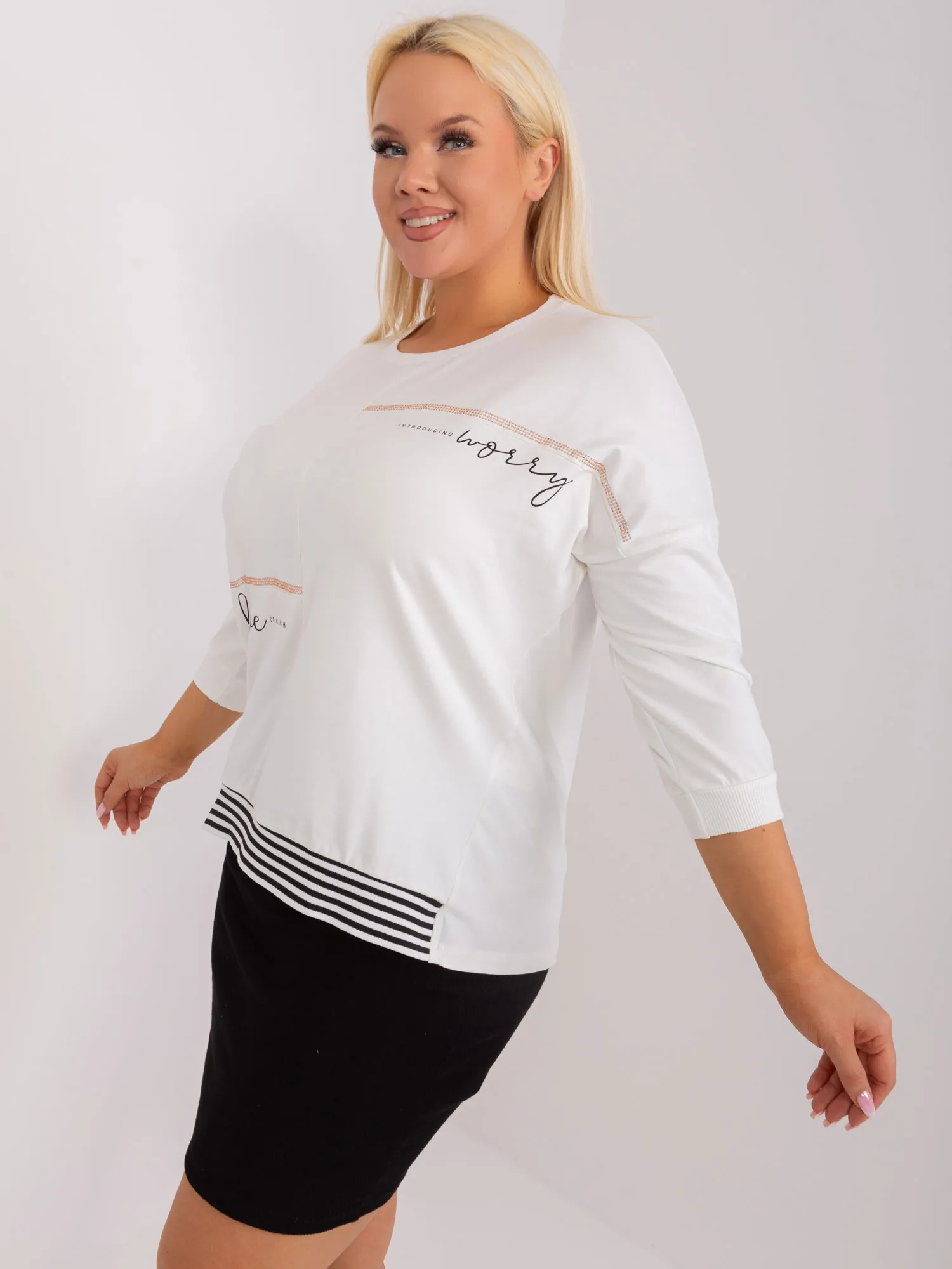 Wymiary bluzki w rozmiarze one size mierzone na płasko: szerokość pod pachami - 65 cm, długość całkowita (przód) - 64 cm, długość całkowita (tył) - 70 cm, długość rękawa - 41 cm.