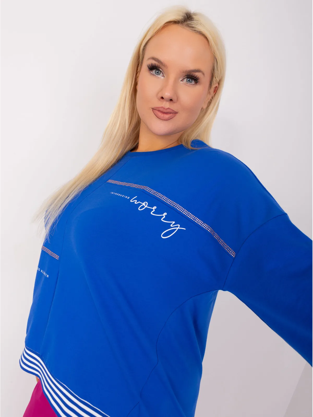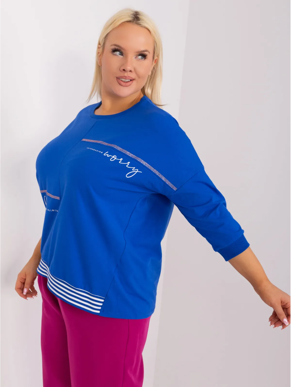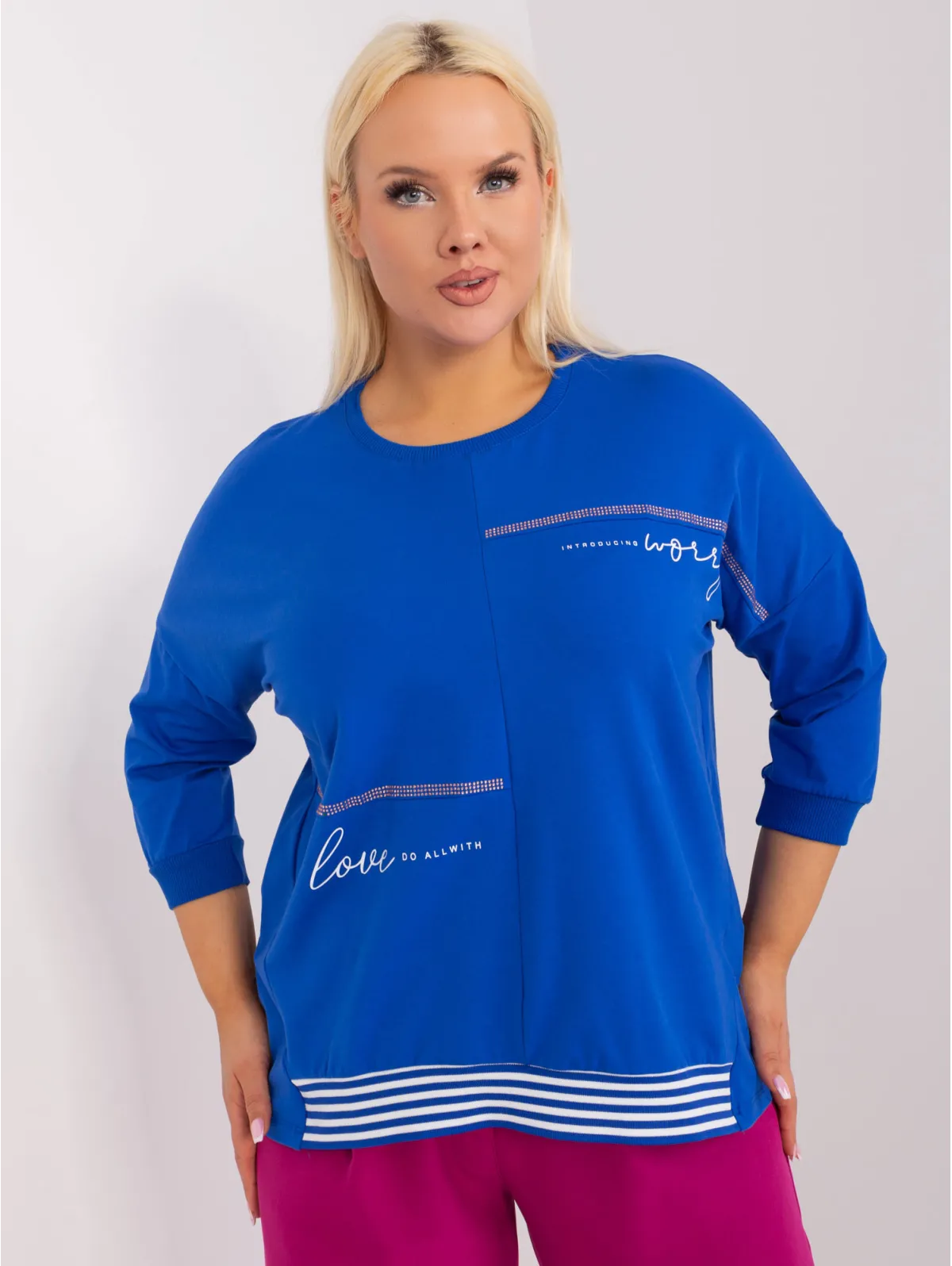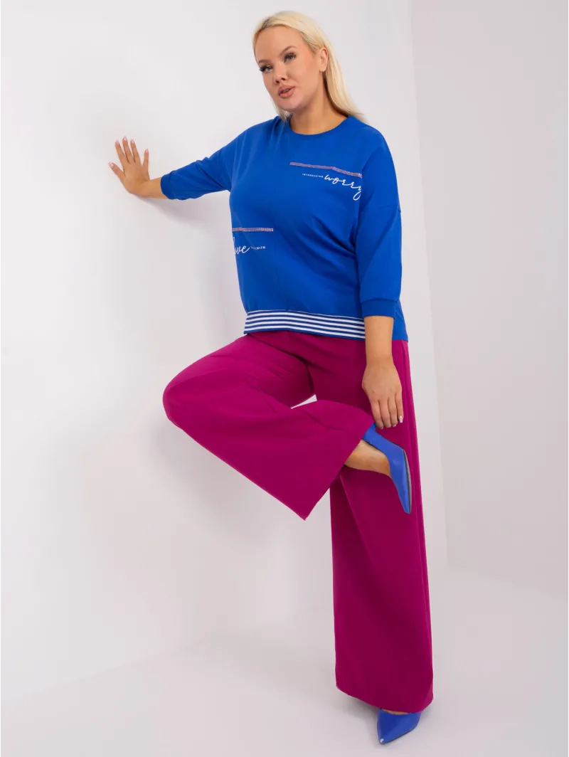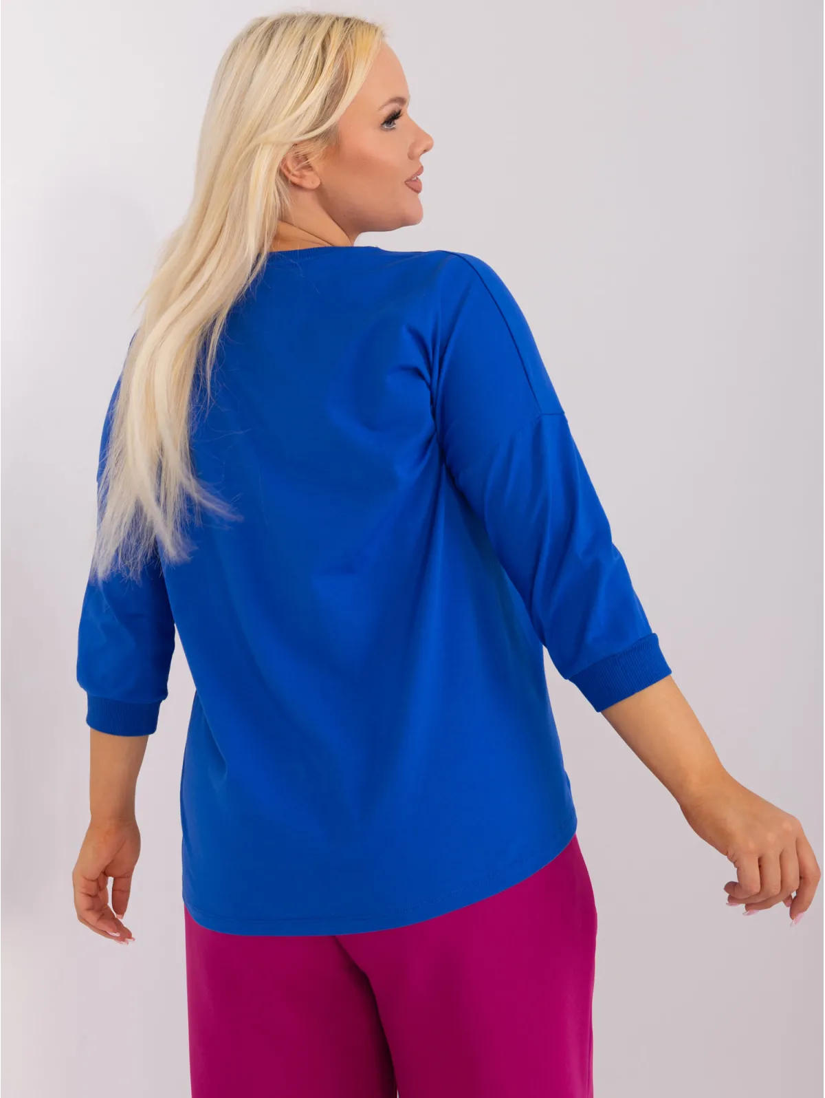 Wymiary bluzki w rozmiarze one size mierzone na płasko: szerokość pod pachami - 65 cm, długość całkowita (przód) - 64 cm, długość całkowita (tył) - 70 cm, długość rękawa - 41 cm.