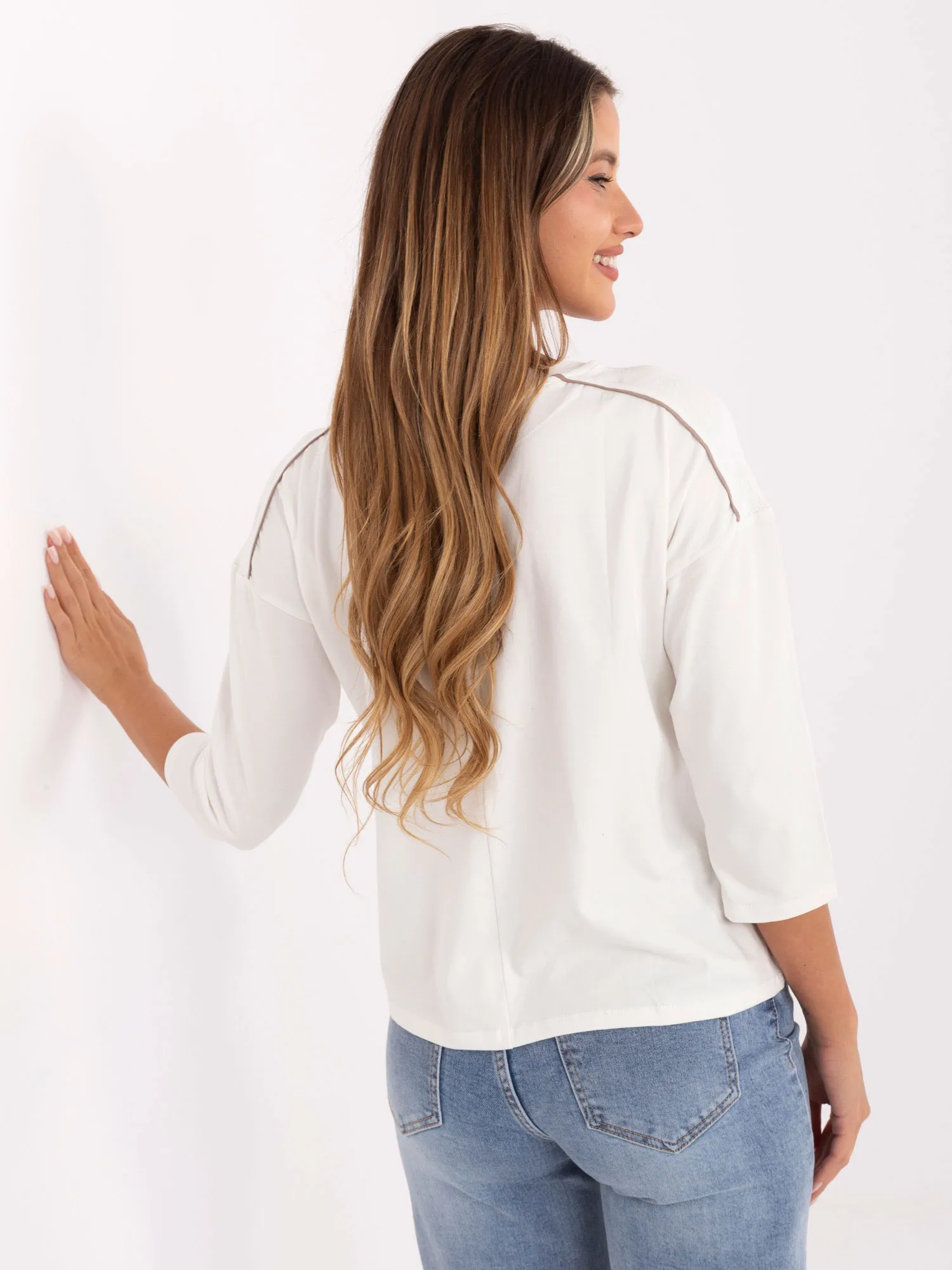 Wymiary bluzki w rozmiarze one size mierzone na płasko: szerokość pod pachami - 57 cm długość rękawa - 36 cm (od szwu), szerokość w biodrach - 53 cm, długość całkowita - 60 cm.