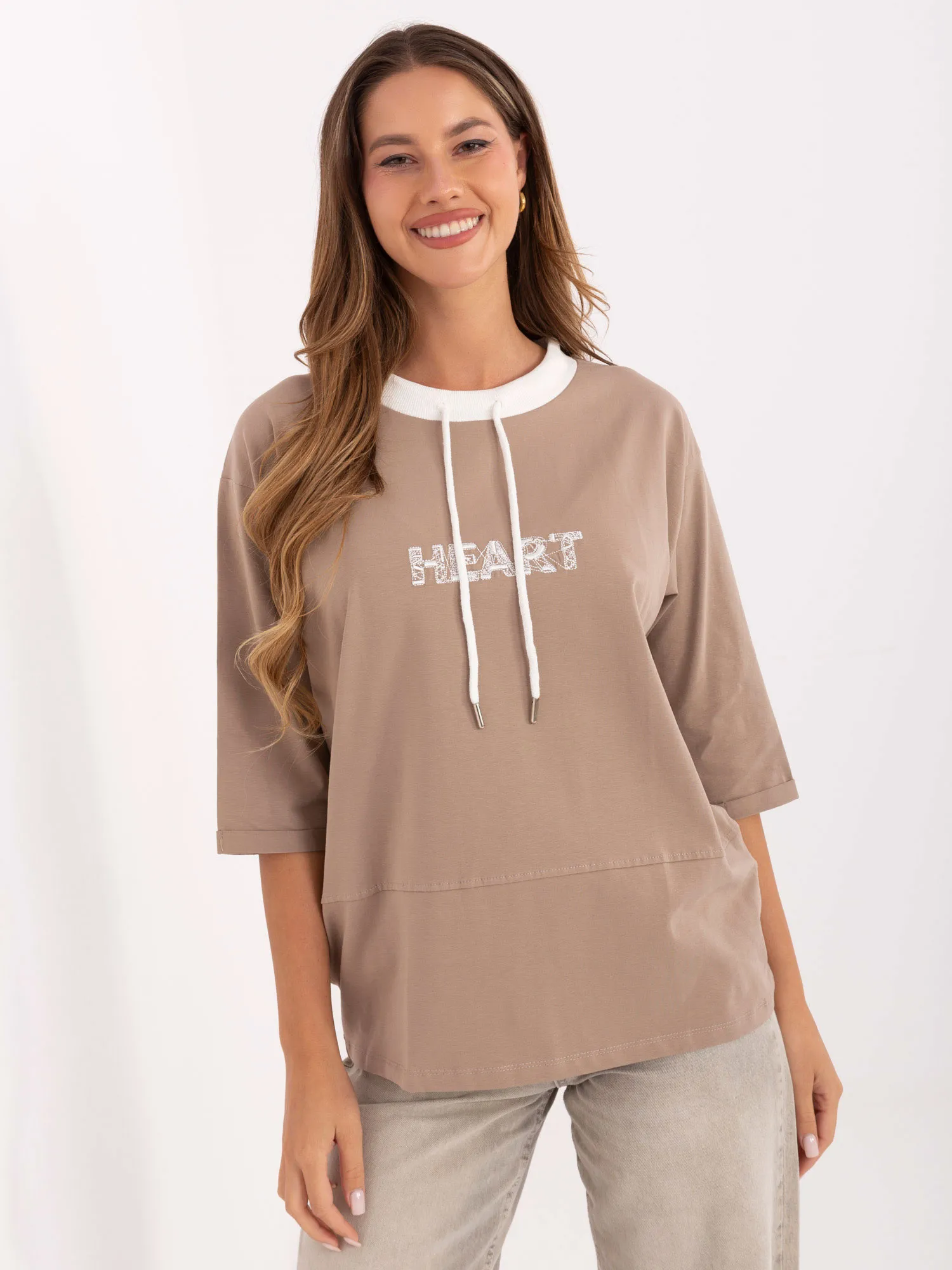 Wymiary bluzki w rozmiarze one size mierzone na płasko: szerokość pod pachami - 60 cm długość rękawa - 36 cm (od szwu), szerokość w biodrach - 58 cm, długość całkowita - 70 cm.