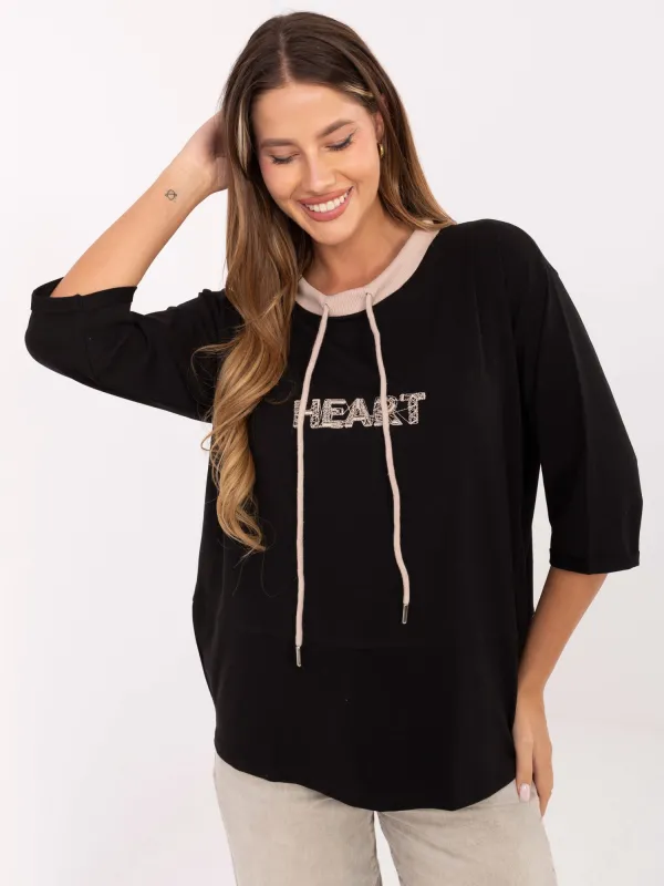 Wymiary bluzki w rozmiarze one size mierzone na płasko: szerokość pod pachami - 60 cm długość rękawa - 36 cm (od szwu), szerokość w biodrach - 58 cm, długość całkowita - 70 cm.