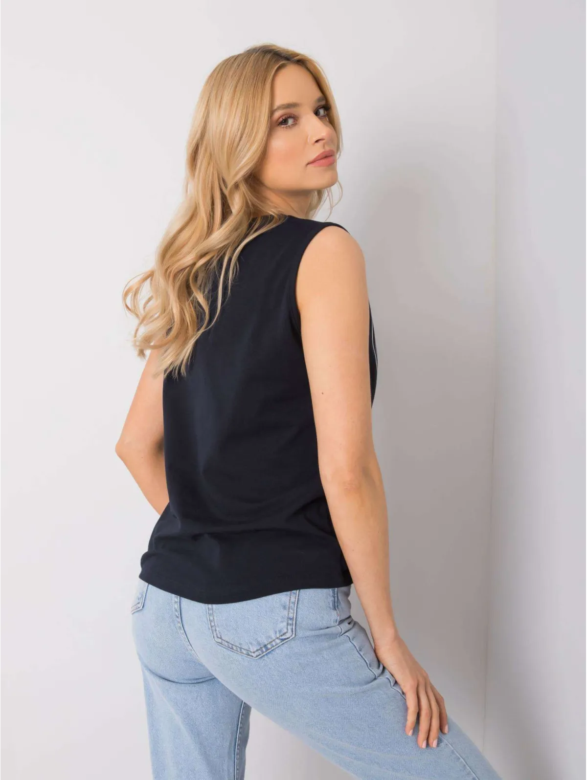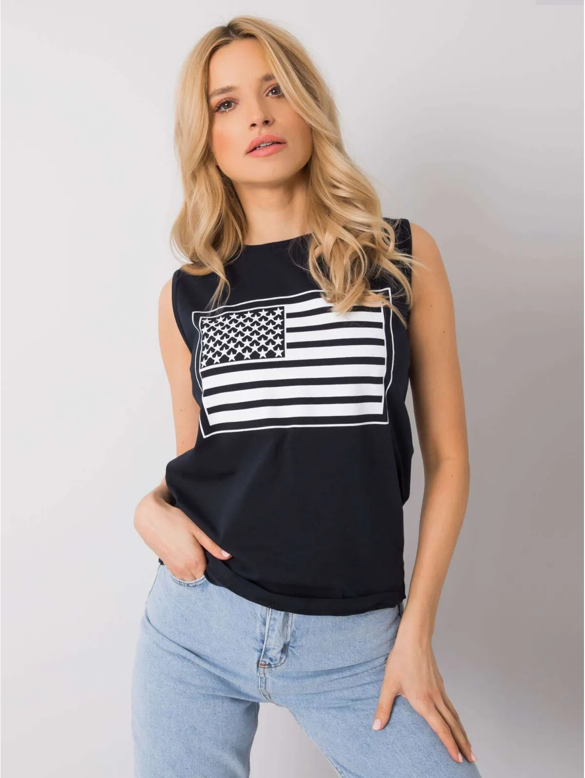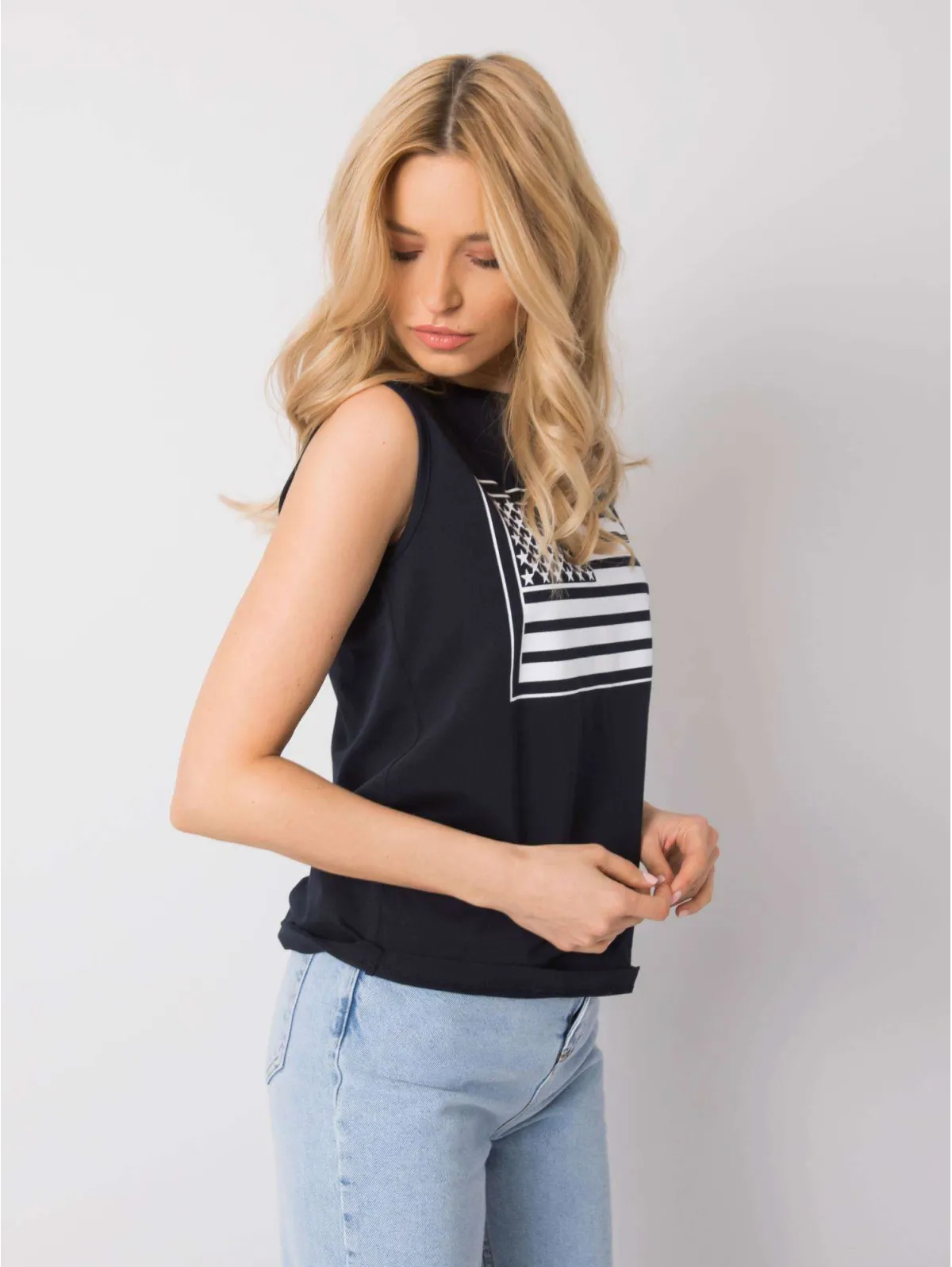 RUE PARIS Granatowy top z printem .