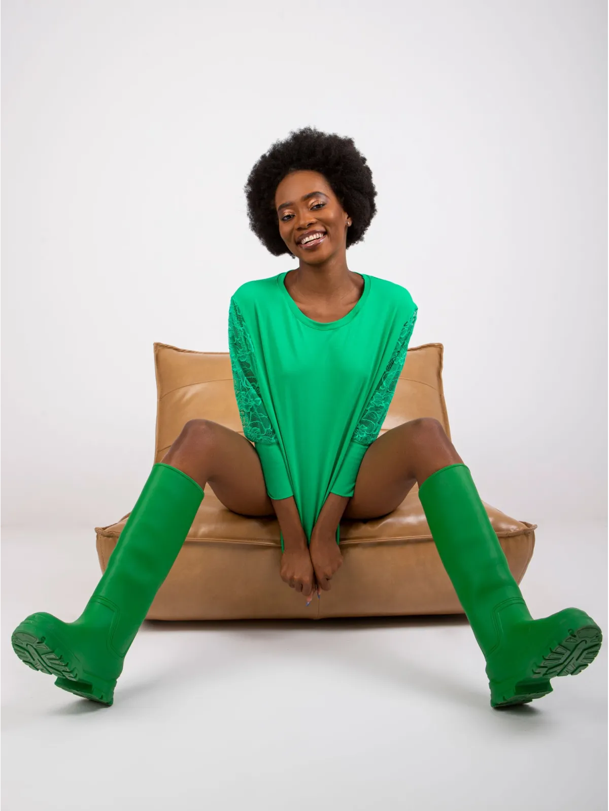 Modelis dėvi dydį S. Modelio išmatavimai: ūgis 162 cm, krūtinė 80 cm, juosmuo 63 cm, klubai 80 cm.