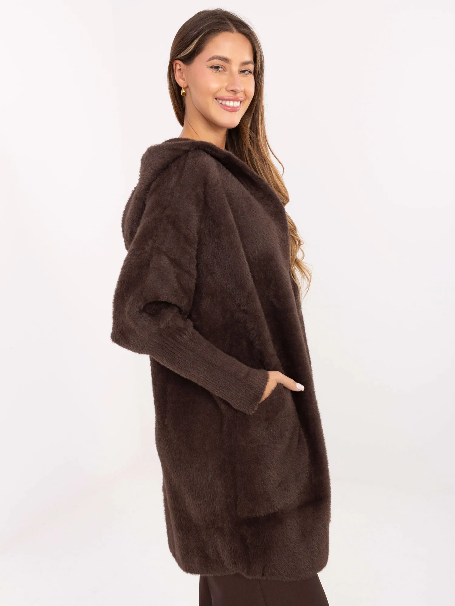 Wymiary płaszcza mierzone na płasko: szerokość pod pachami - 69 cm, długość całkowita - 88 cm, szerokość w biodrach - 53 cm, długość rękawa - 69 cm.