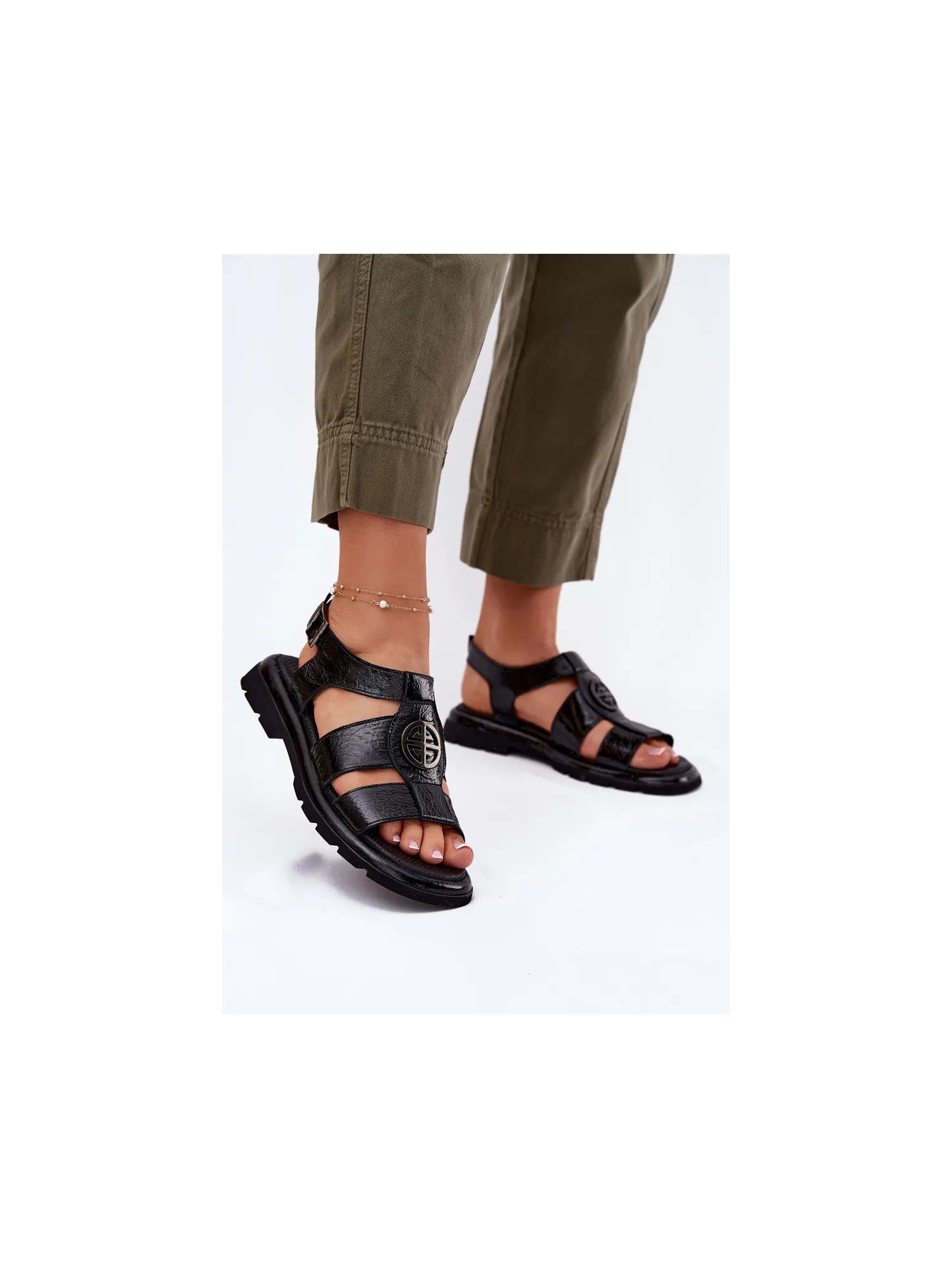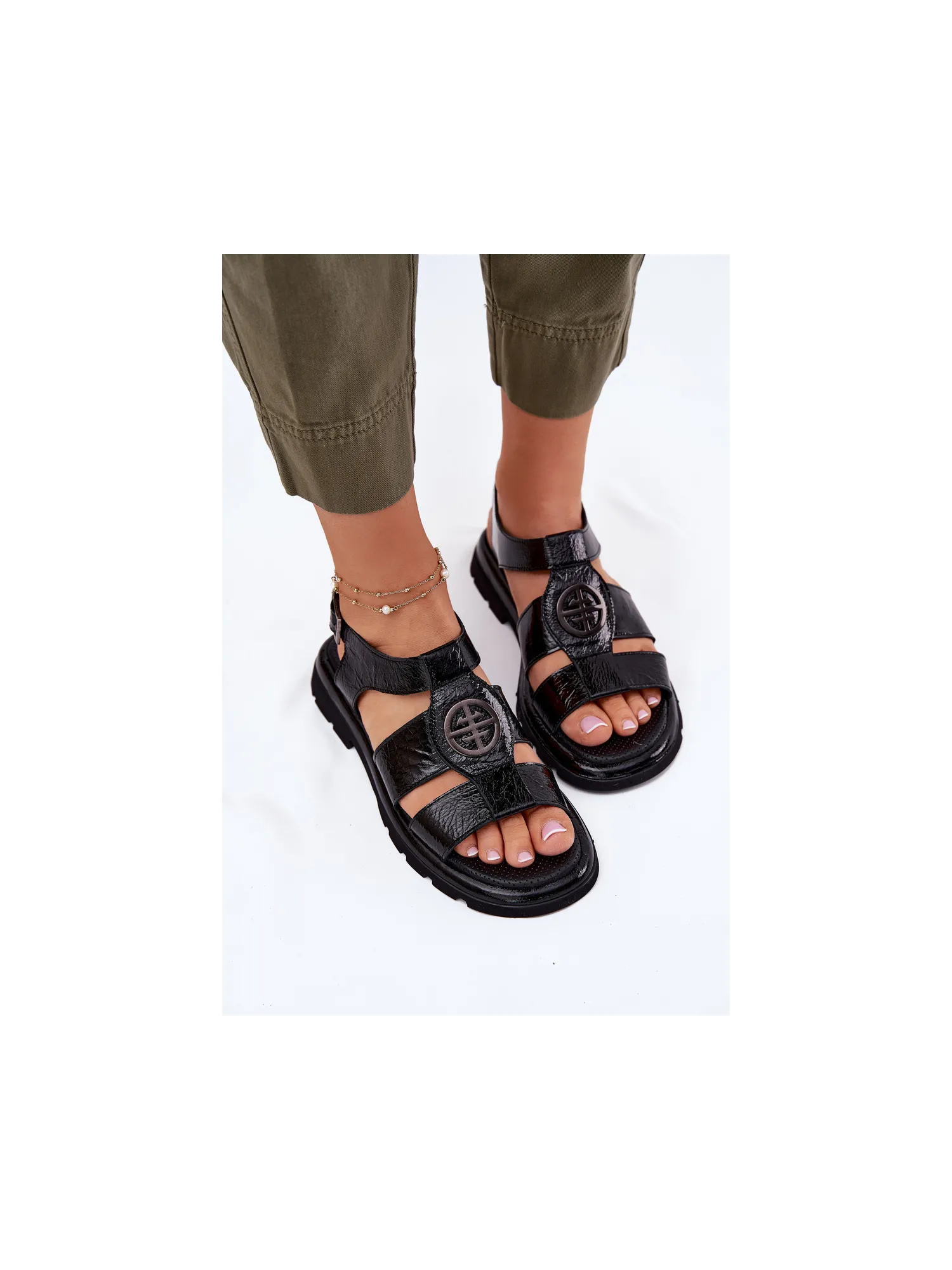 Leather Women's Sandals Patent With Decorative Detail Artiker 56C0691 Black