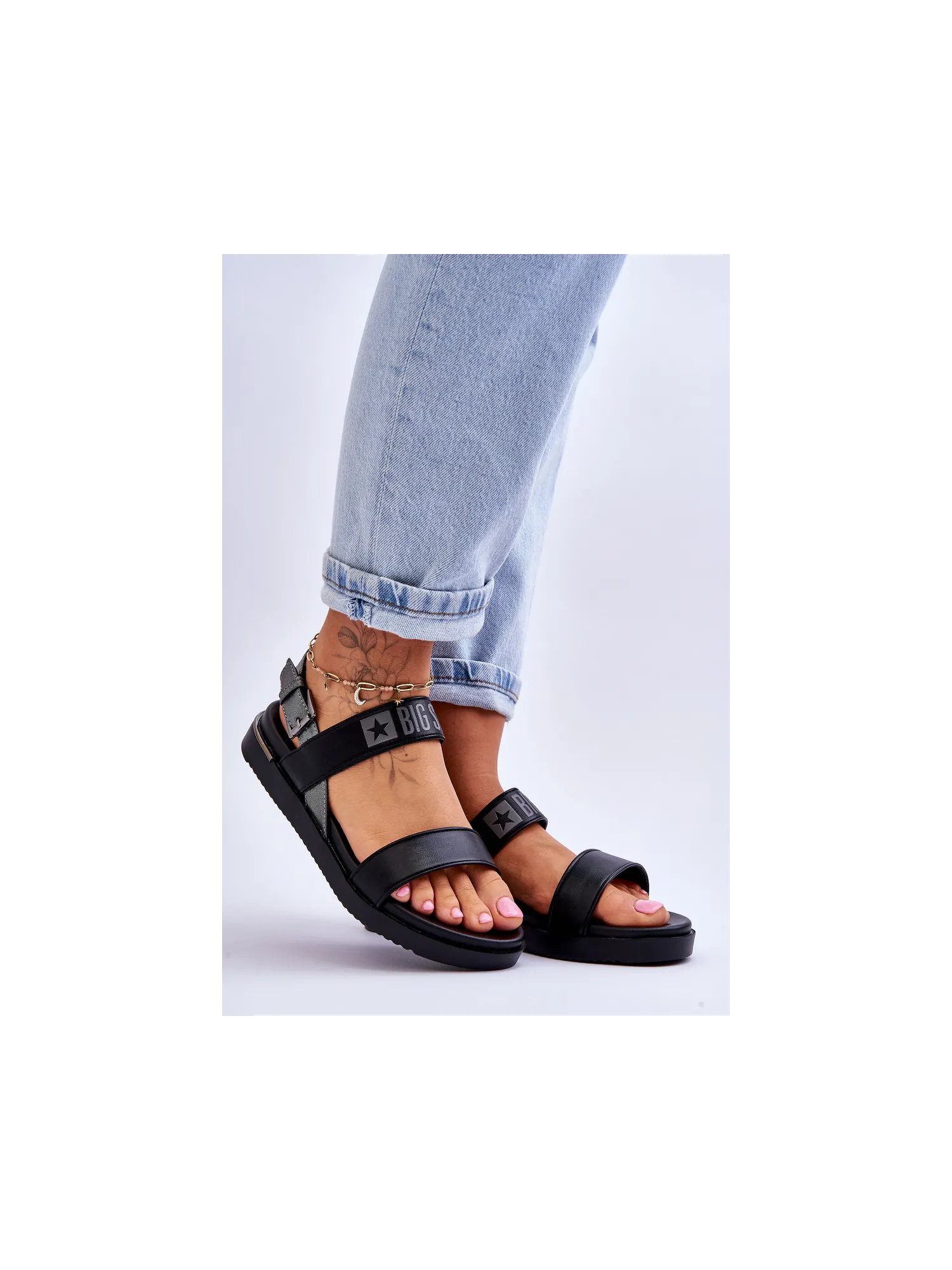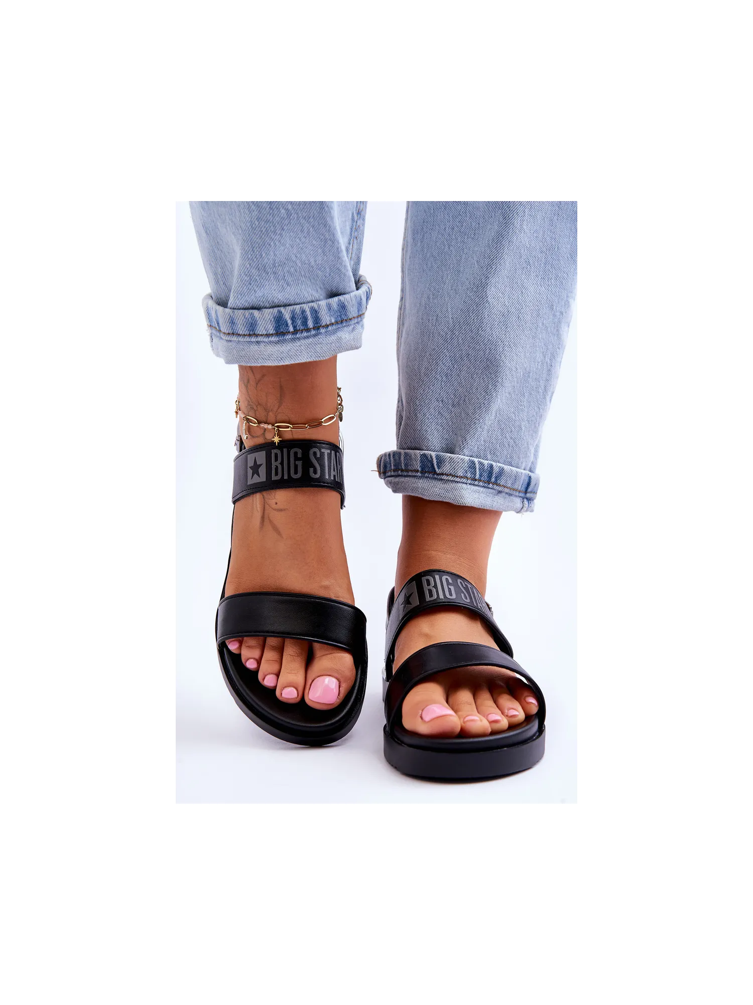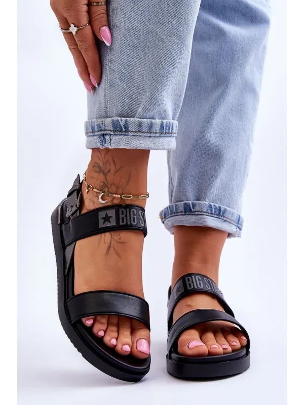 Classic women's sandals are made of a combination of eco leather and fabric. This model is fastened with an adjustable strap with a buckle. The sandals are set on a delicate platform. The insert and the platform are made of plastic. A great model for warmer days! Be sure to also check out the other models of Big Star women's sandals! When choosing a size, please refer to the size chart.