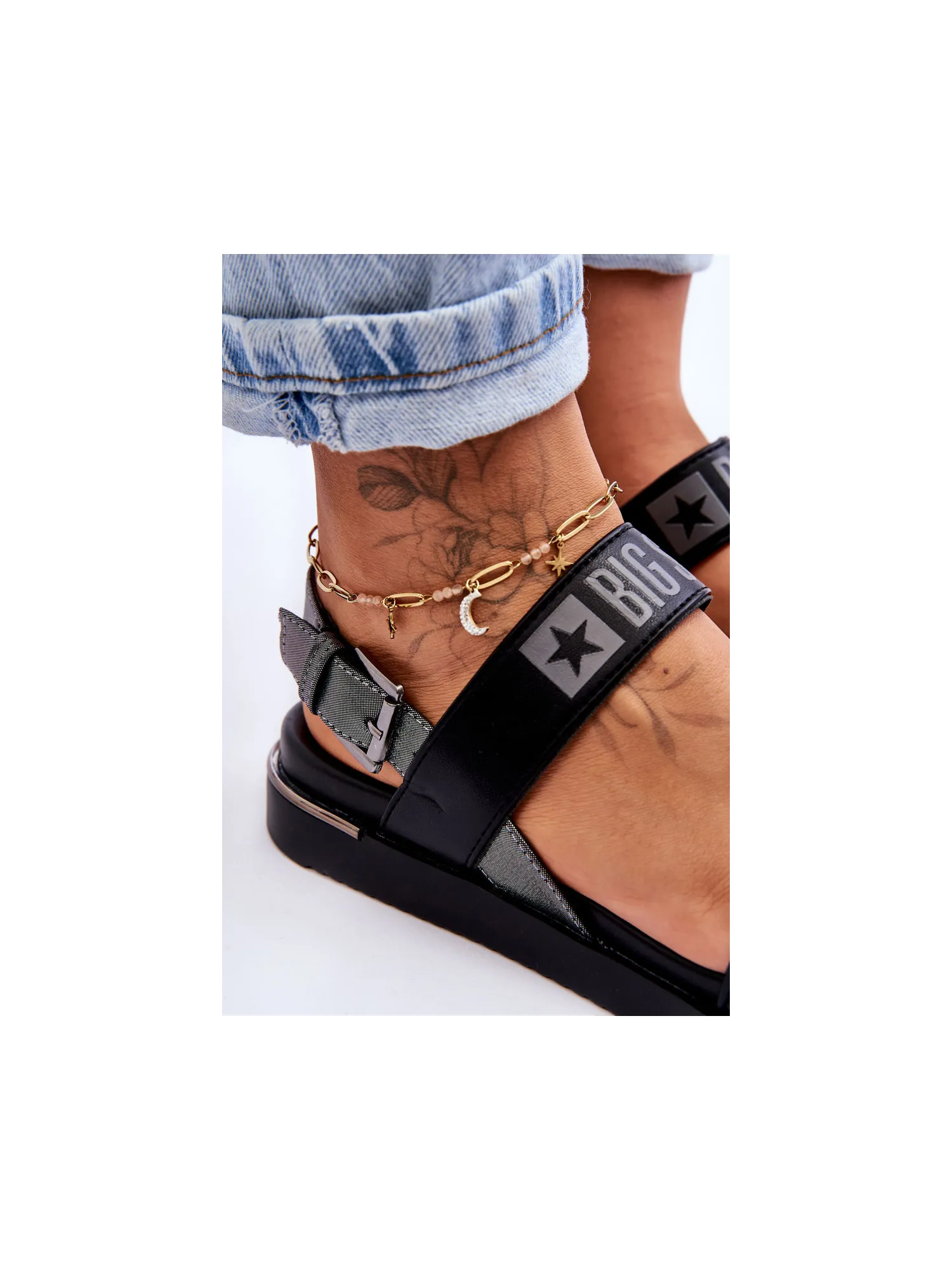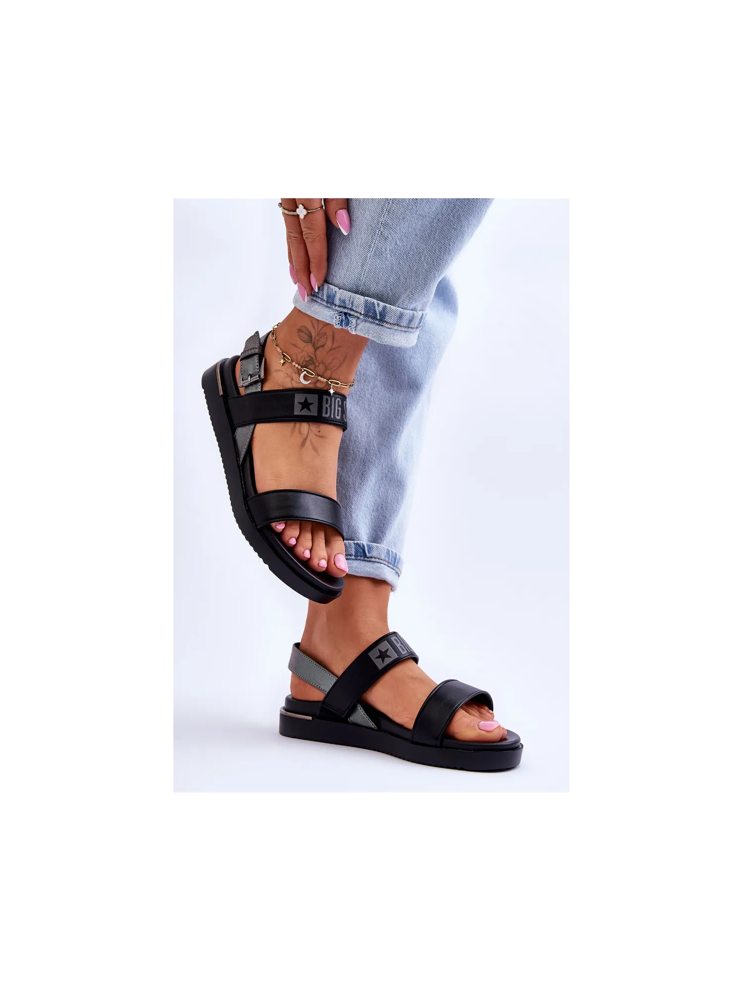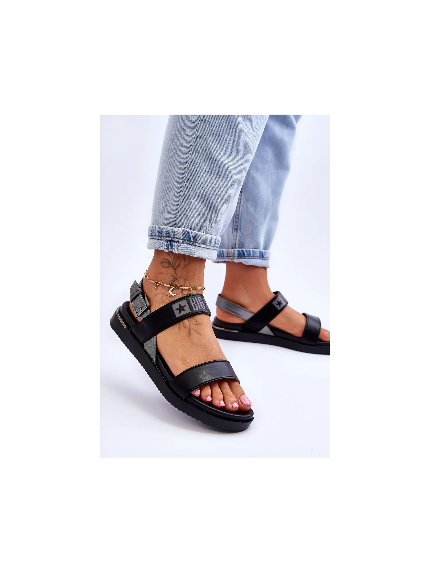 Classic women's sandals are made of a combination of eco leather and fabric. This model is fastened with an adjustable strap with a buckle. The sandals are set on a delicate platform. The insert and the platform are made of plastic. A great model for warmer days! Be sure to also check out the other models of Big Star women's sandals! When choosing a size, please refer to the size chart.