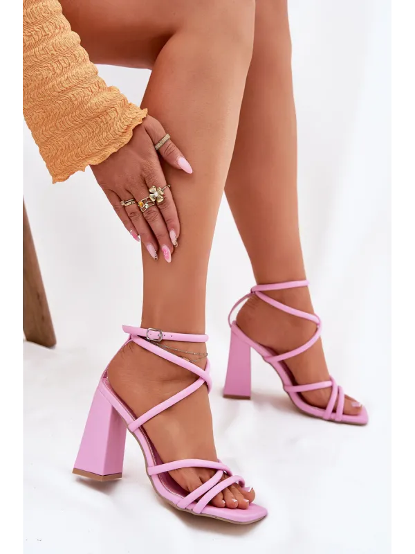 Women's sandals made of eco-leather, set on a block heel, are an excellent choice for various occasions. Fastened with a buckle, they provide a comfortable fit to the foot. This model features straps that wrap around the leg, adding a unique, stylish character. Perfect for both evening outings and more formal events, they combine comfort with a fashionable look. When choosing a size, please refer to the size chart.