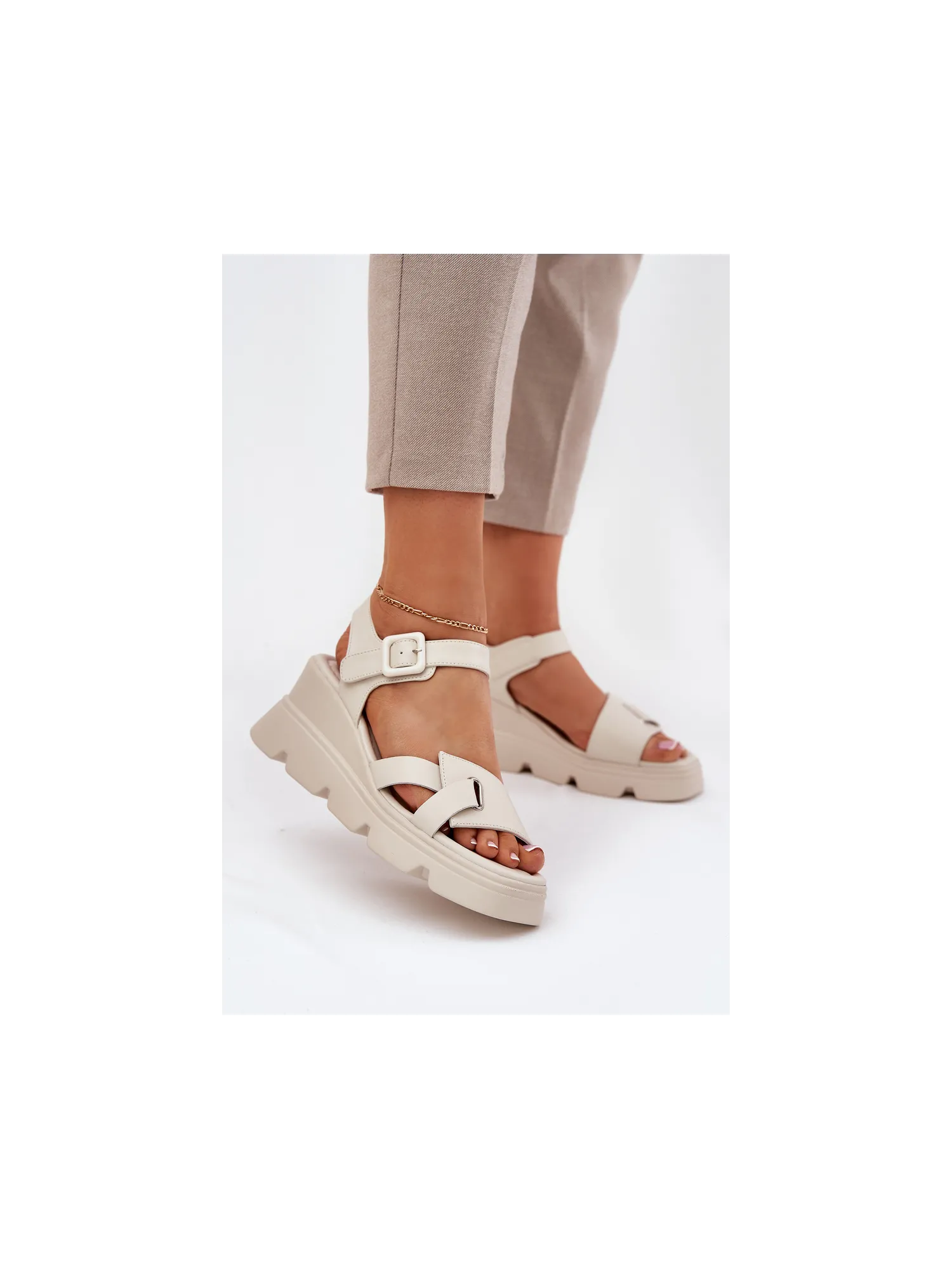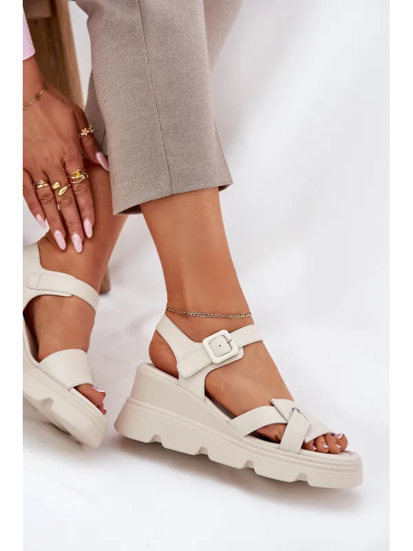 Women's sandals made of natural leather are an elegant choice for warm days. Set on a wedge, they provide comfort and stability all day long. Fastened with a buckle and an adjustable strap, they allow for a perfect fit to the foot. The soft insole guarantees comfort, and the classic design makes these sandals a perfect complement to many summer styles. Ideal for both everyday and more elegant looks. When choosing a size, please refer to the size chart.