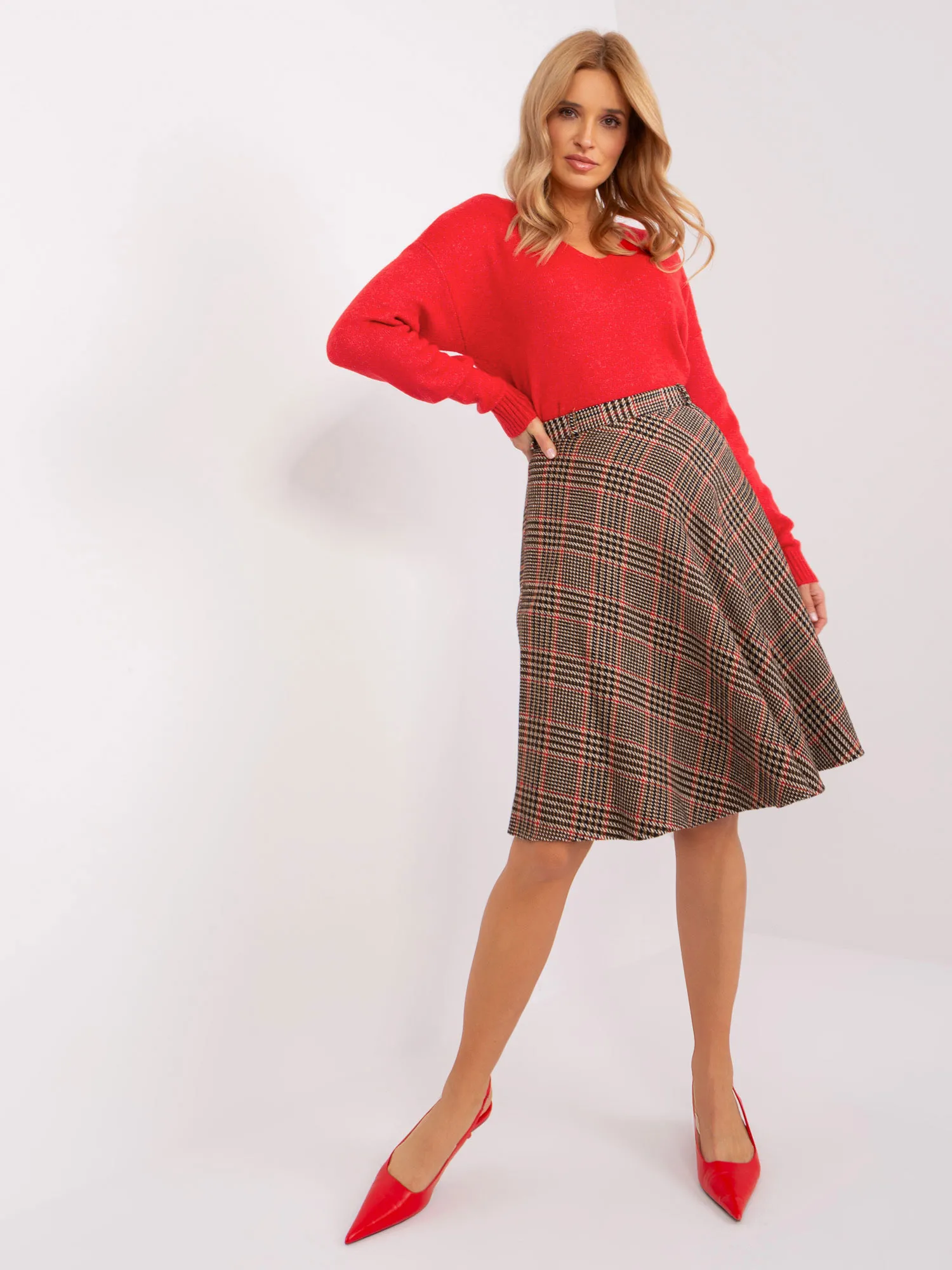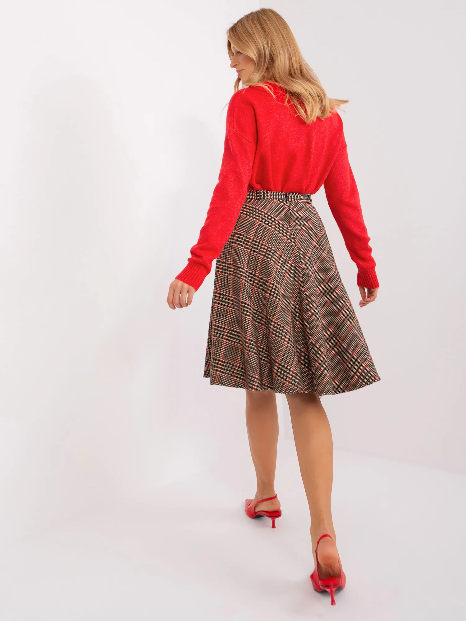Wymiary spódnicy w rozmiarze one size: szerokość w pasie - 35 cm (na płasko), szerokość spodni w pasie - 50 cm (po rozciągnięciu), szerokość w biodrach - 67 cm, długość całkowita - 46 cm.